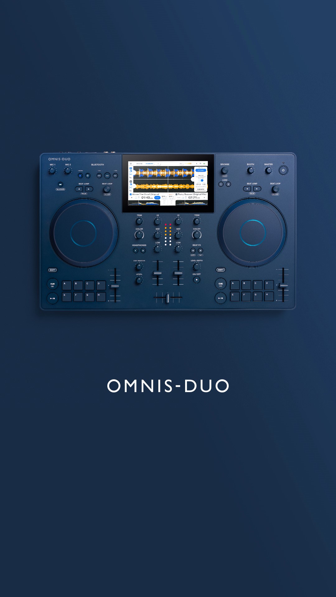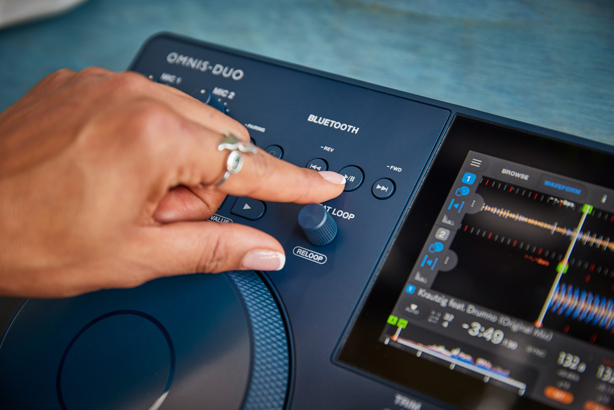 La console OMNIS-DUO, avec son design sophistiqué et minimaliste et son coloris indigo saisissant, est conçue pour s’intégrer harmonieusement dans tout environnement, qu’il soit intérieur ou extérieur. Sa portabilité sans limites, grâce à sa taille compacte, son poids modeste et ses bords arrondis, ainsi que sa batterie interne et sa connectivité Bluetooth®, en font l’alliée idéale pour des sessions de mix spontanées.