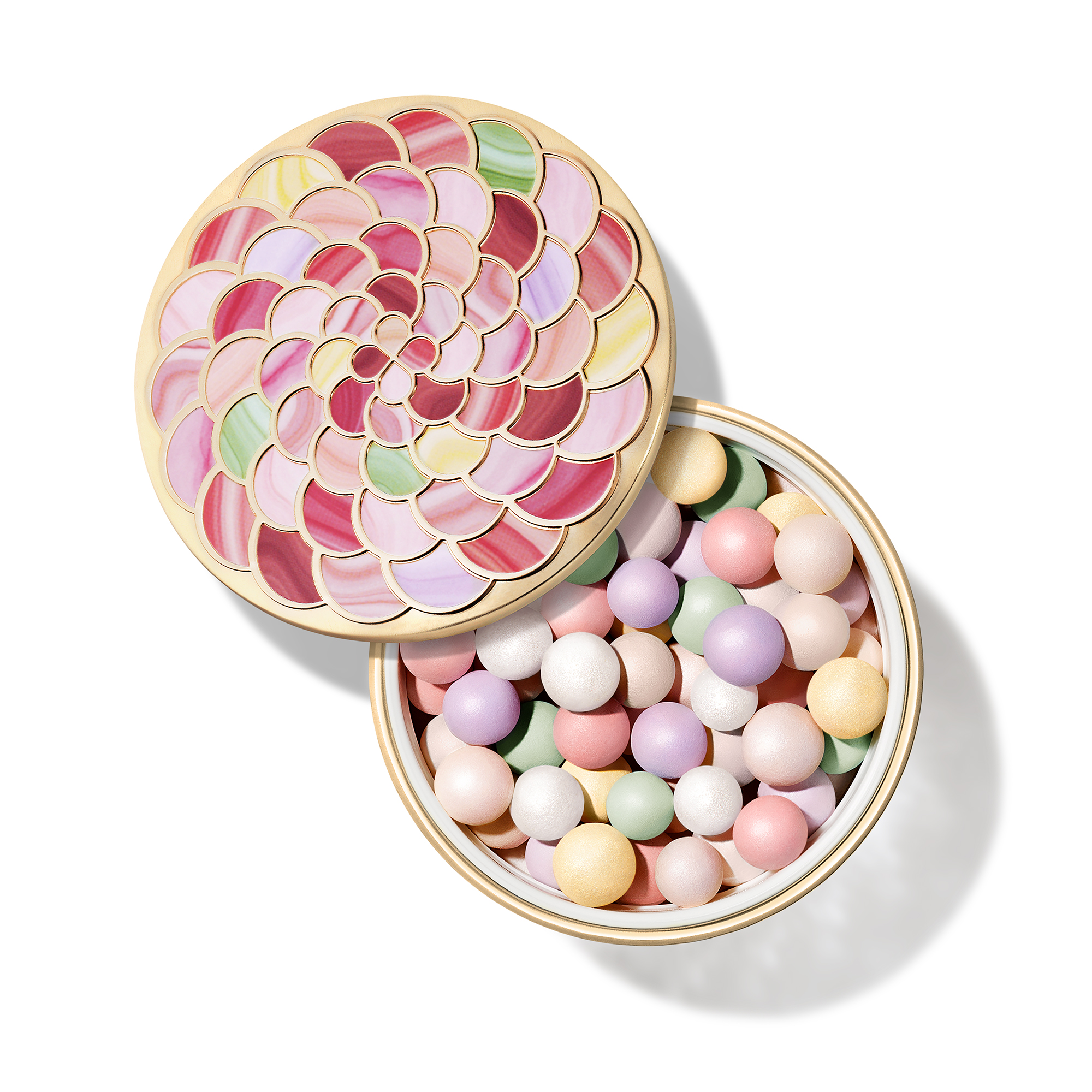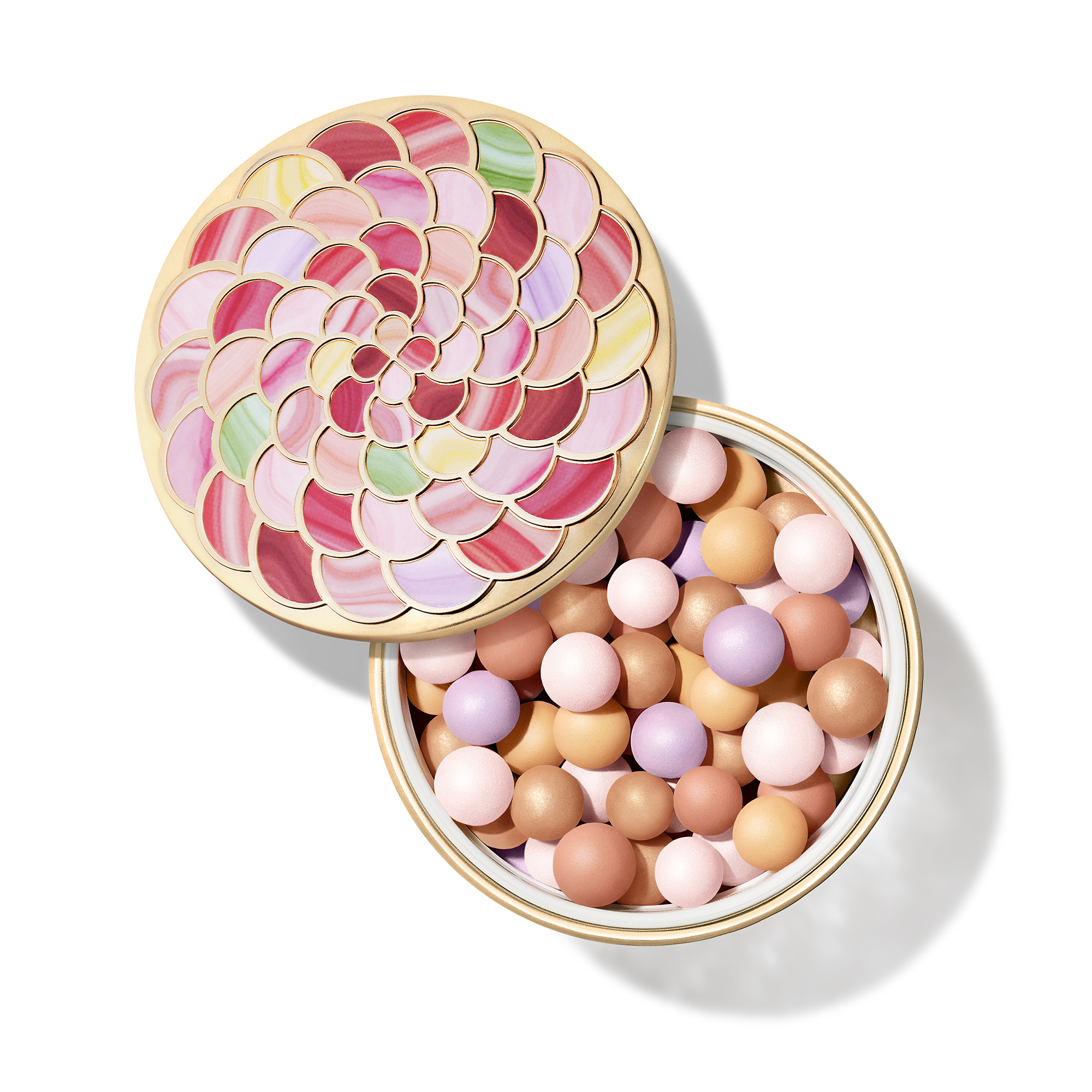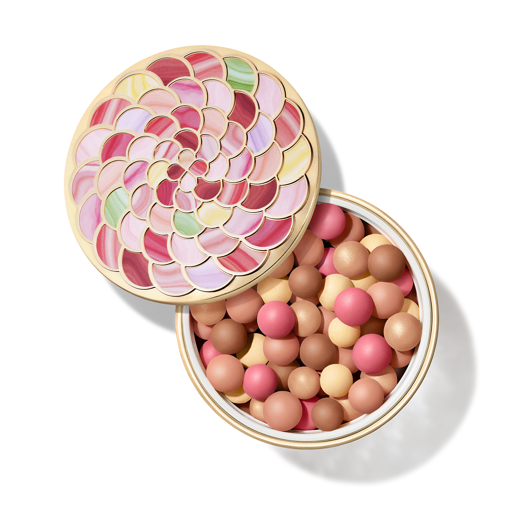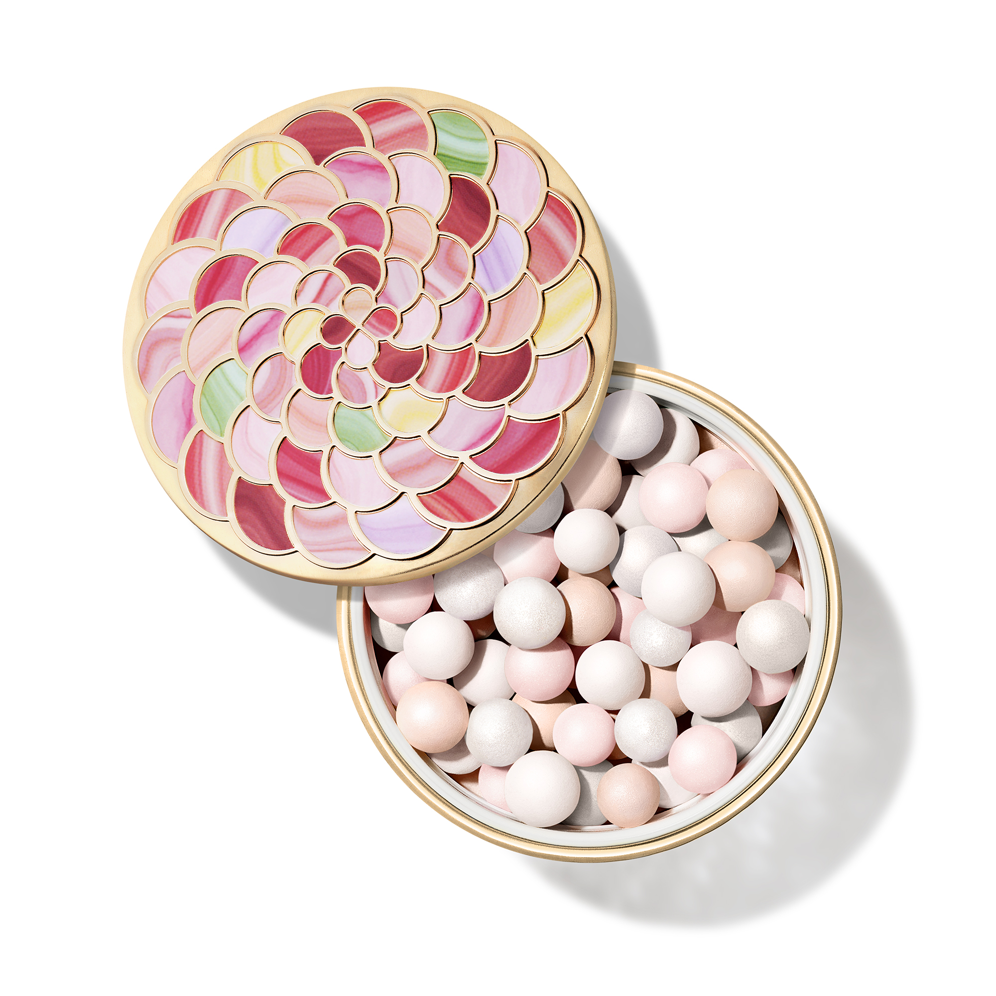 Le nouveau boîtier des Météorites, inspiré d’un objet précieux ayant appartenu à la reine Marie-Antoinette, allie passé et présent. Ornées de rosaces colorées, ces perles de poudre se présentent dans un écrin devenu un véritable bijou.