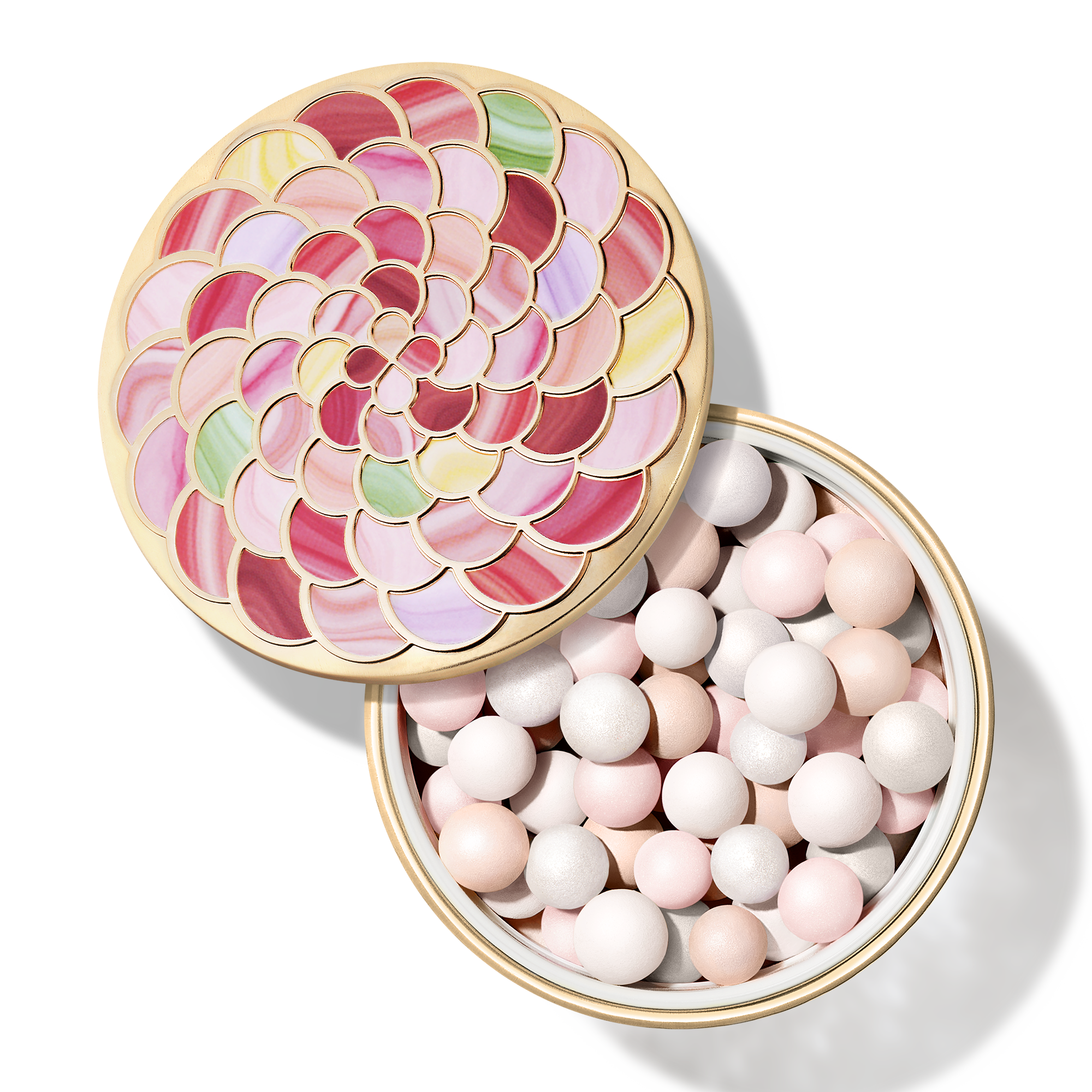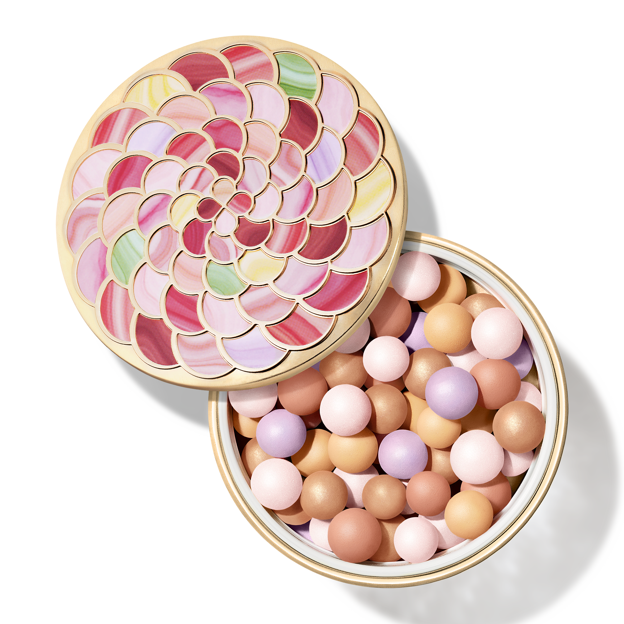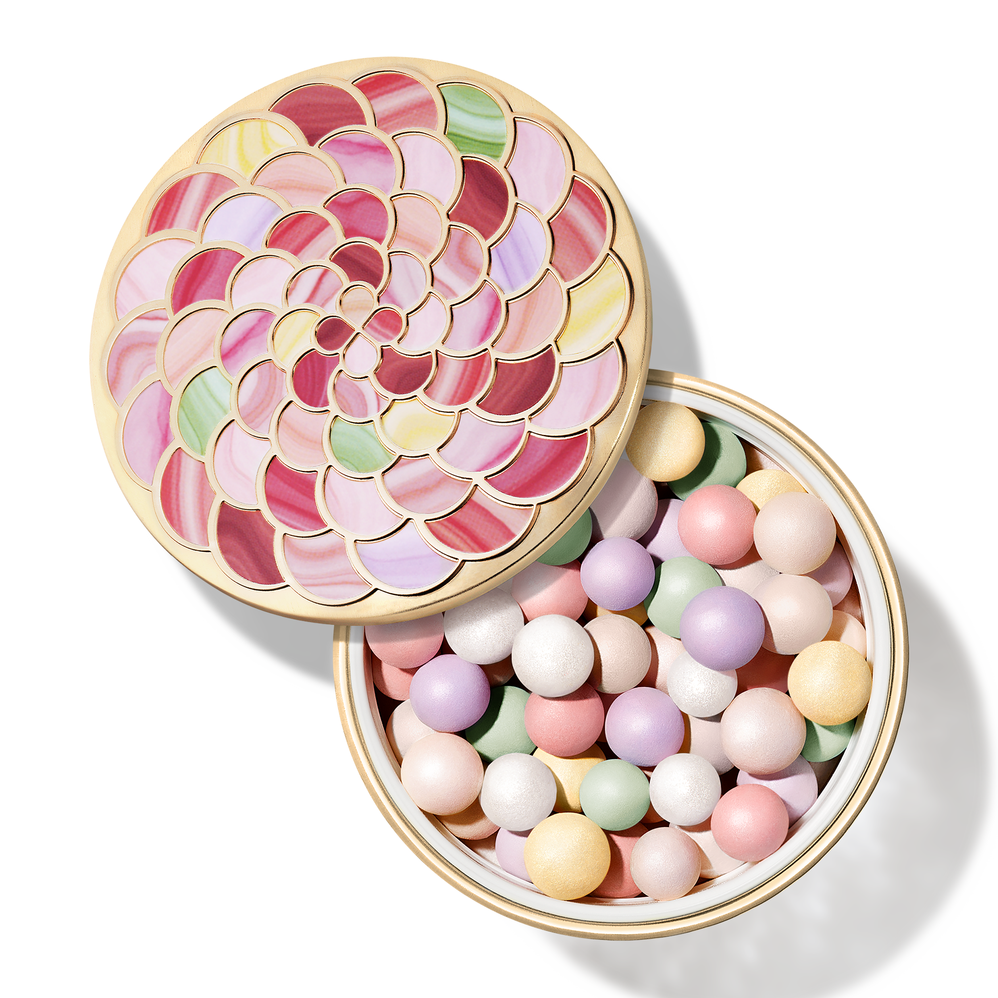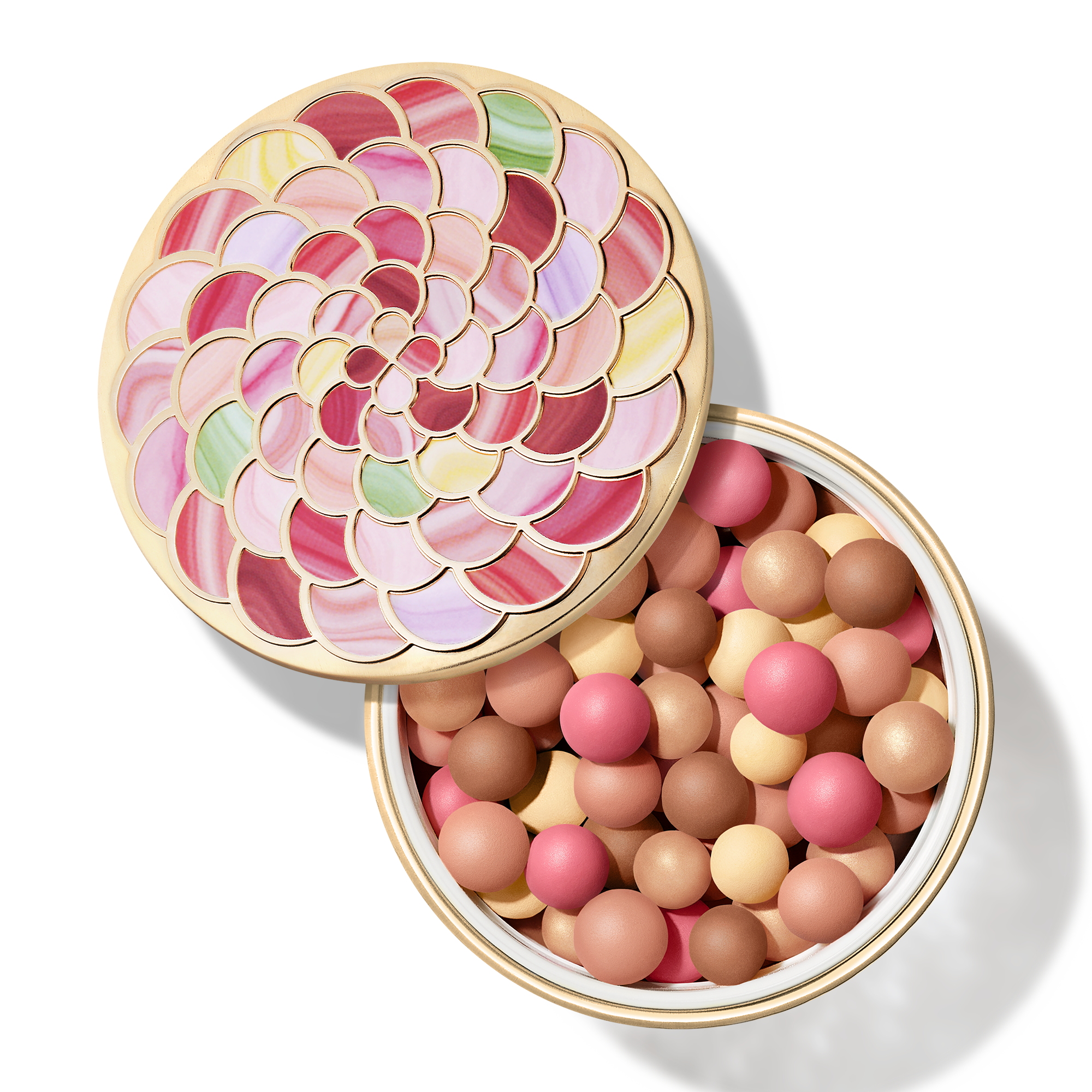 Le nouveau boîtier des Météorites, inspiré d’un objet précieux ayant appartenu à la reine Marie-Antoinette, allie passé et présent. Ornées de rosaces colorées, ces perles de poudre se présentent dans un écrin devenu un véritable bijou.