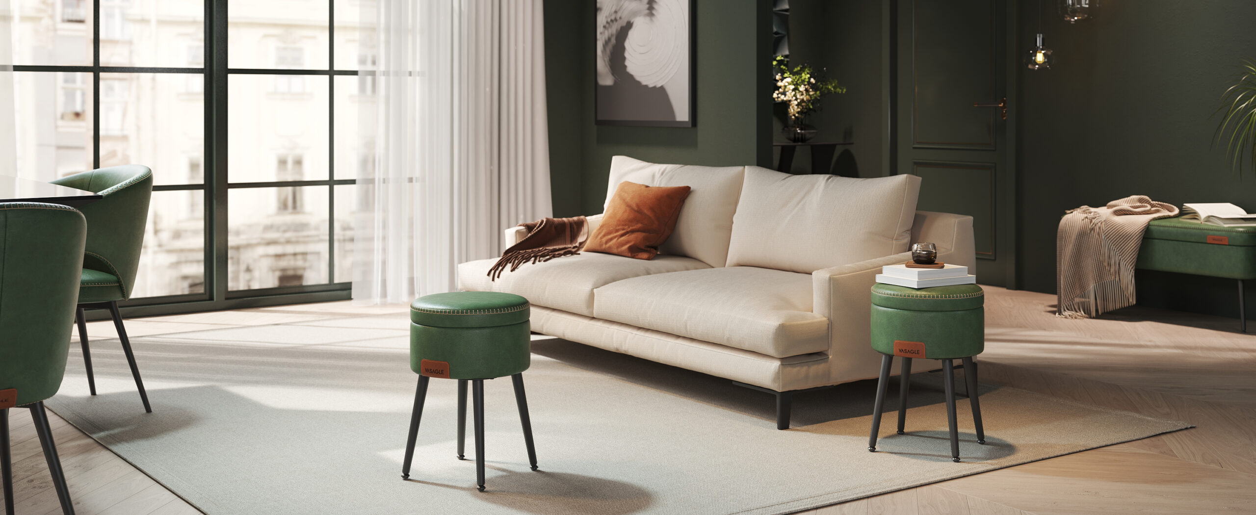 La palette de couleurs choisie pour EKHO est une invitation à la sérénité. Les tons de vert forêt, de marron caramel, et de noir d’encre, inspirés directement des paysages naturels, ont pour vocation de transformer l’intérieur en un havre de paix. Ces teintes, à la fois tendance et intemporelles, sont pensées pour se marier harmonieusement avec d’autres éléments décoratifs, apportant ainsi une touche de renouveau et de bien-être.