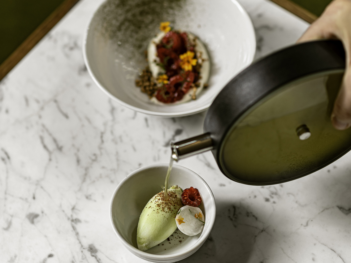 Son plat emblématique, « Langoustine, herbes et fleurs, caviar Kristal », est une illustration parfaite de sa capacité à sublimer les produits dans des créations à la fois simples et sophistiquées, qui promettent d’éveiller les sens et de déclencher l’émotion.
