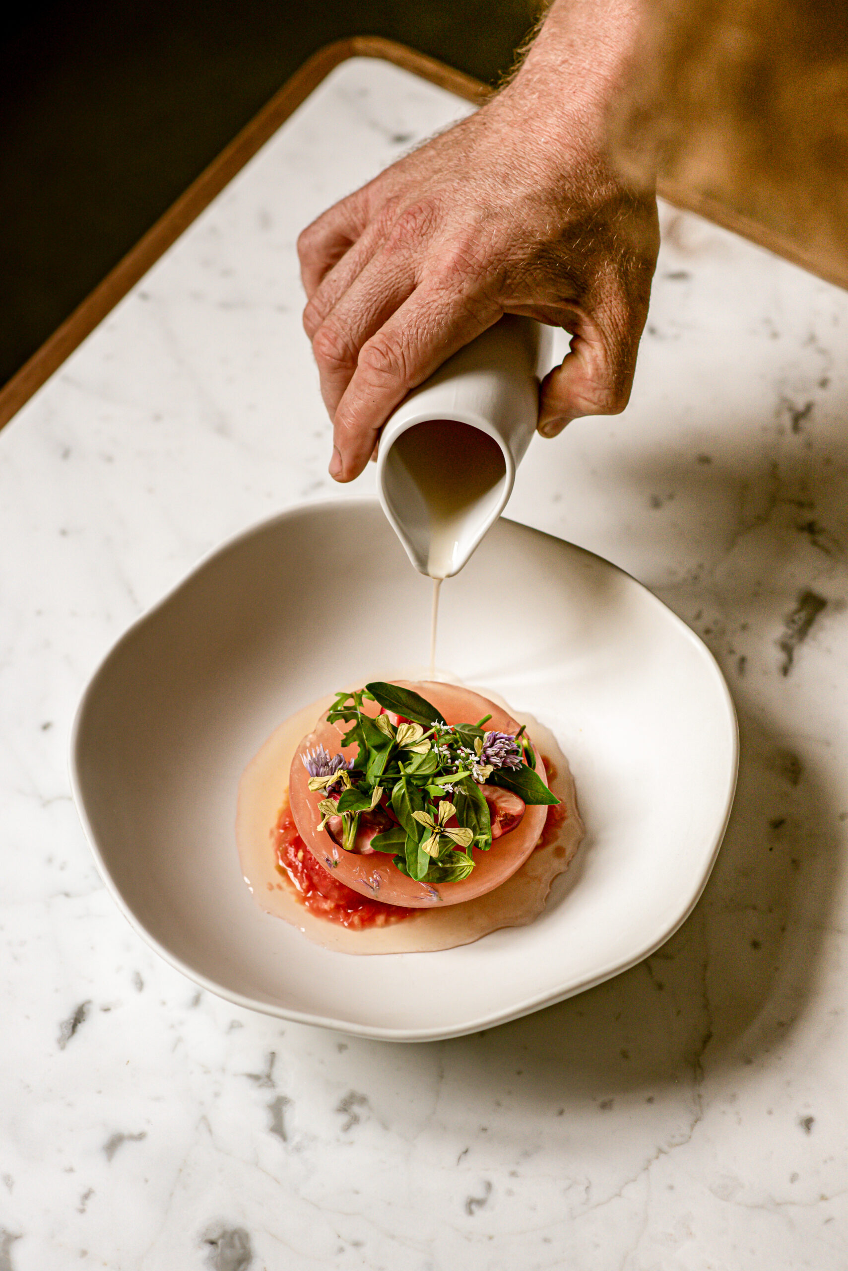 Sa détermination et son talent le mèneront à Paris, où il intègrera la brigade du restaurant Alain Ducasse*** au Plaza-Athénée sous la houlette de Christophe Saintagne, puis travaillera aux côtés de Romain Meder, s’imprégnant de la philosophie de naturalité. Ces expériences seront déterminantes dans la construction de sa vision culinaire, axée sur l’authenticité des saveurs et le respect des produits.