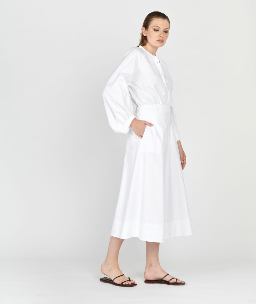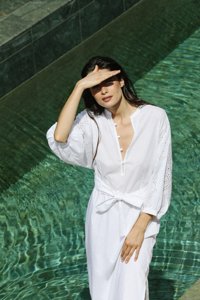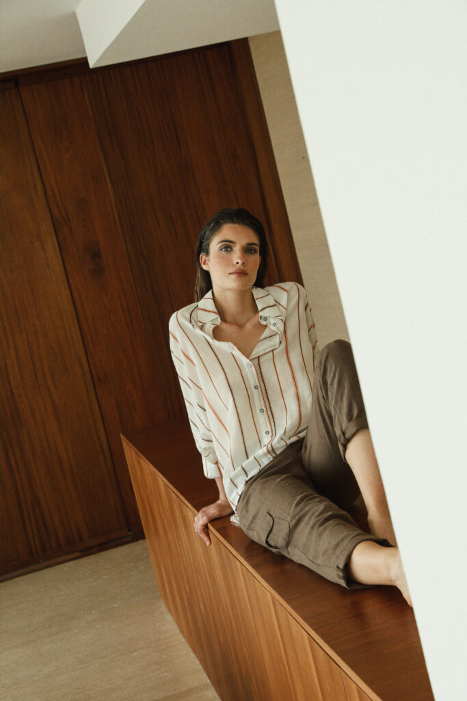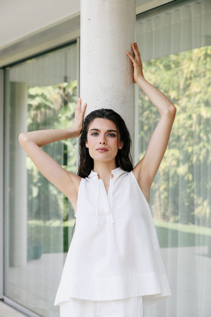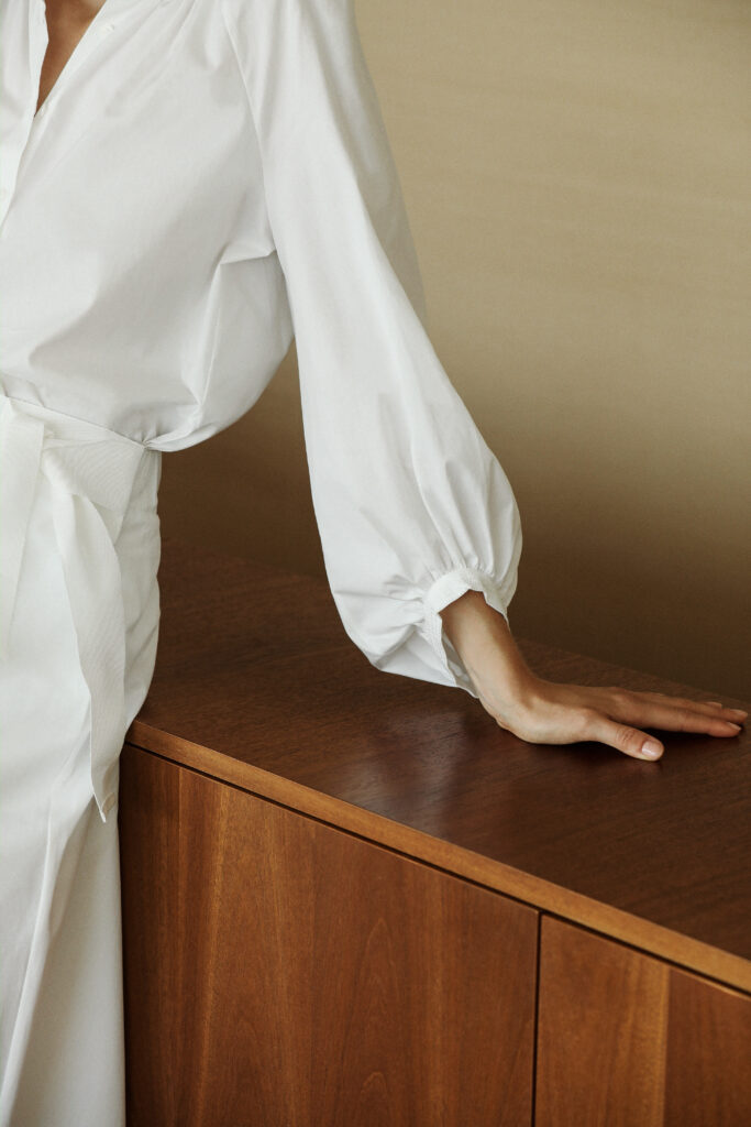 Élément central de chaque collection, la chemise blanche incarne l’essence de Hana San. Déclinée en divers modèles, de la popeline de coton au satin de soie, elle représente l’équilibre parfait entre classicisme et innovation. Chaque saison, cette pièce maîtresse est réinventée, restant fidèle à l’ADN de la marque tout en se réinventant pour répondre aux désirs contemporains.