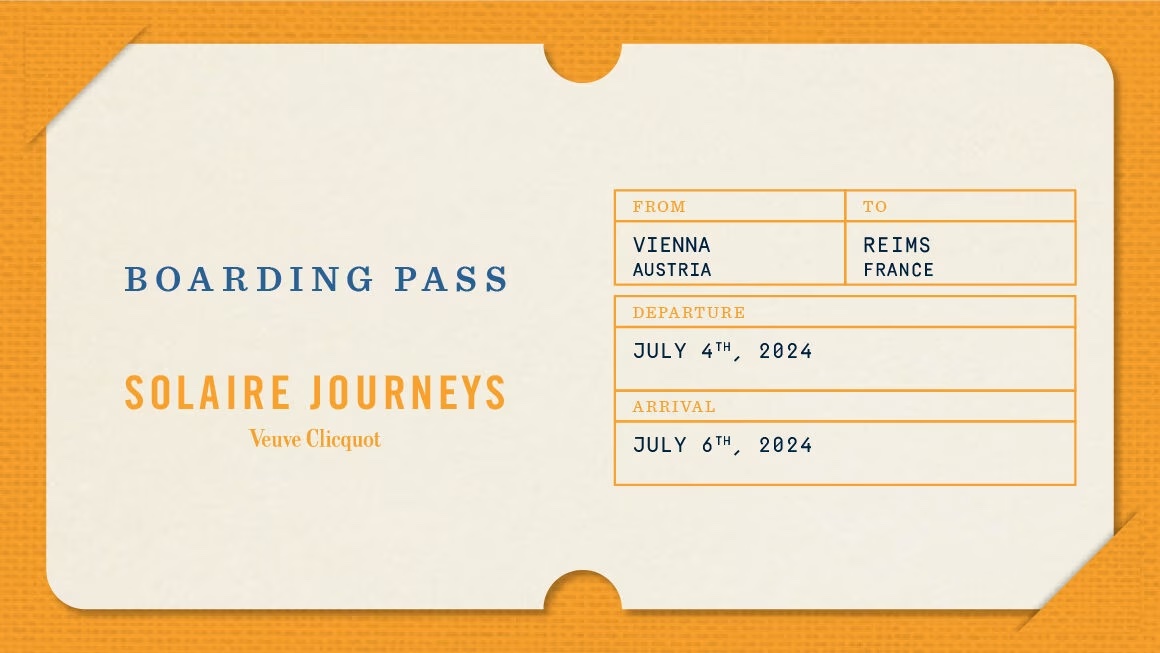 Partez pour un périple entre Vienne et Reims, berceau de la Maison Veuve Clicquot, à bord du légendaire train Belmond. Cette aventure unique offre un itinéraire exclusif proposé pour cette seule occasion. Vous aurez l’opportunité de découvrir des paysages pittoresques tout en dégustant les champagnes les plus rares de la Maison.