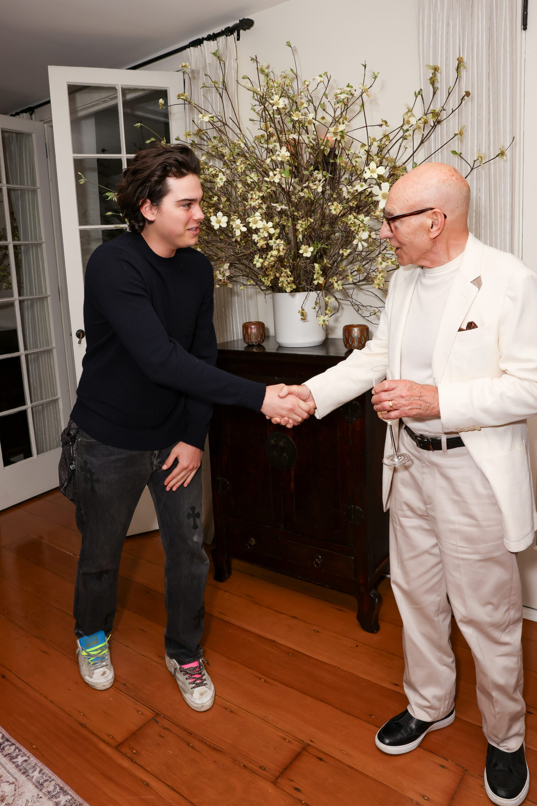 The event saw an impressive gathering of celebrities and fashion influencers, all coming together to celebrate the essence of modern British style. Notably, Sir Patrick Stewart and Dylan Brosnan were in attendance, both adorned in dunhill’s signature tailored looks that perfectly encapsulated the brand’s refined aesthetic. Other notable guests included Paris Brosnan, Honor Titus, artists Alex Israel, and fashion icons Nick Wooster and Ilaria Urbinati, further highlighting the cross-industry appeal of the event.