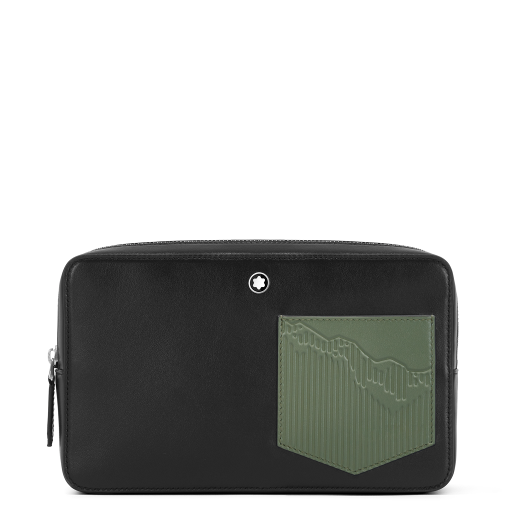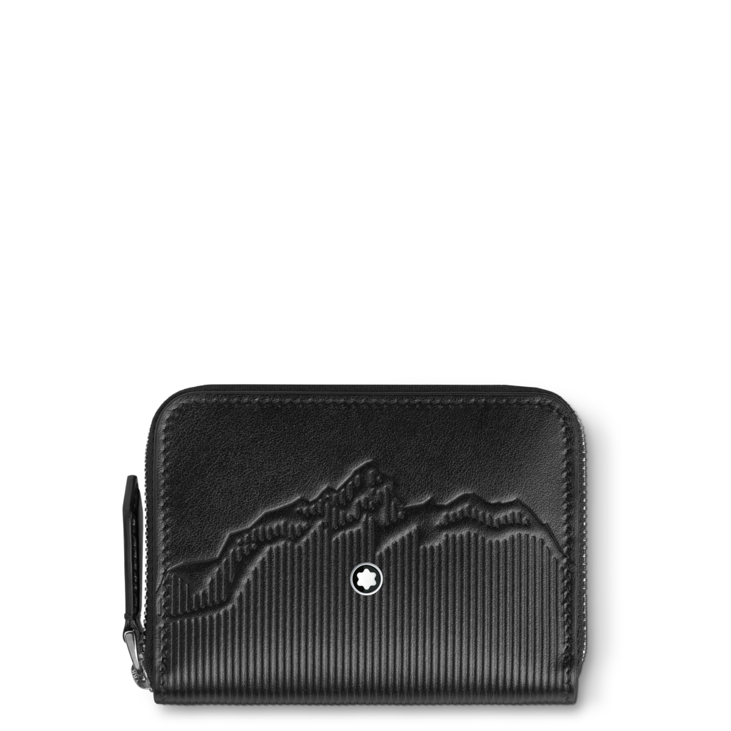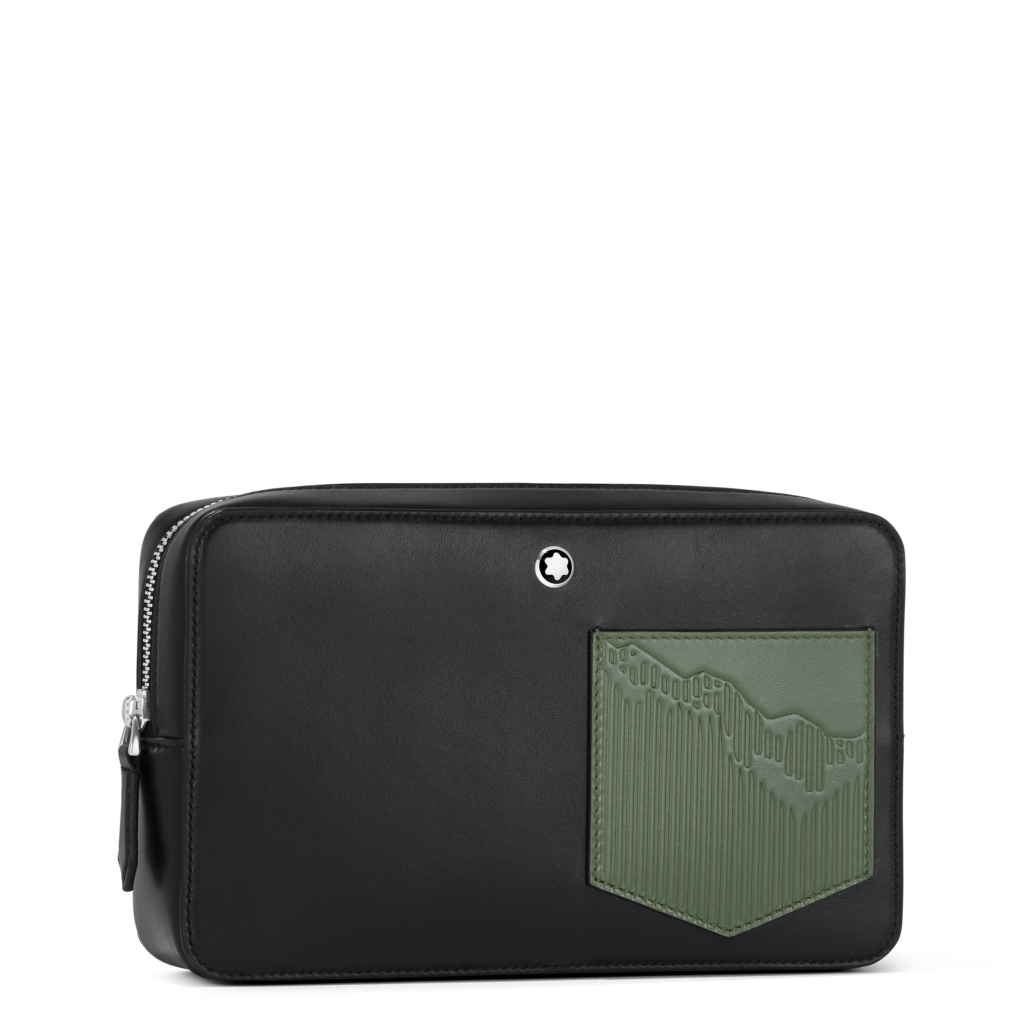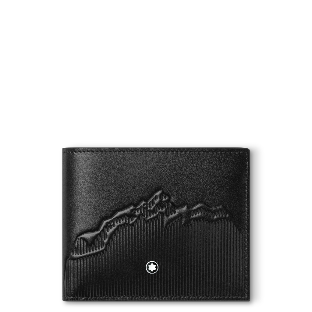 La première capsule met en avant une palette sophistiquée de noir, ornée de la silhouette emblématique du Mont Blanc, un motif historique de la marque. Cette collection inclut des sacs de différents formats ainsi que des articles de petite maroquinerie tels qu’un portefeuille et un porte-cartes, tous réalisés en cuir noir brillant qui rappelle la résine précieuse du Meisterstück.