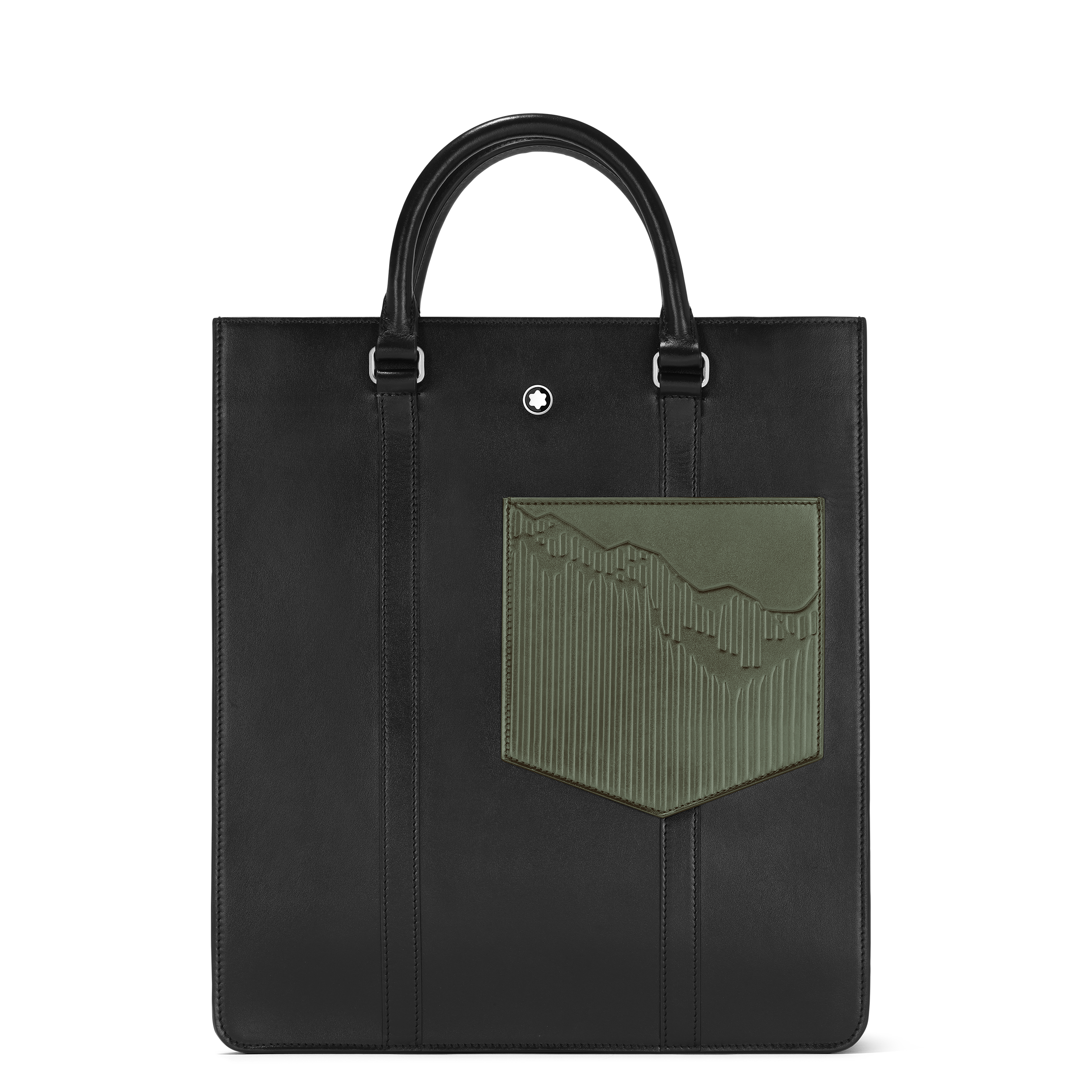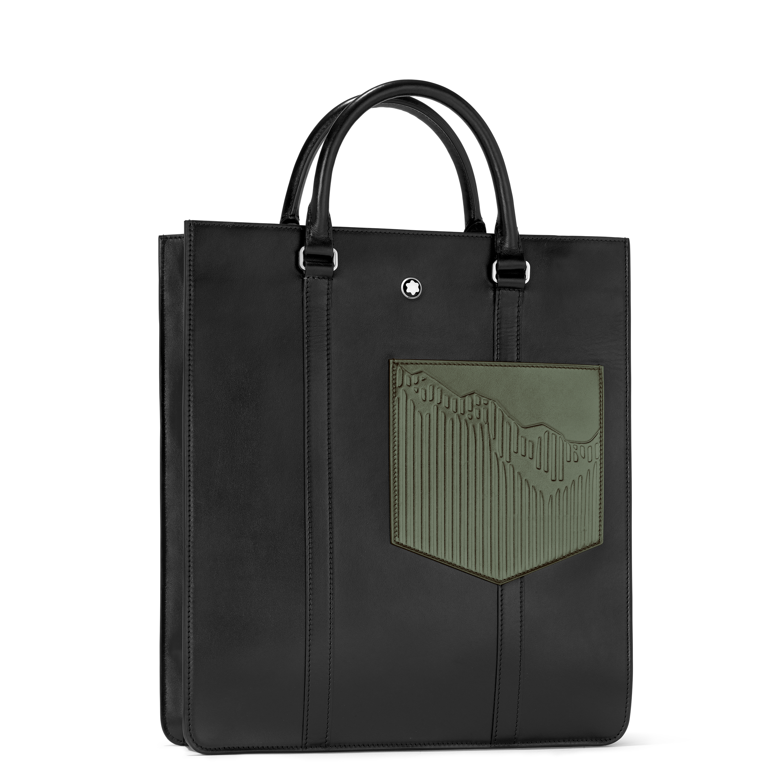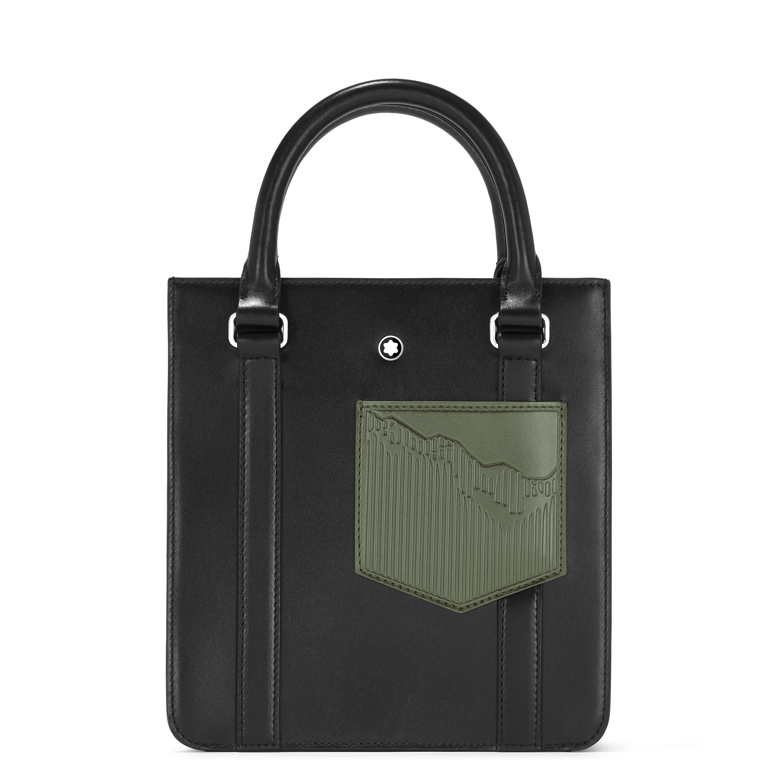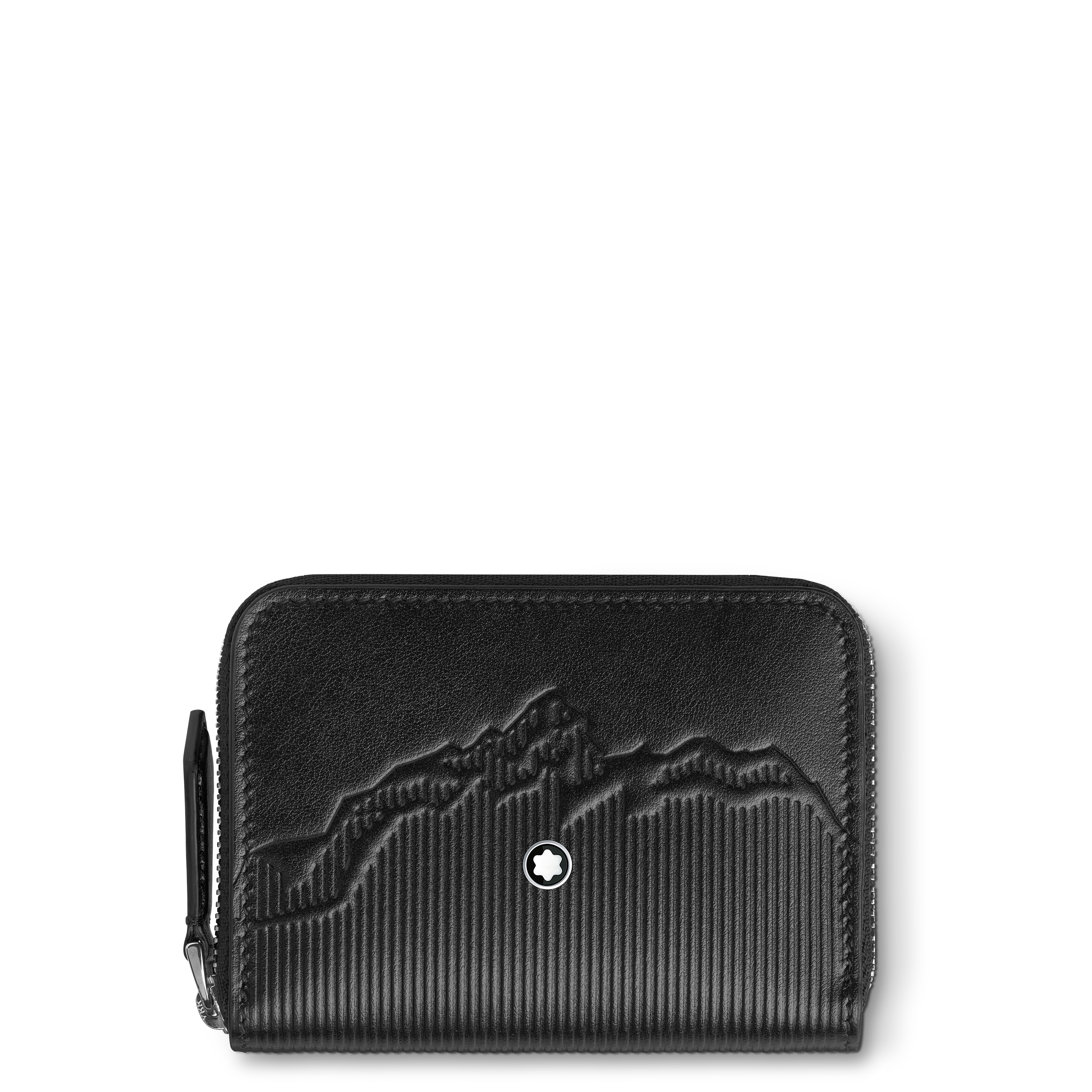La première capsule met en avant une palette sophistiquée de noir, ornée de la silhouette emblématique du Mont Blanc, un motif historique de la marque. Cette collection inclut des sacs de différents formats ainsi que des articles de petite maroquinerie tels qu’un portefeuille et un porte-cartes, tous réalisés en cuir noir brillant qui rappelle la résine précieuse du Meisterstück.