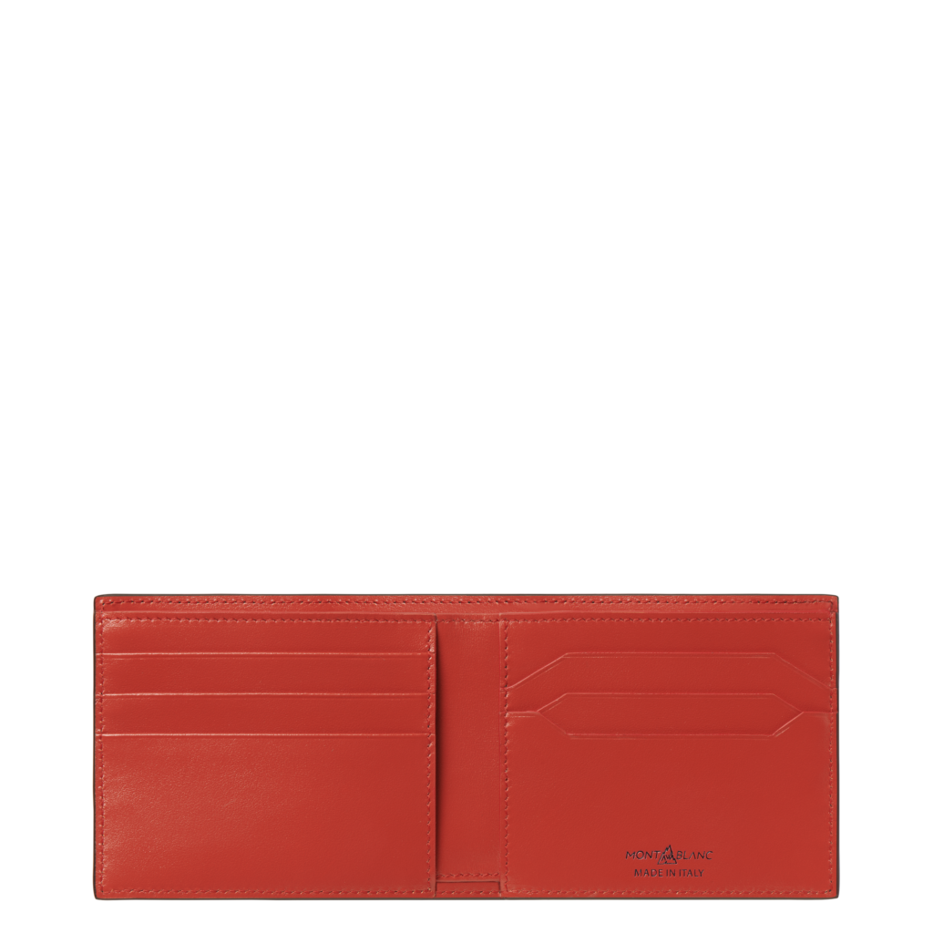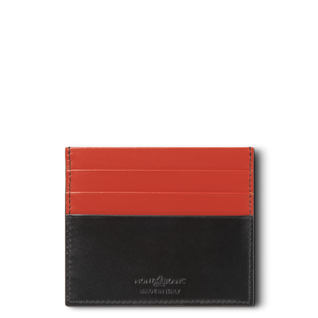 La seconde capsule introduit un coloris Coral vibrant, tiré des archives de Montblanc et souvent vu dans leurs premiers instruments d’écriture. Cette série présente un design bicolore avec des portefeuilles et des porte-cartes combinant l’extérieur noir classique et un intérieur éclatant Coral. L’emblème Montblanc est également réinterprété avec un fond Coral pour cette occasion spéciale.