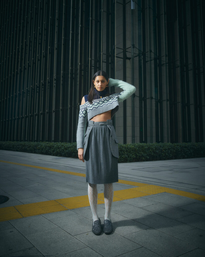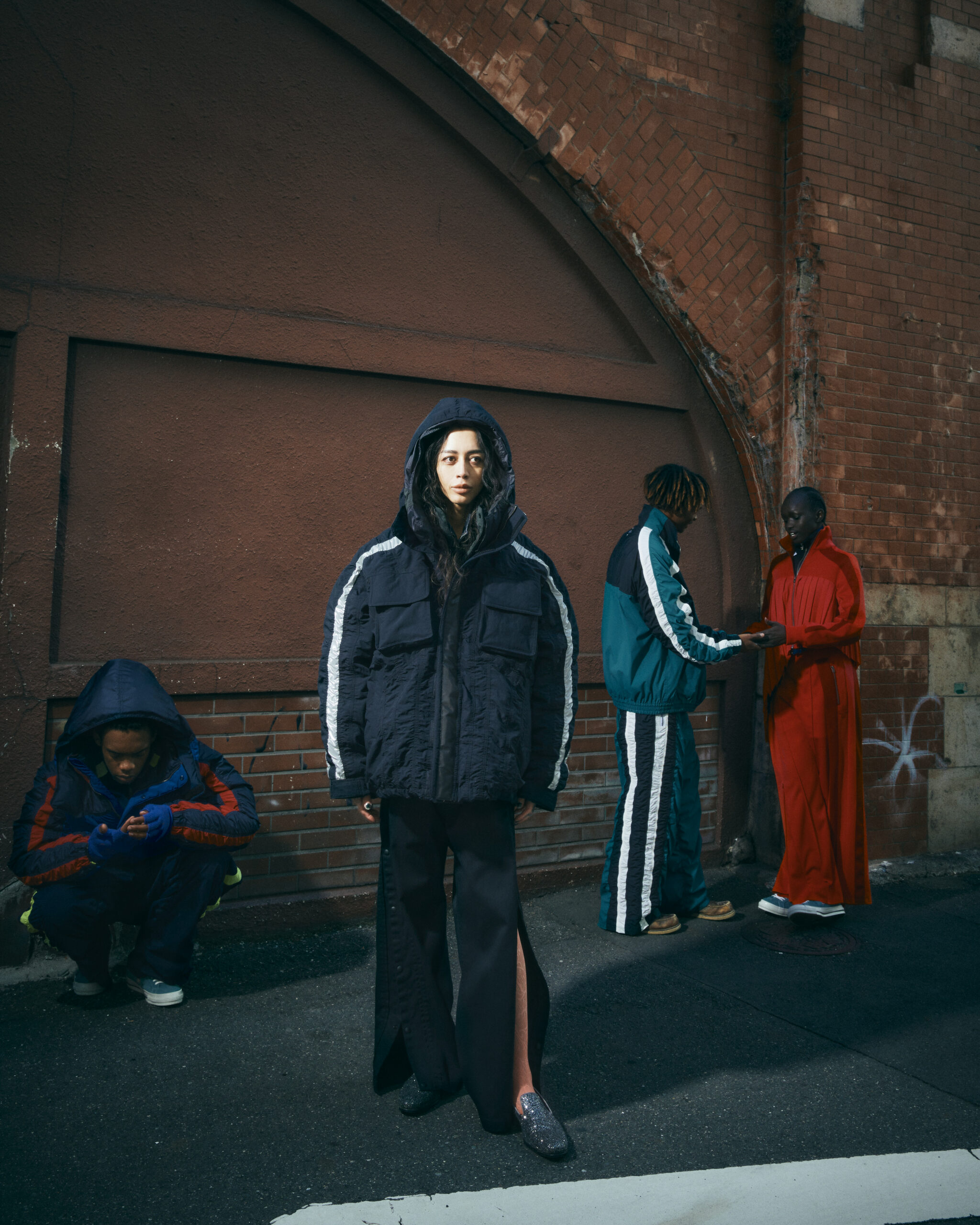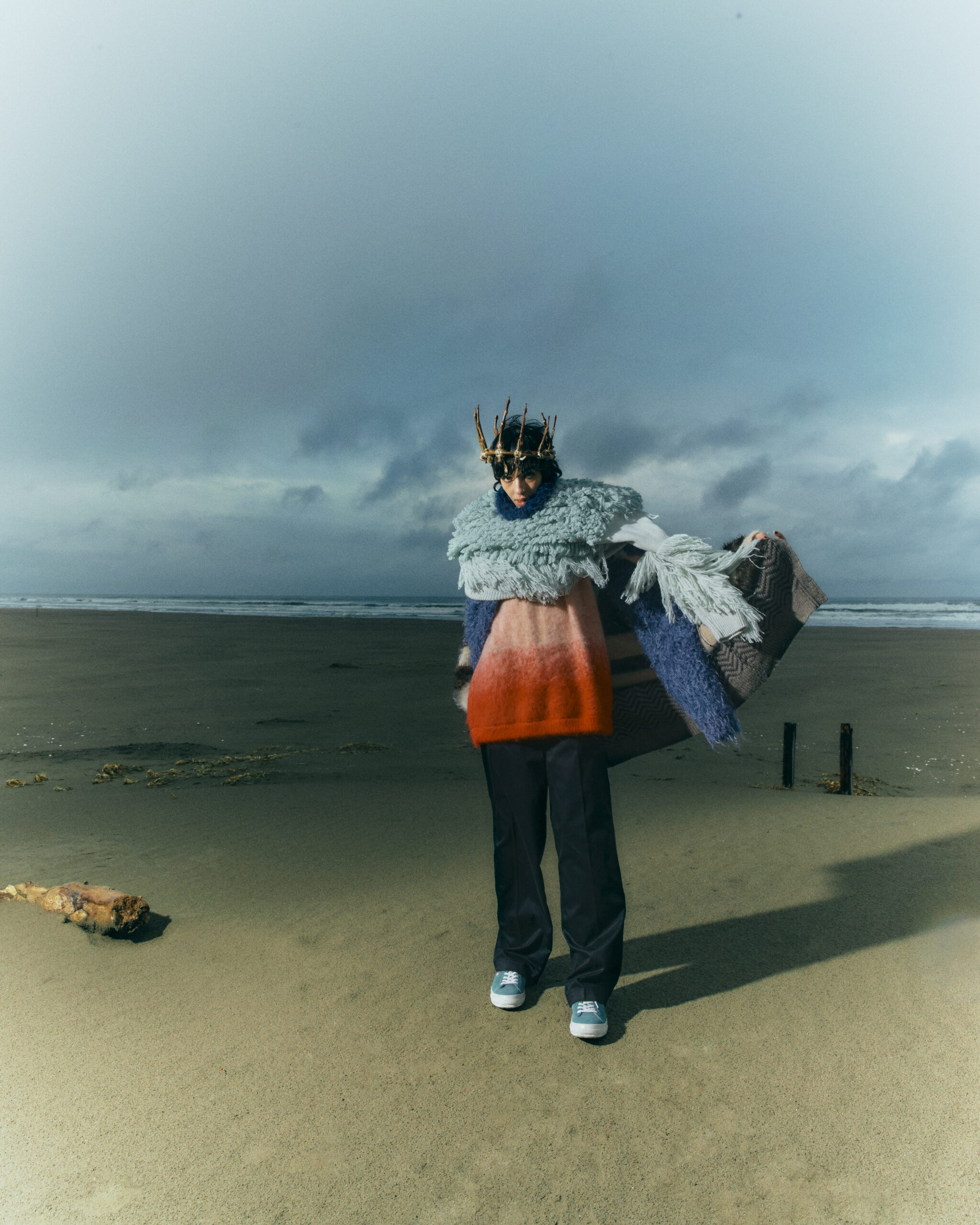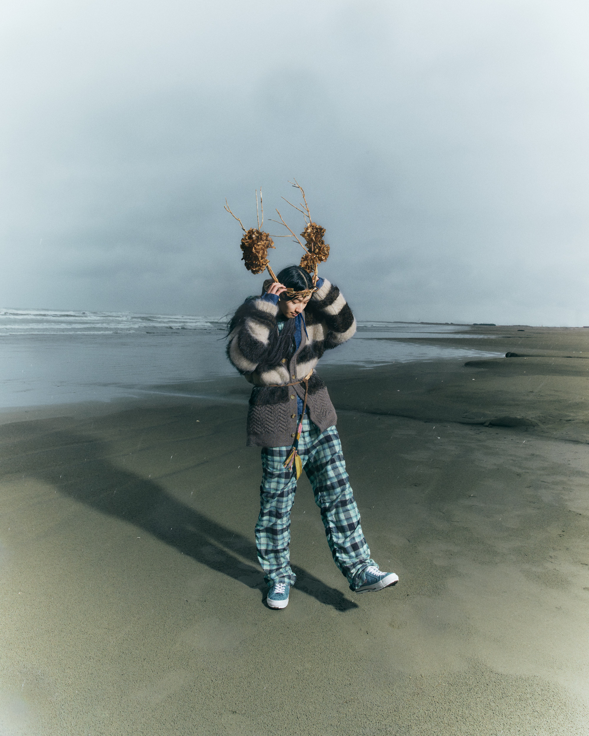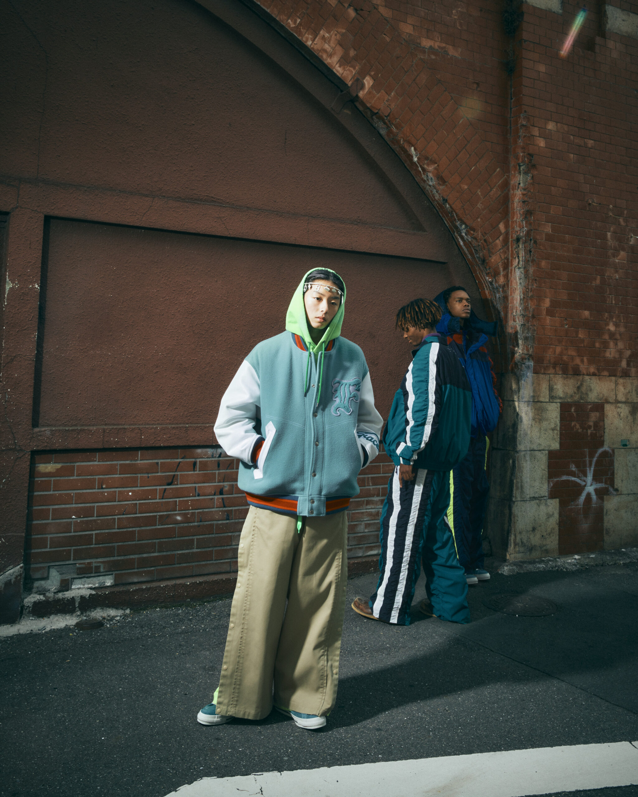 L’empreinte de Jonze, avec son penchant pour explorer les thèmes de la solitude et du désir au sein de contextes souvent surréalistes, se ressent profondément dans cette collection. FACETASM, sous la direction de Hiromichi Ochiai, réussit à capturer cette essence par des silhouettes qui oscillent entre intimité et extraversion, illustrant la complexité des émotions humaines. Les textures douces et les palettes de couleurs apaisantes se mêlent à des éléments de design audacieux et inattendus, créant un équilibre harmonieux entre confort et expression artistique.