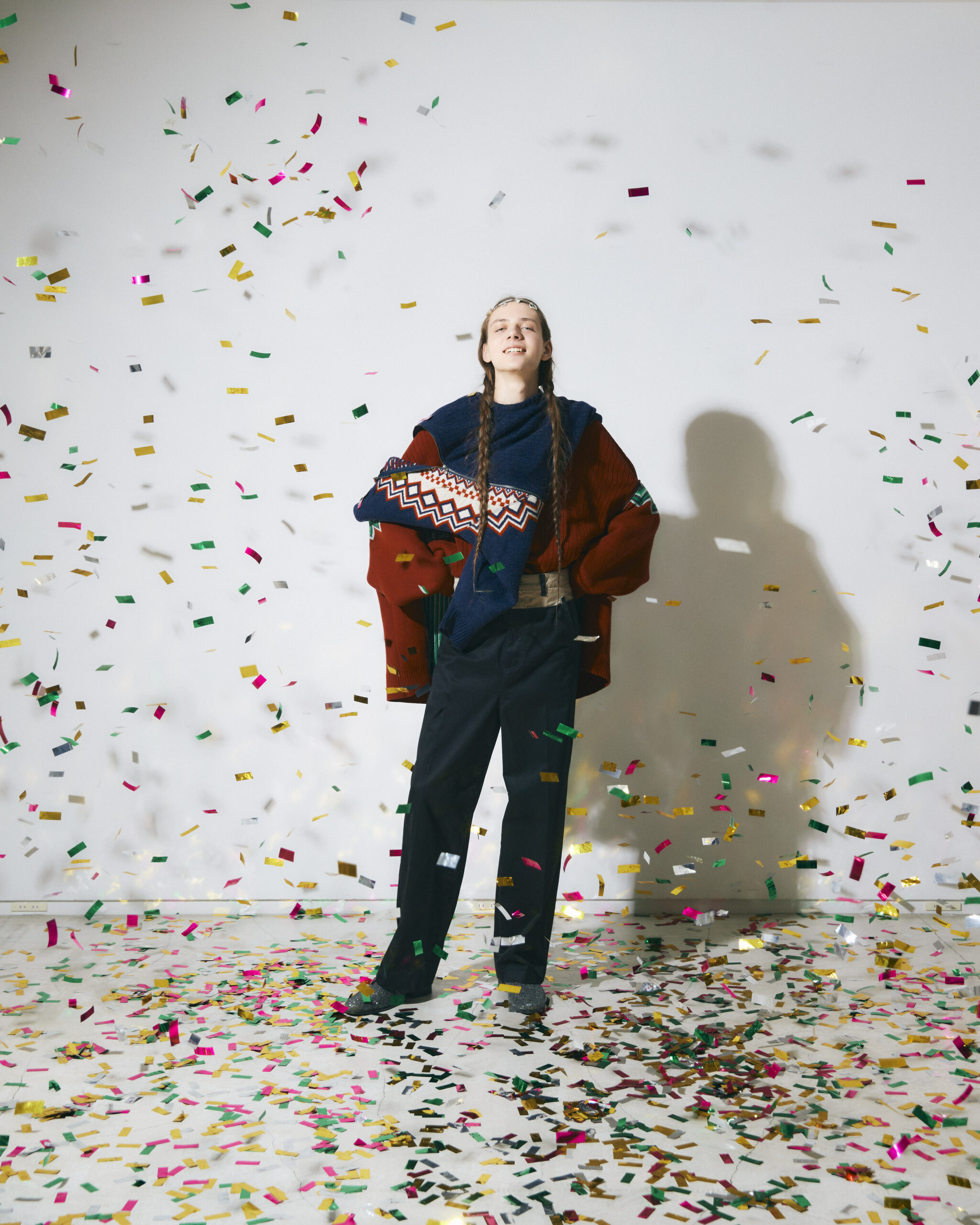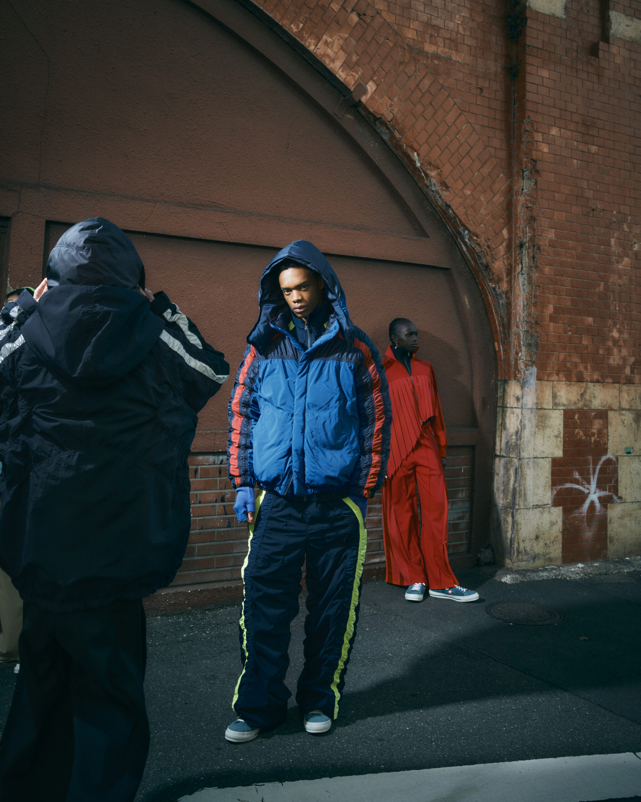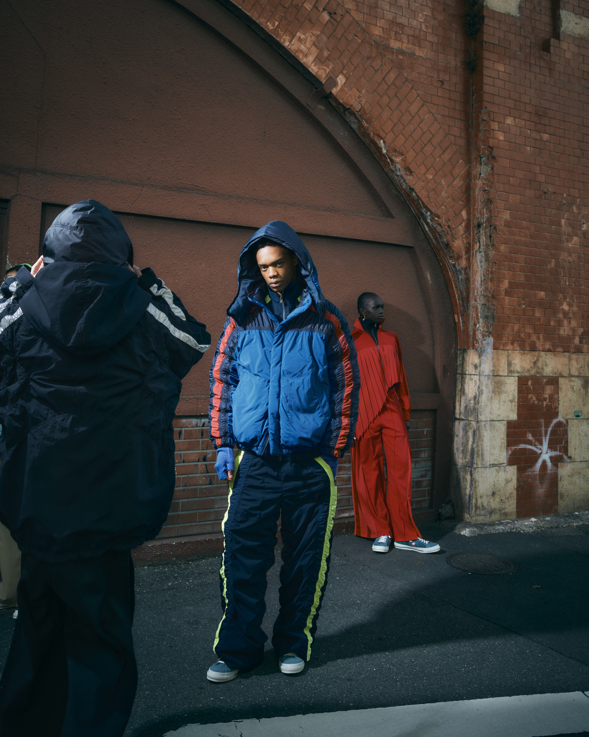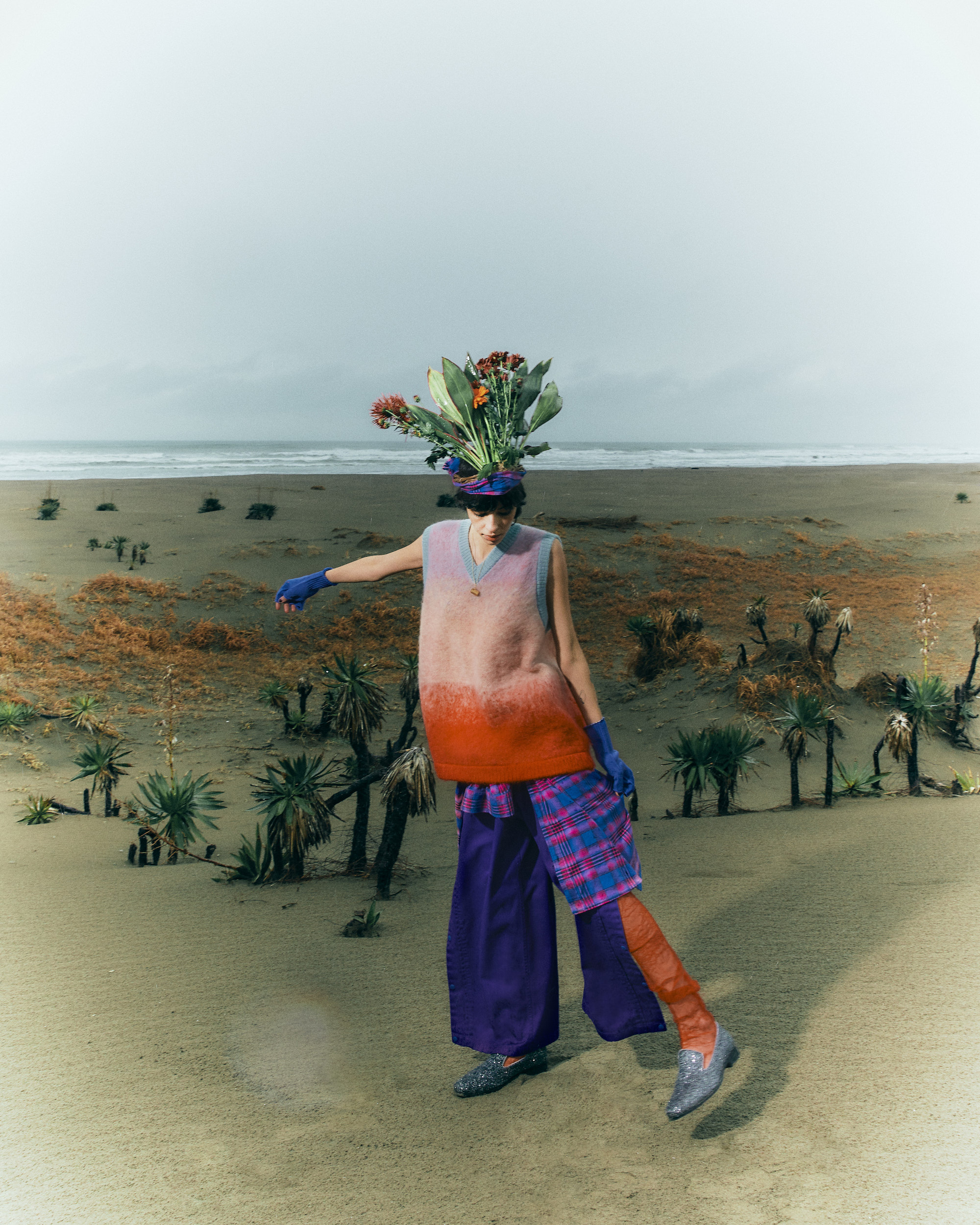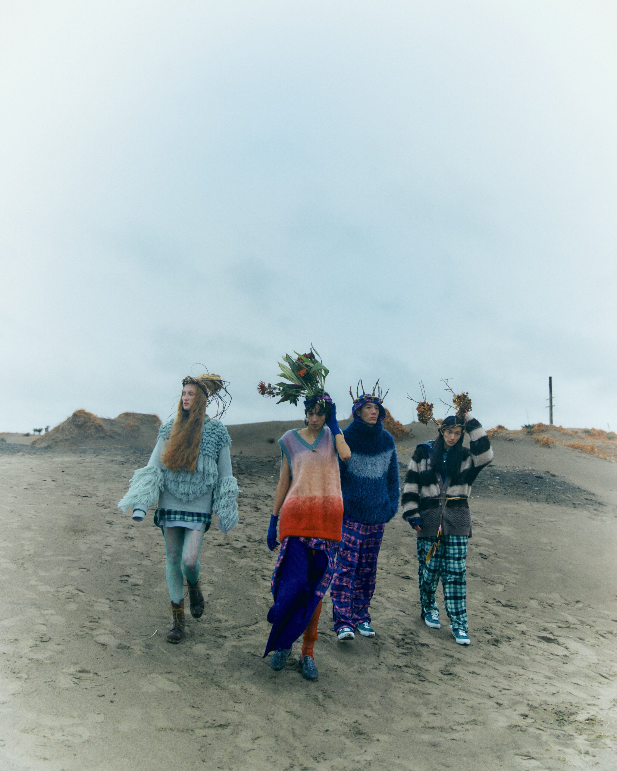 L’empreinte de Jonze, avec son penchant pour explorer les thèmes de la solitude et du désir au sein de contextes souvent surréalistes, se ressent profondément dans cette collection. FACETASM, sous la direction de Hiromichi Ochiai, réussit à capturer cette essence par des silhouettes qui oscillent entre intimité et extraversion, illustrant la complexité des émotions humaines. Les textures douces et les palettes de couleurs apaisantes se mêlent à des éléments de design audacieux et inattendus, créant un équilibre harmonieux entre confort et expression artistique.