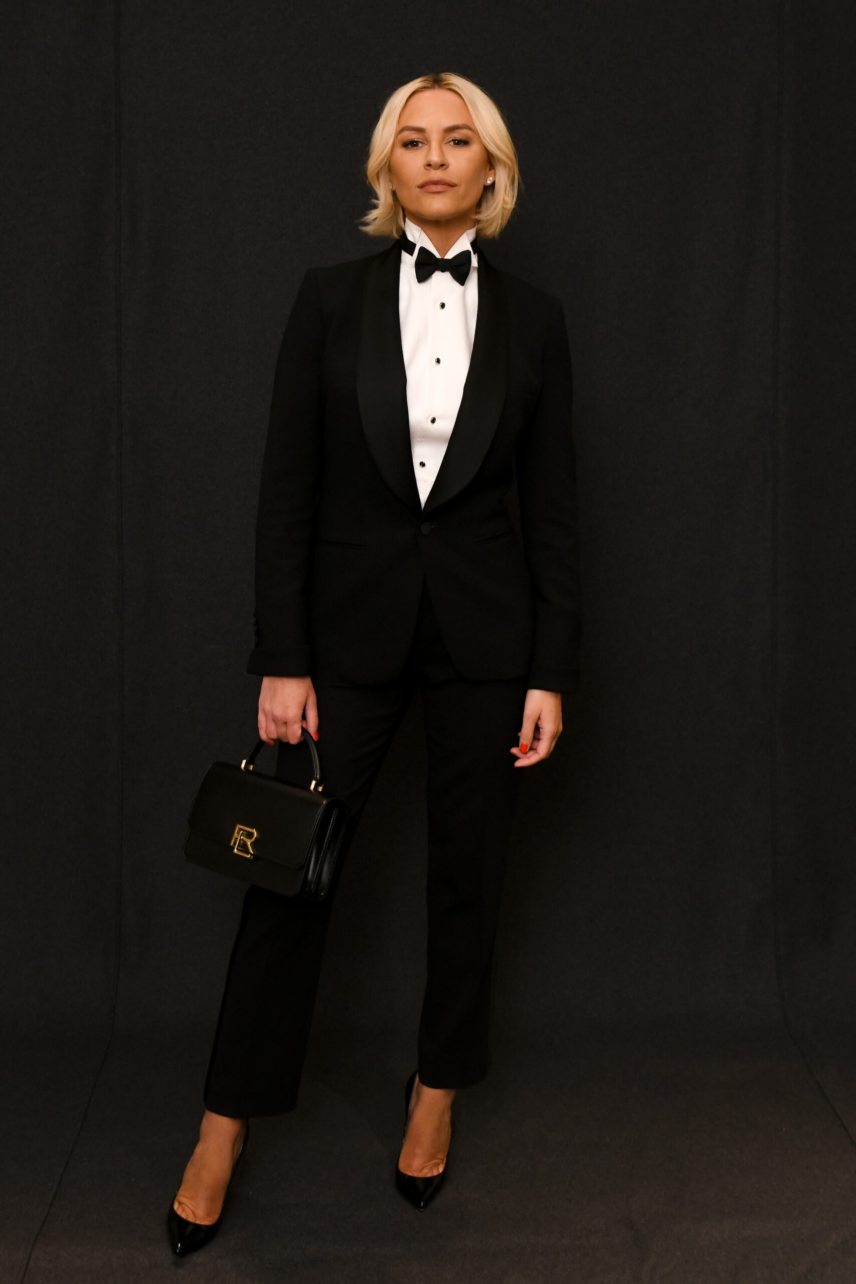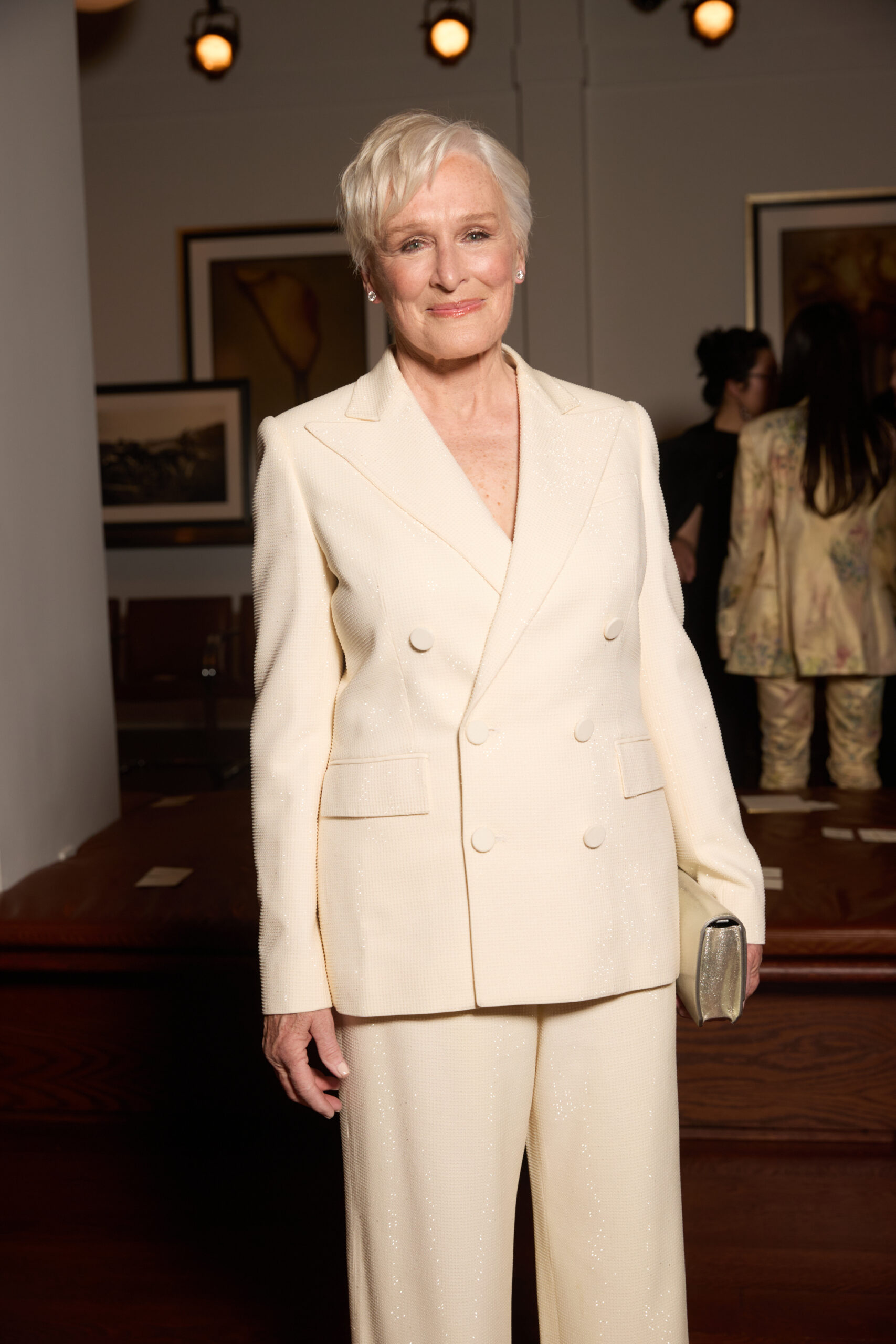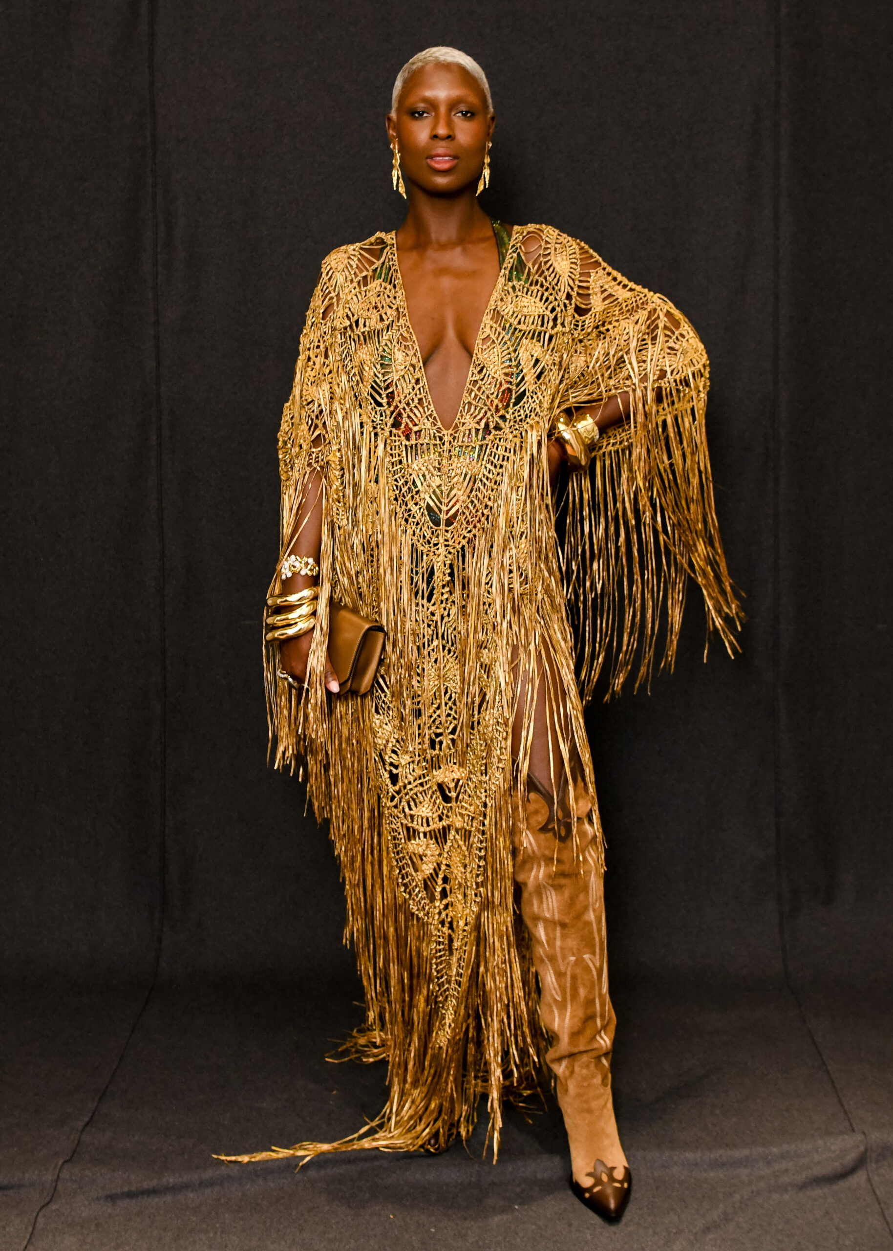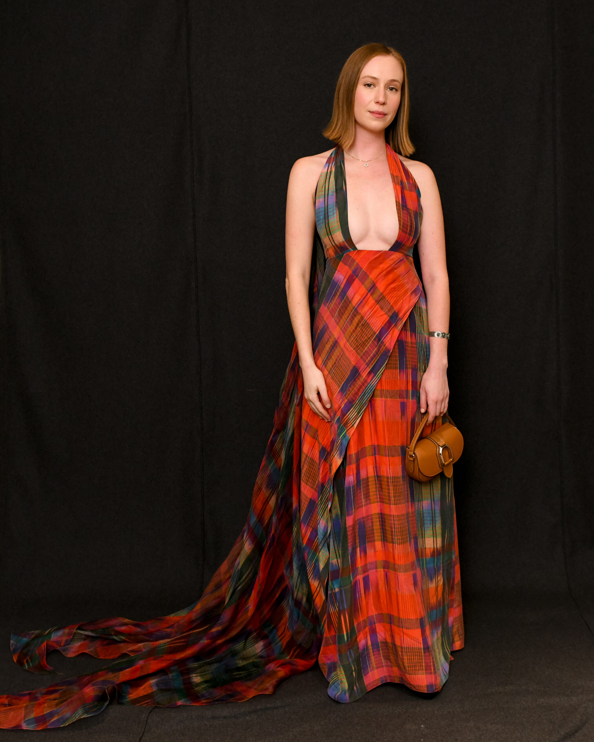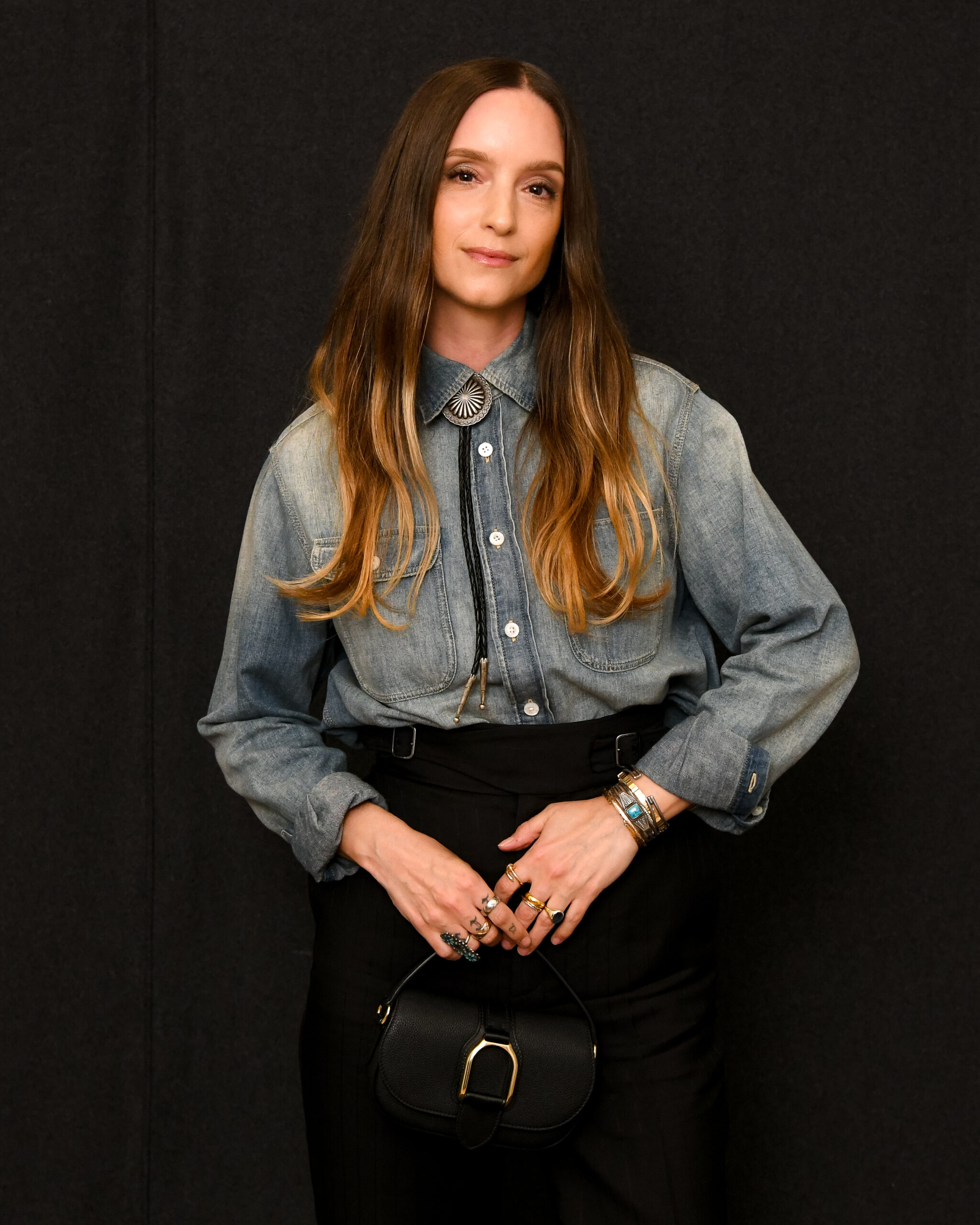 La collection fait la part belle aux nuances neutres et métalliques, qui soulignent le luxe discret et l’élégance intemporelle caractéristiques de la marque. Les pièces maîtresses incluent des vestes de tailleur ajustées, des tricots drapés, ainsi que des éléments en daim et cuir, et des robes coupées en biais. Ralph Lauren marie minimalisme et artistry en agrémentant ses pièces préférées de perles et de tweeds, de patchworks et d’ornements.