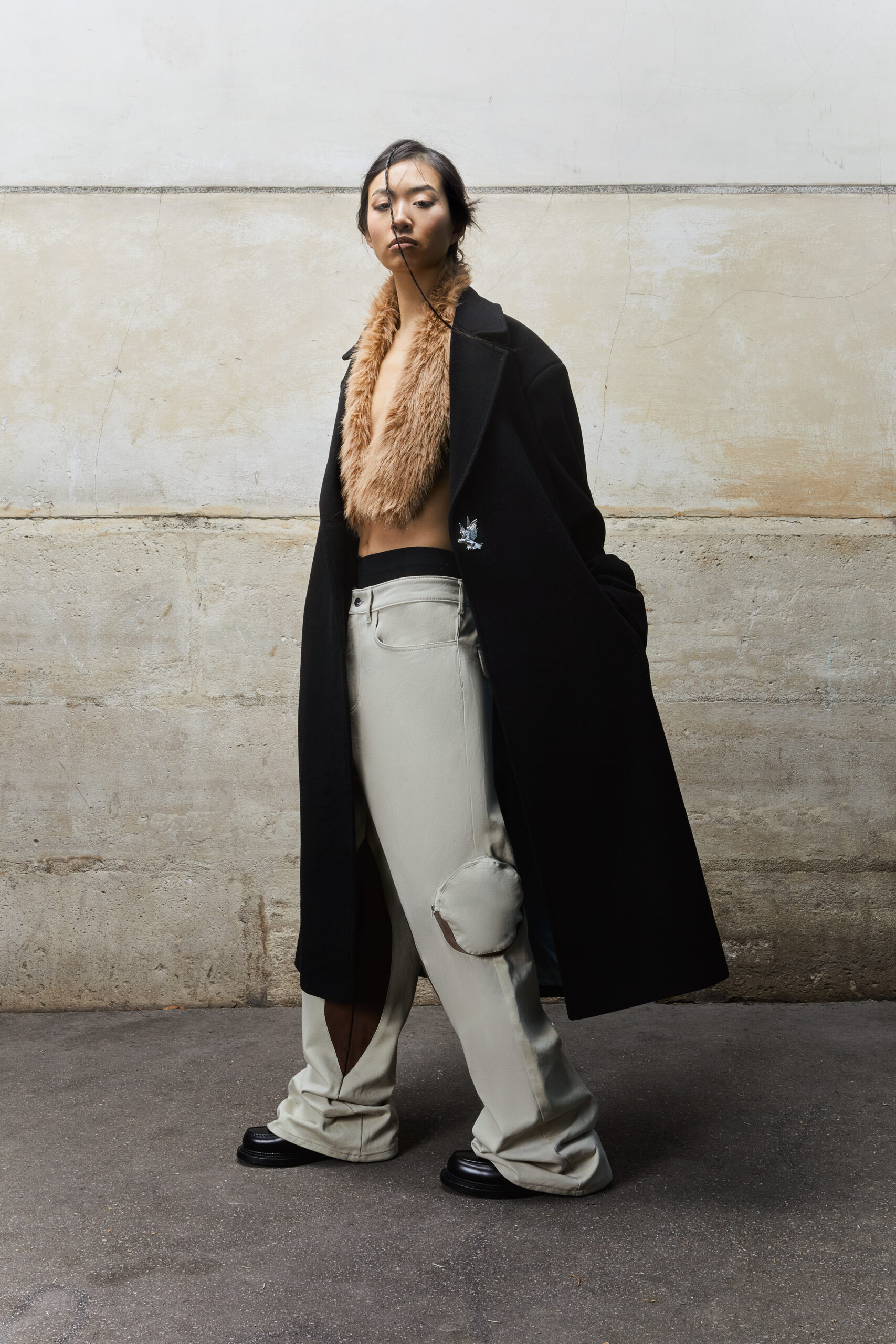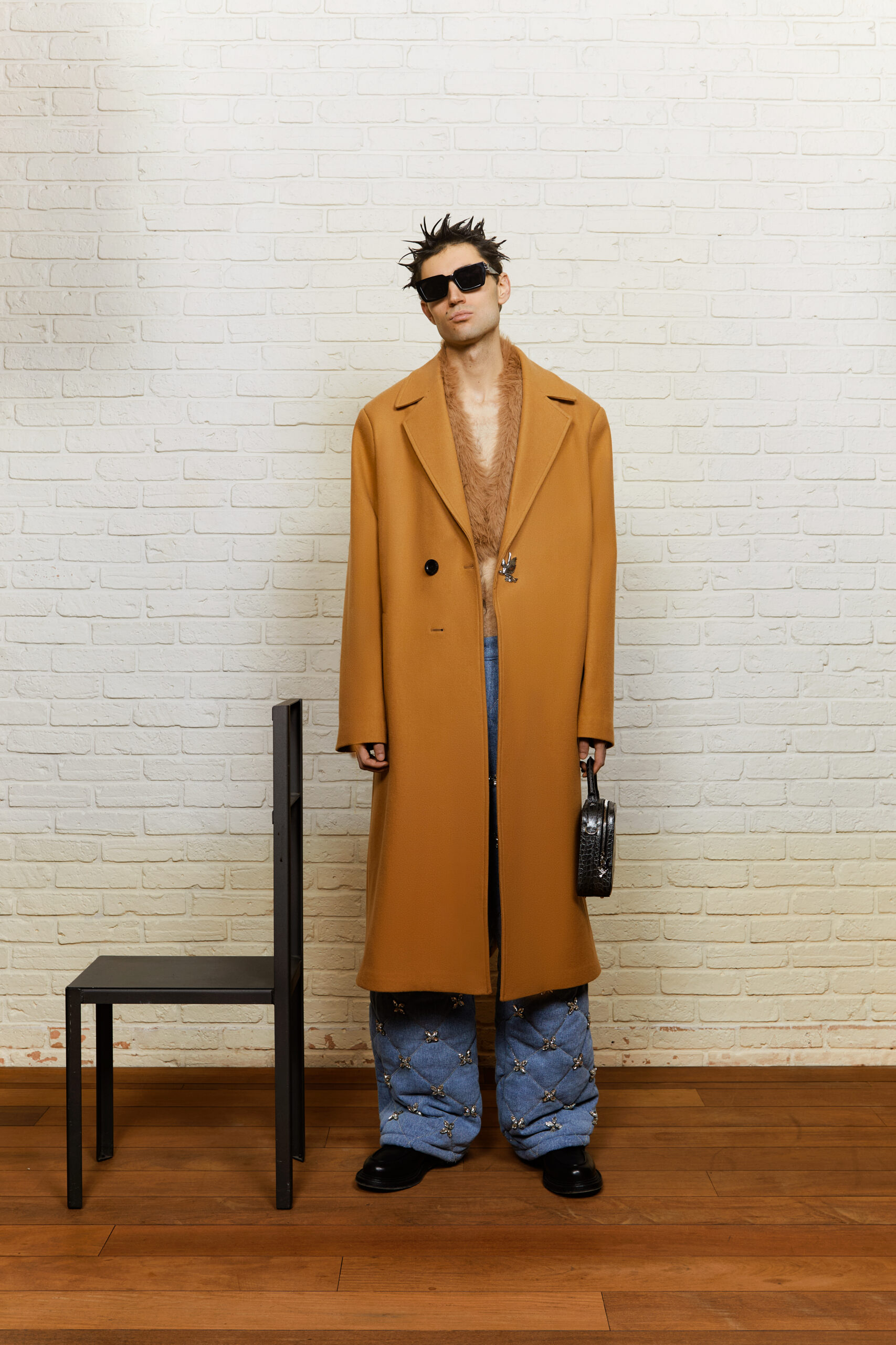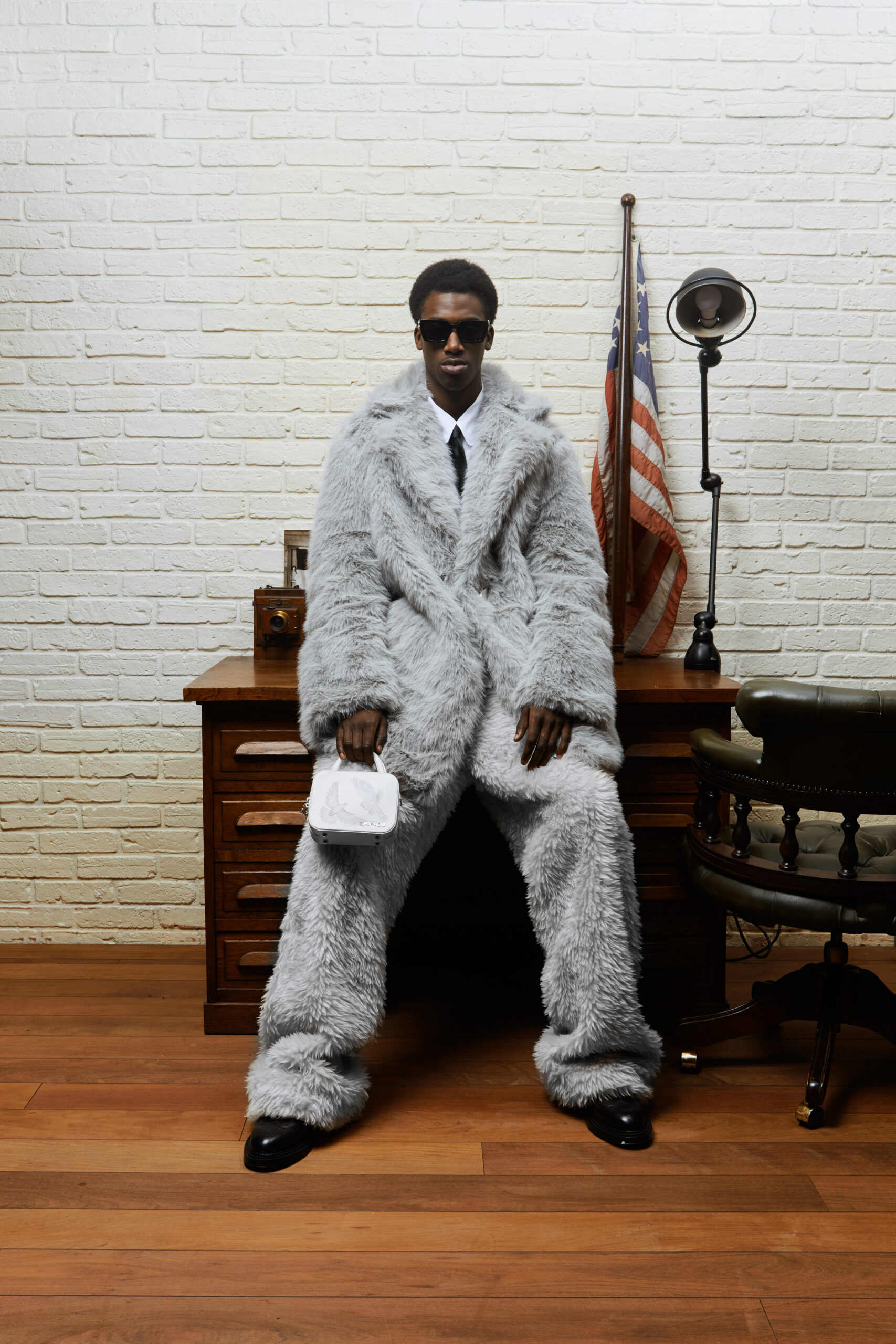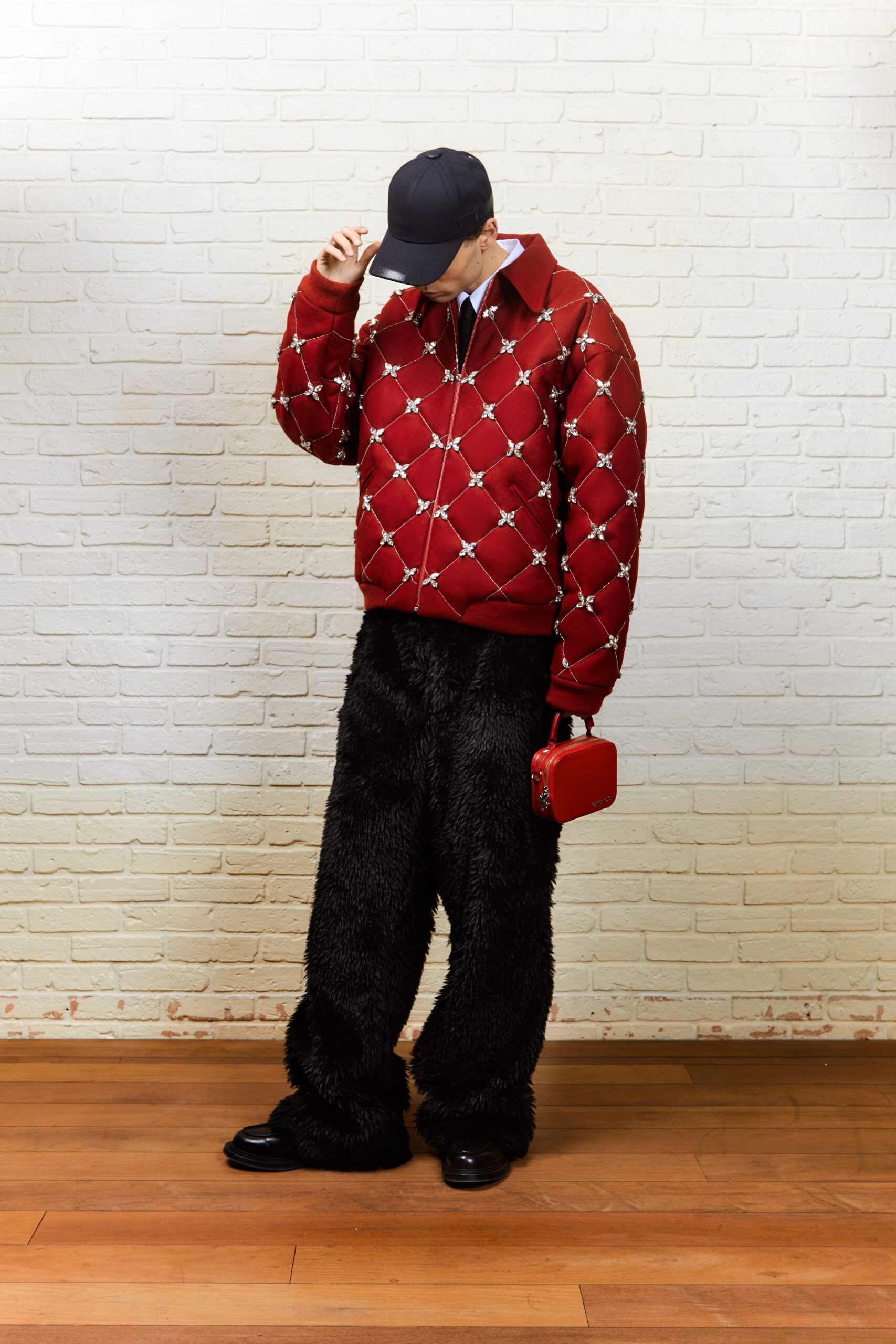 Dans un vestiaire débridé des codes, faits de volumes exagérés, de superpositions et matières luxueuses, la marque sonde les recoins de l’âme humaine. Crocodile, fourrure, denim, laine feutrée ou cristaux Swarovski révèlent les strates de l’identité, écho d’une lutte intérieure universelle.