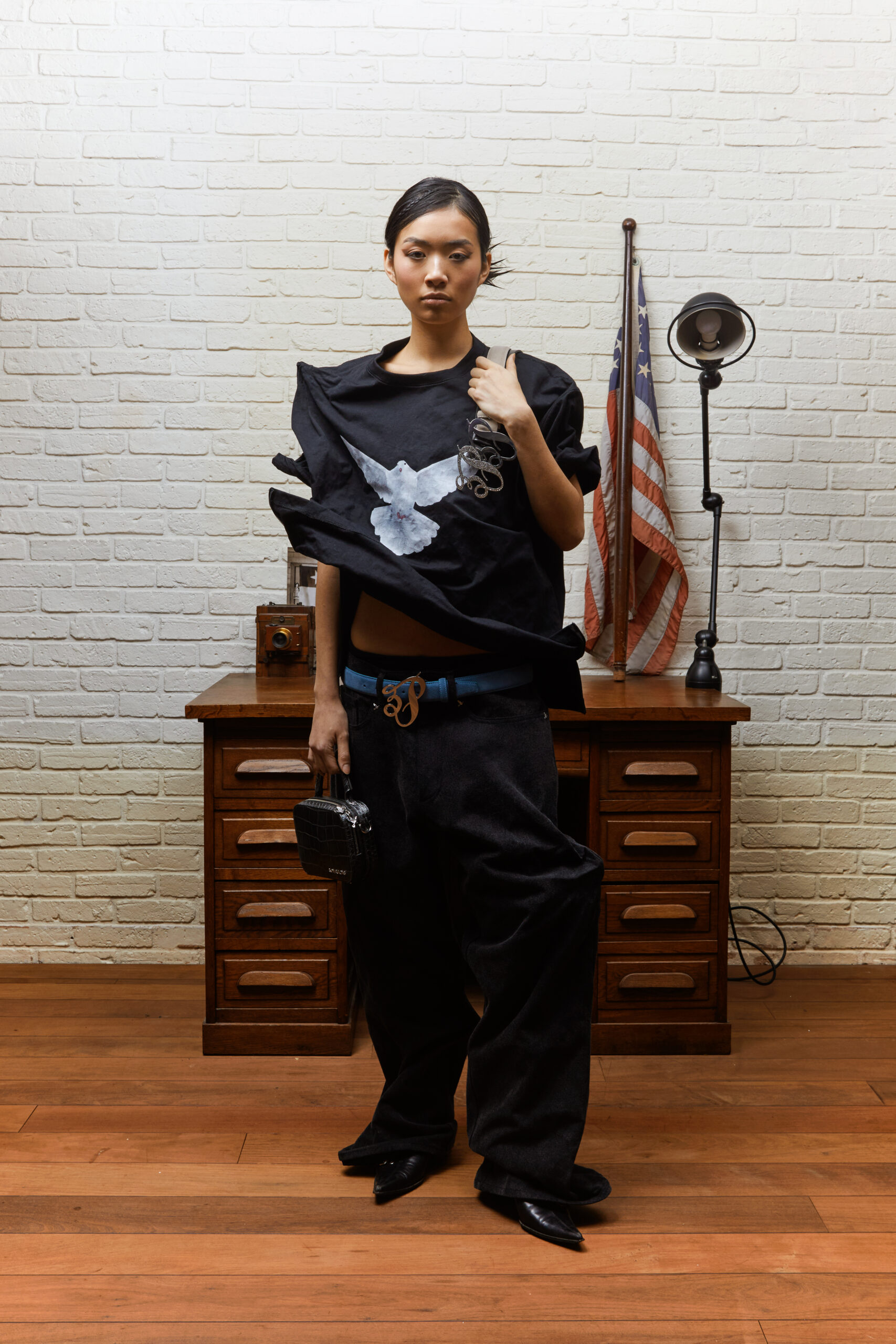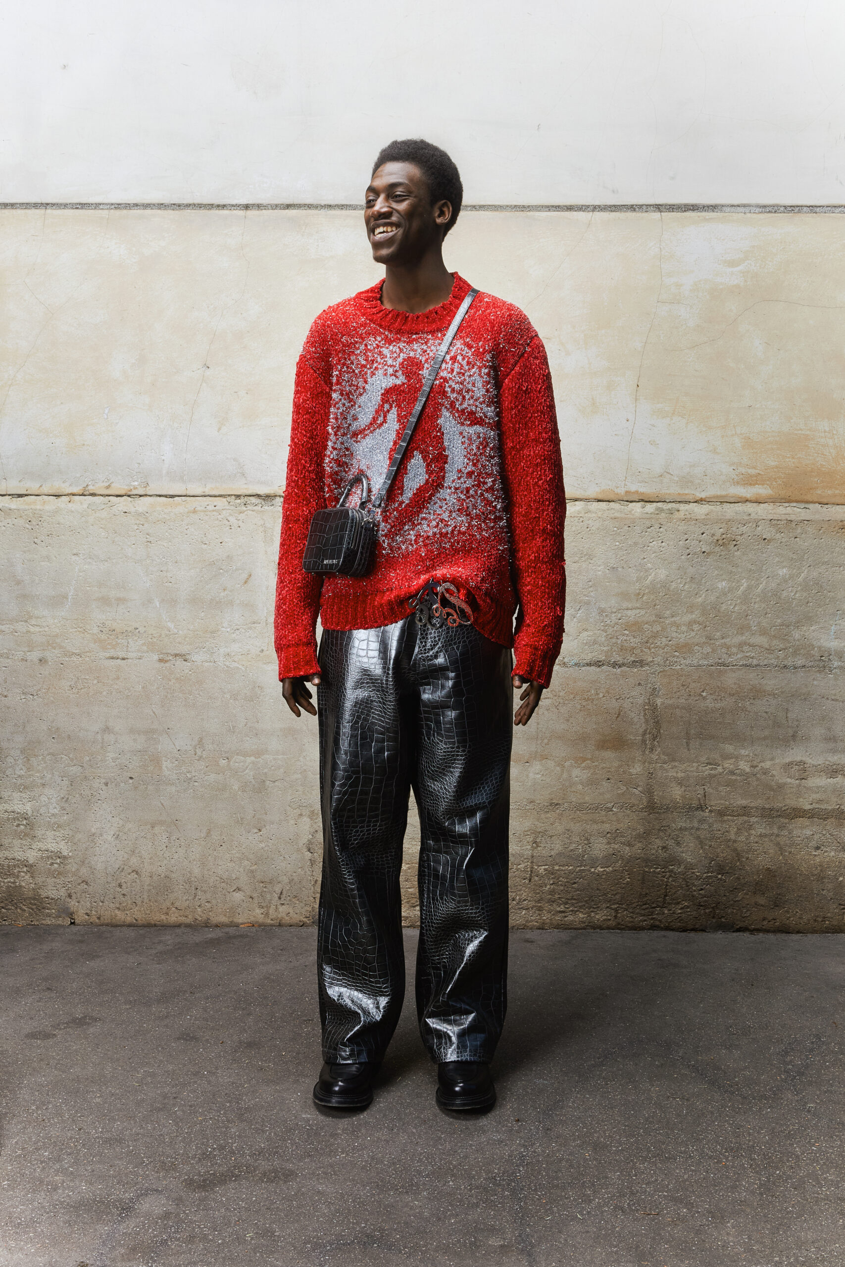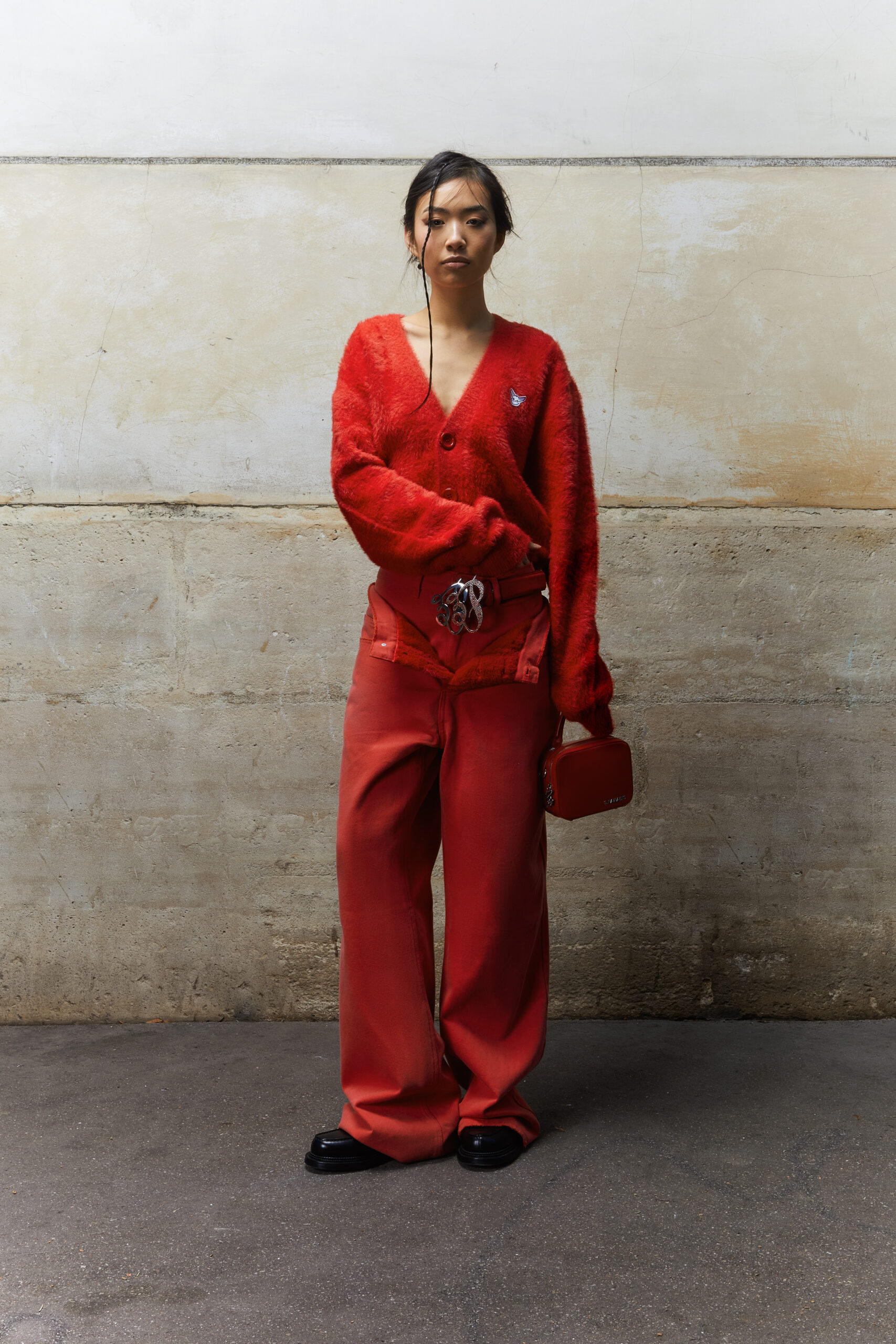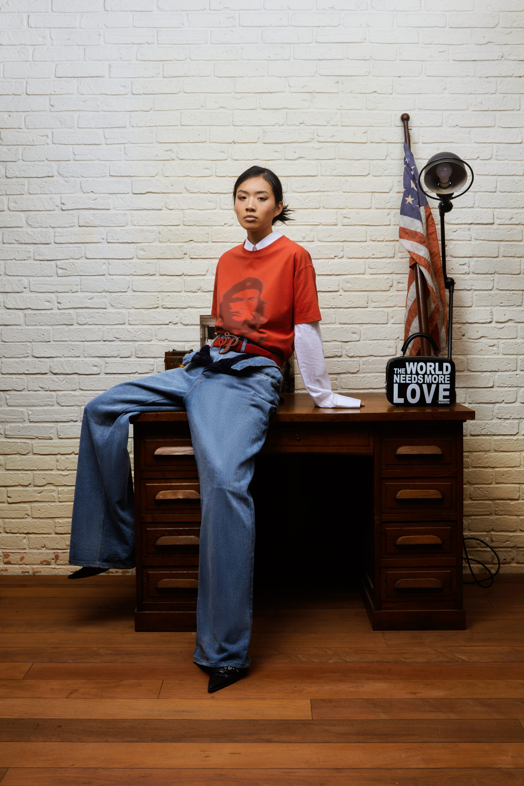 Dans un vestiaire débridé des codes, faits de volumes exagérés, de superpositions et matières luxueuses, la marque sonde les recoins de l’âme humaine. Crocodile, fourrure, denim, laine feutrée ou cristaux Swarovski révèlent les strates de l’identité, écho d’une lutte intérieure universelle.
