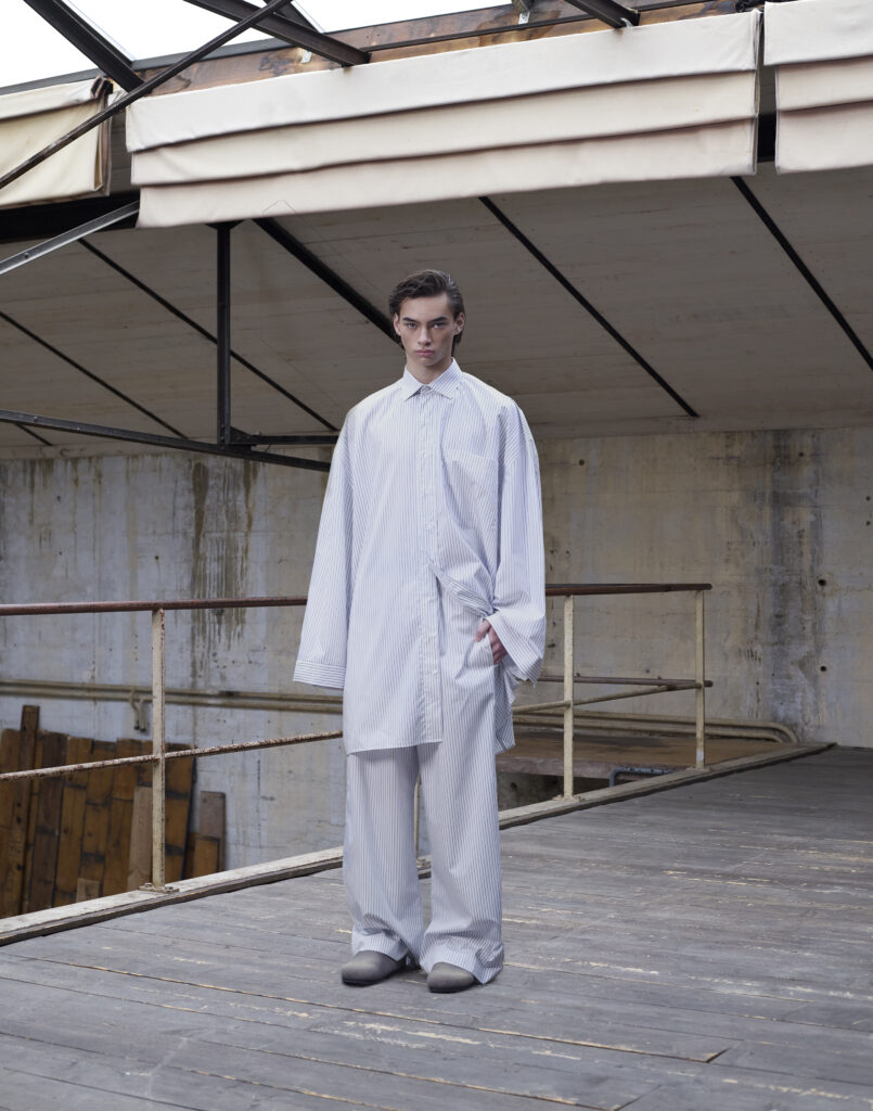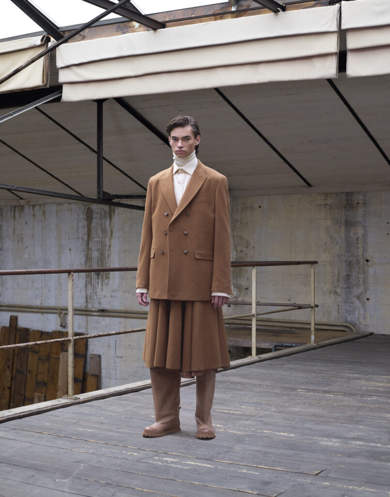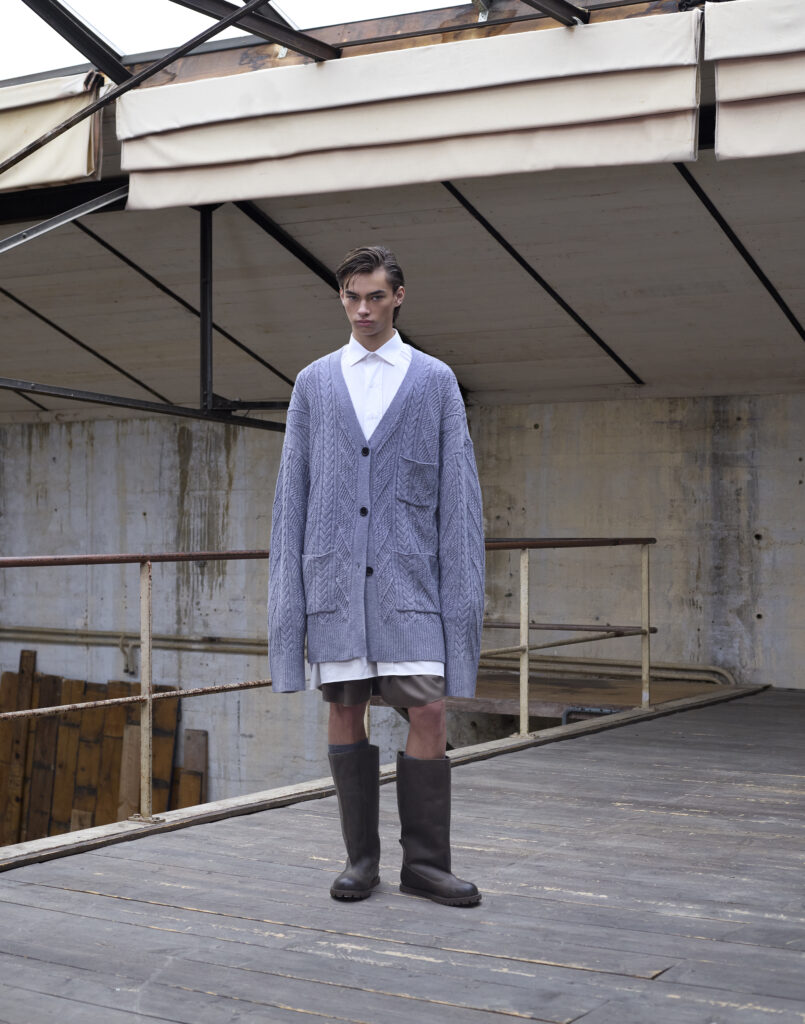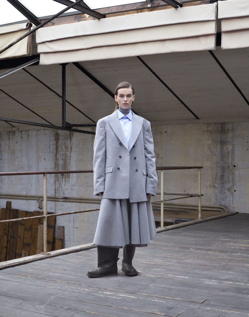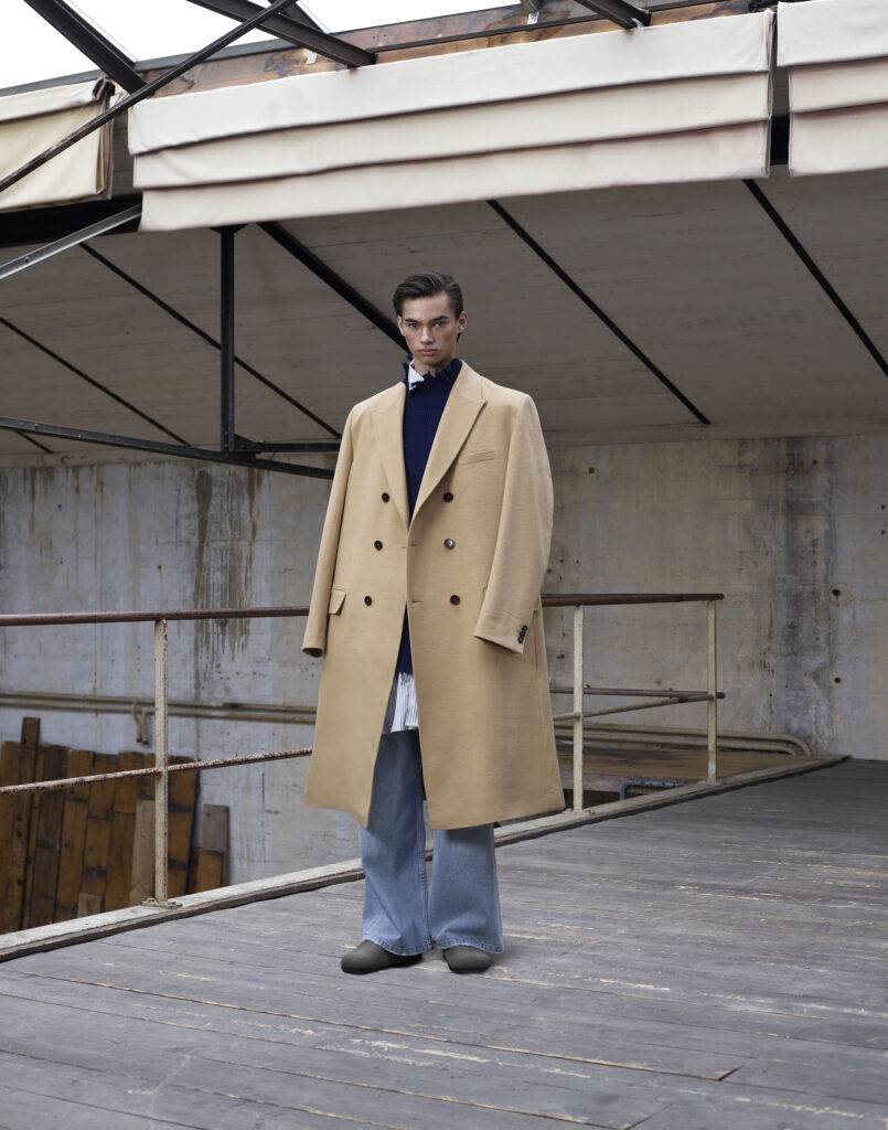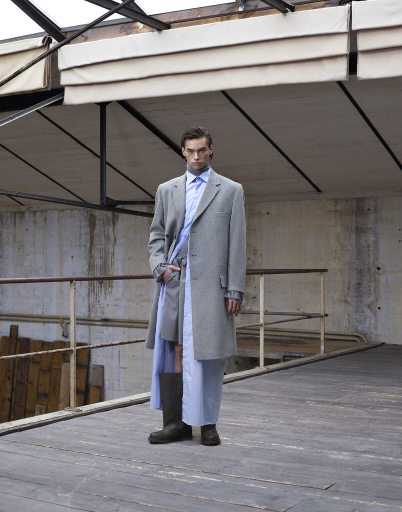 La collection « Glimmer of Hope » est caractérisée par une combinaison de styles masculins et féminins, ainsi que par une utilisation innovante de matériaux durables. Les pièces phares incluent des manteaux double-breasted en tweed recyclé, des pantalons larges en laine mérinos et des chemises en denim revisitées.