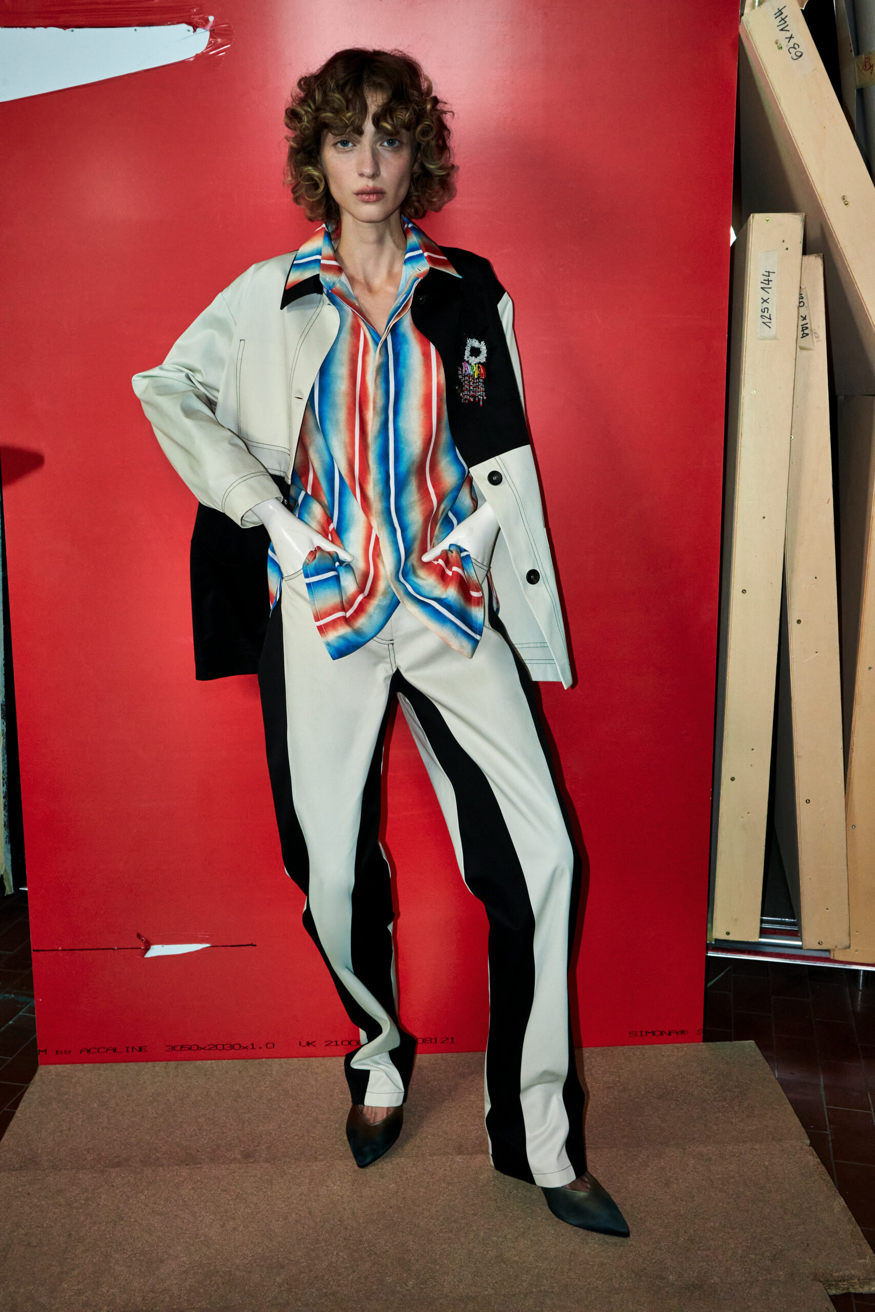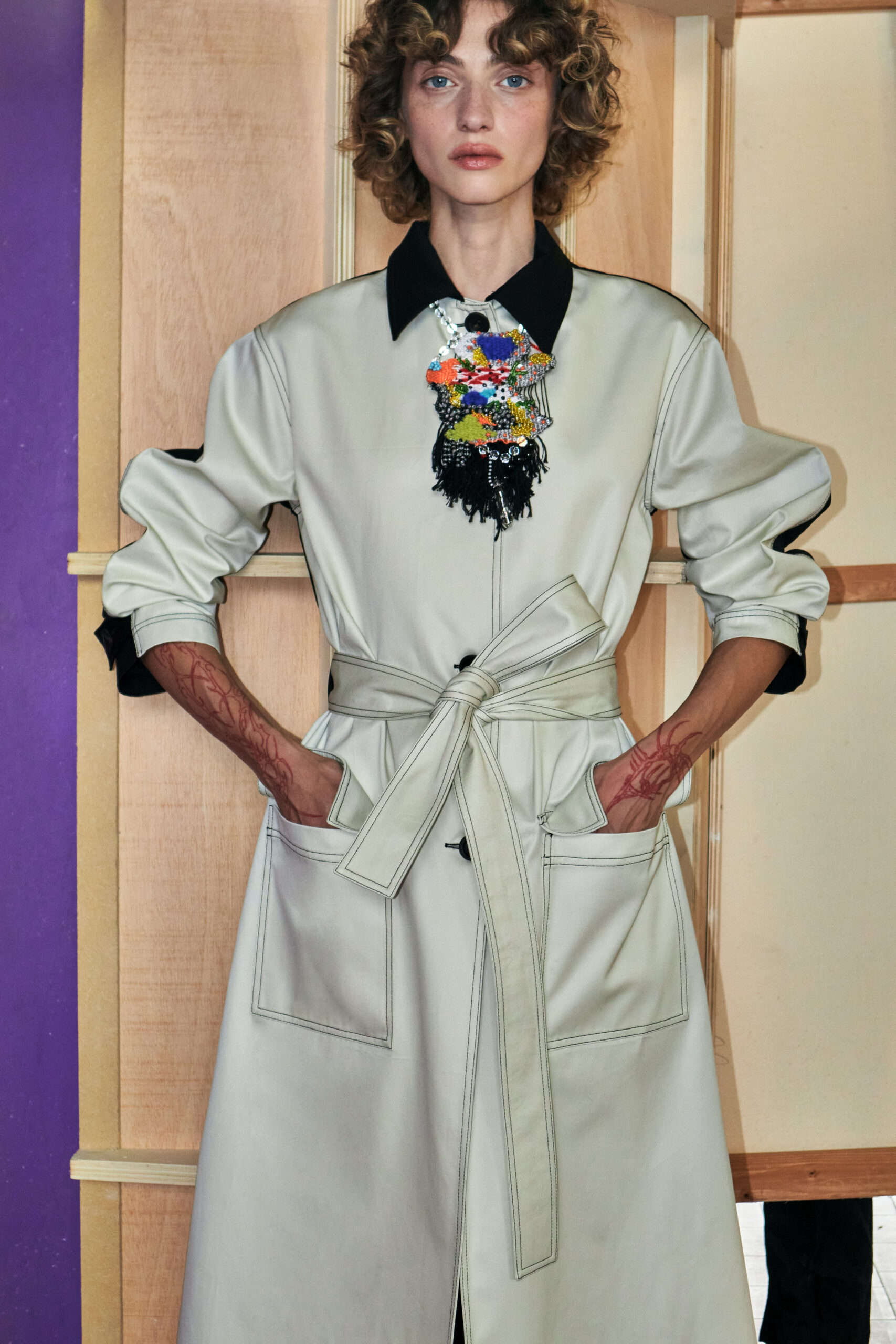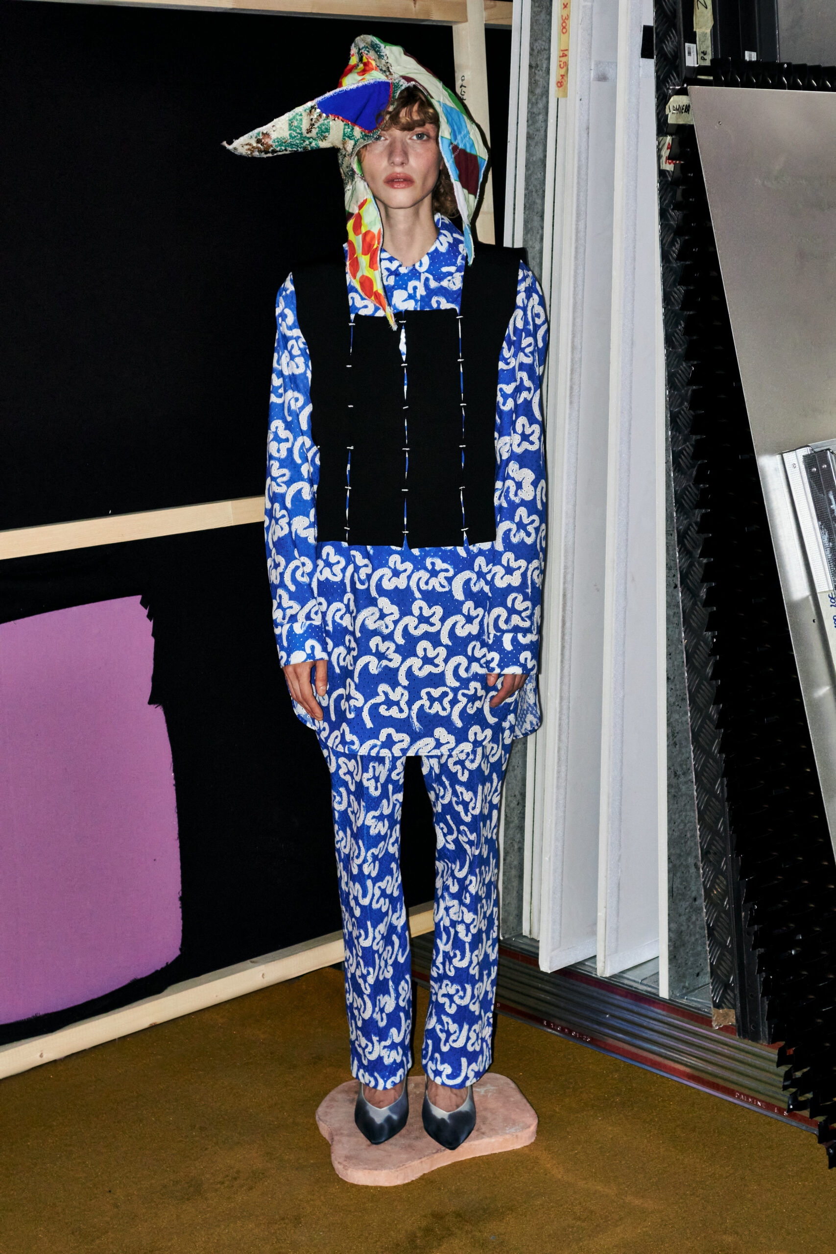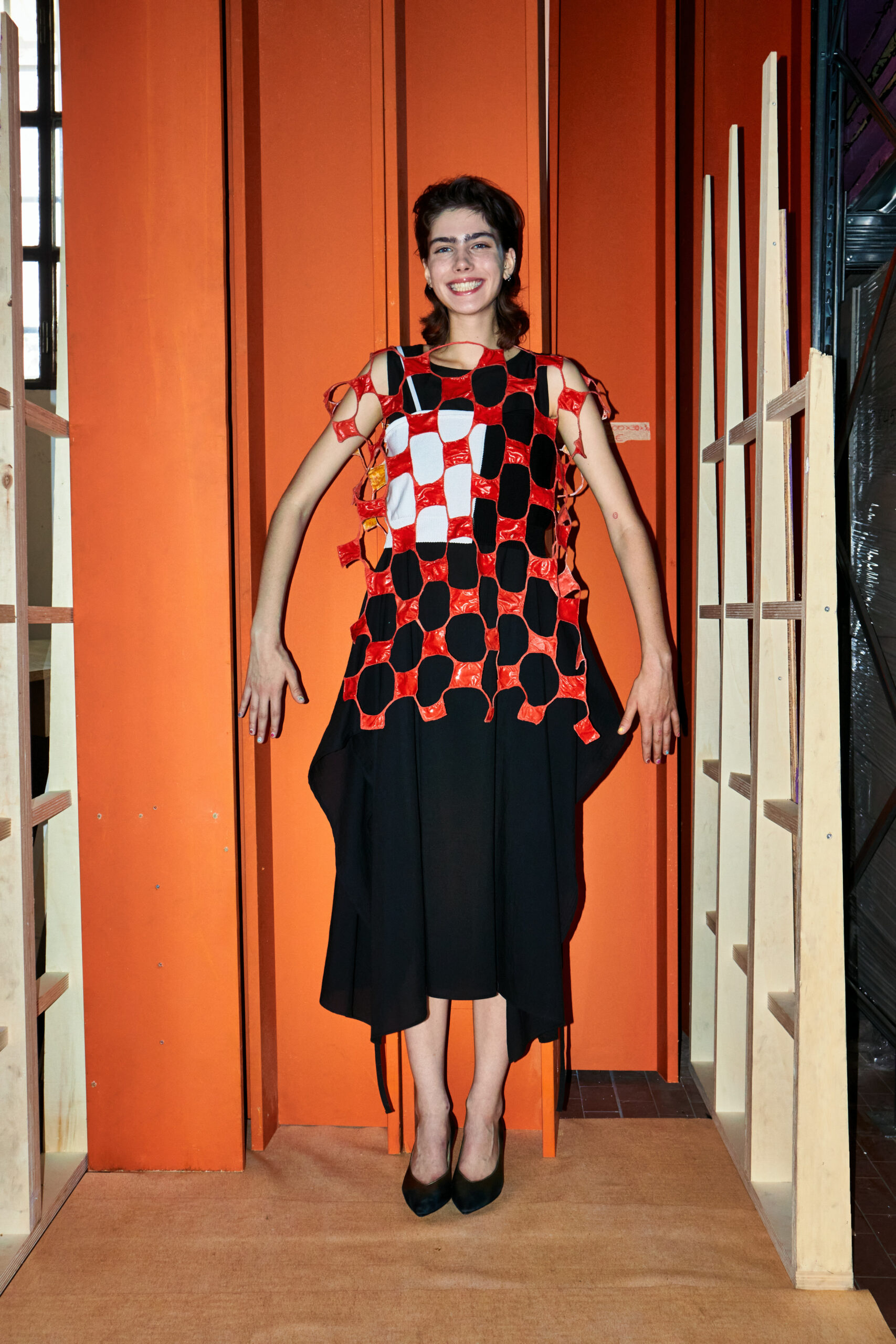 La genèse de cette collection trouve ses racines dans une visite au Spazio Meta de Milan, un vaste entrepôt regorgeant de reliques des vitrines et décors de défilés de mode passés. Les formes atypiques et les surfaces techniques colorées ont stimulé l’imagination de l’équipe, déclenchant un processus créatif spontané et artisanal.