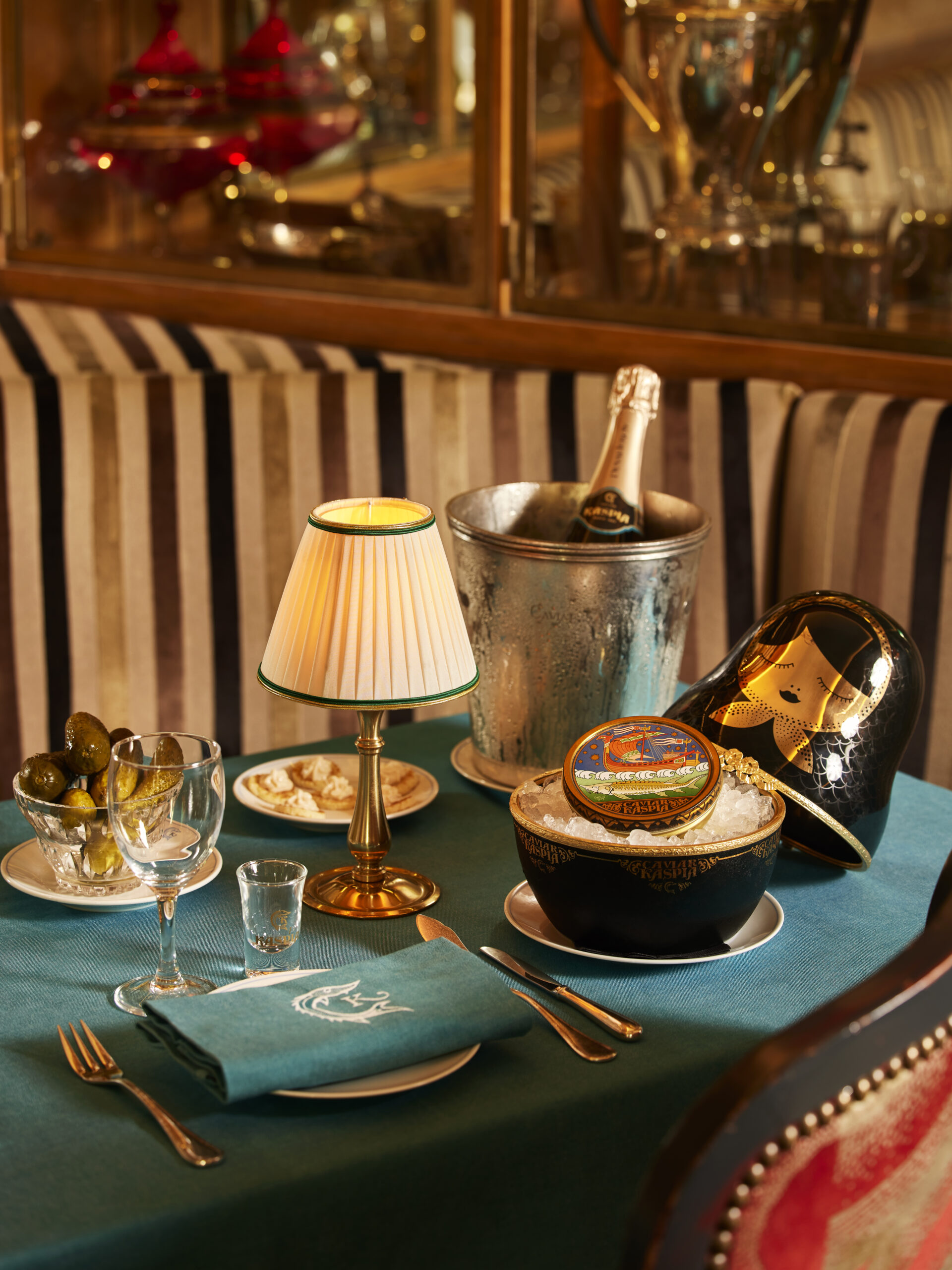 Caviar Kaspia est célèbre pour son expertise dans l’art du caviar depuis 1927, offrant une expérience de dégustation unique qui fait écho à une époque révolue. Pour cette occasion spéciale, le menu présentera les grands classiques qui ont fait la renommée de la maison : une sélection exquise de caviars, des assiettes de tarama, du saumon norvégien avec blinis maison, et la célèbre pomme de terre au caviar, accompagnée de la vodka signature de la maison.