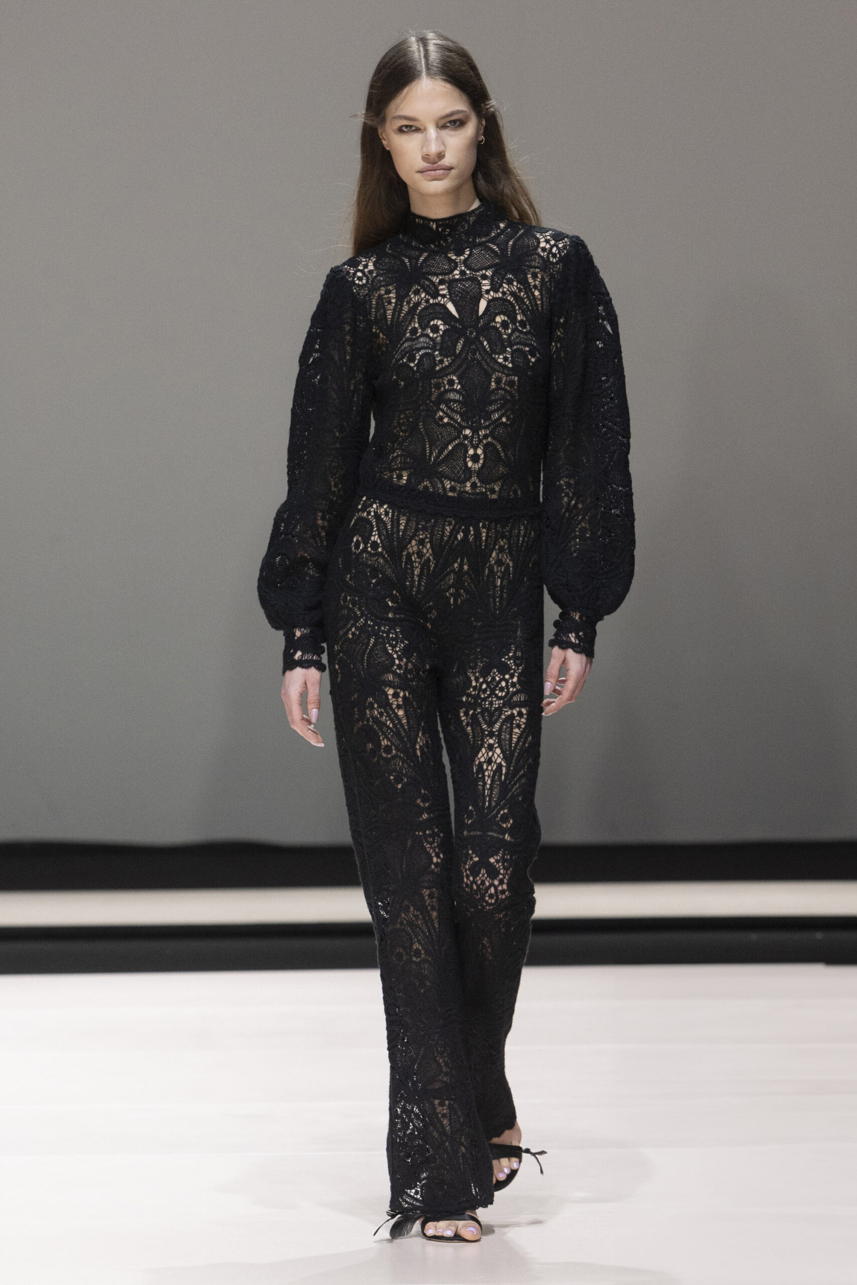 La collection s’ancre dans une réinterprétation audacieuse de la féminité, où l’élégance rencontre l’esprit rebelle. Les pièces phares, évoluant entre le romantisme victorien et le dynamisme du streetwear, incarnent une dualité captivante. Les encolures travaillées, héritage d’une époque révolue, se marient à la perfection avec des pantalons de motard et des pulls asymétriques, créant un dialogue entre le passé et le présent.
