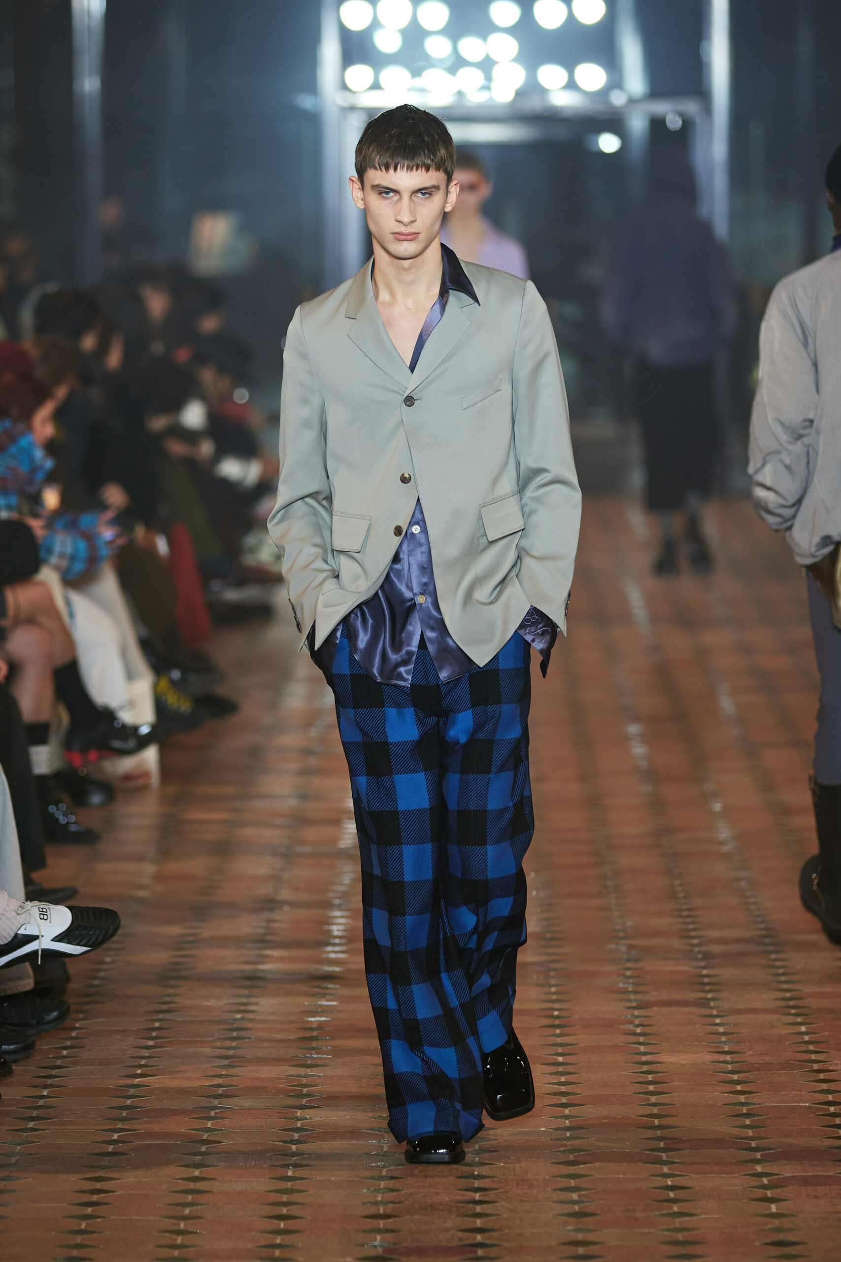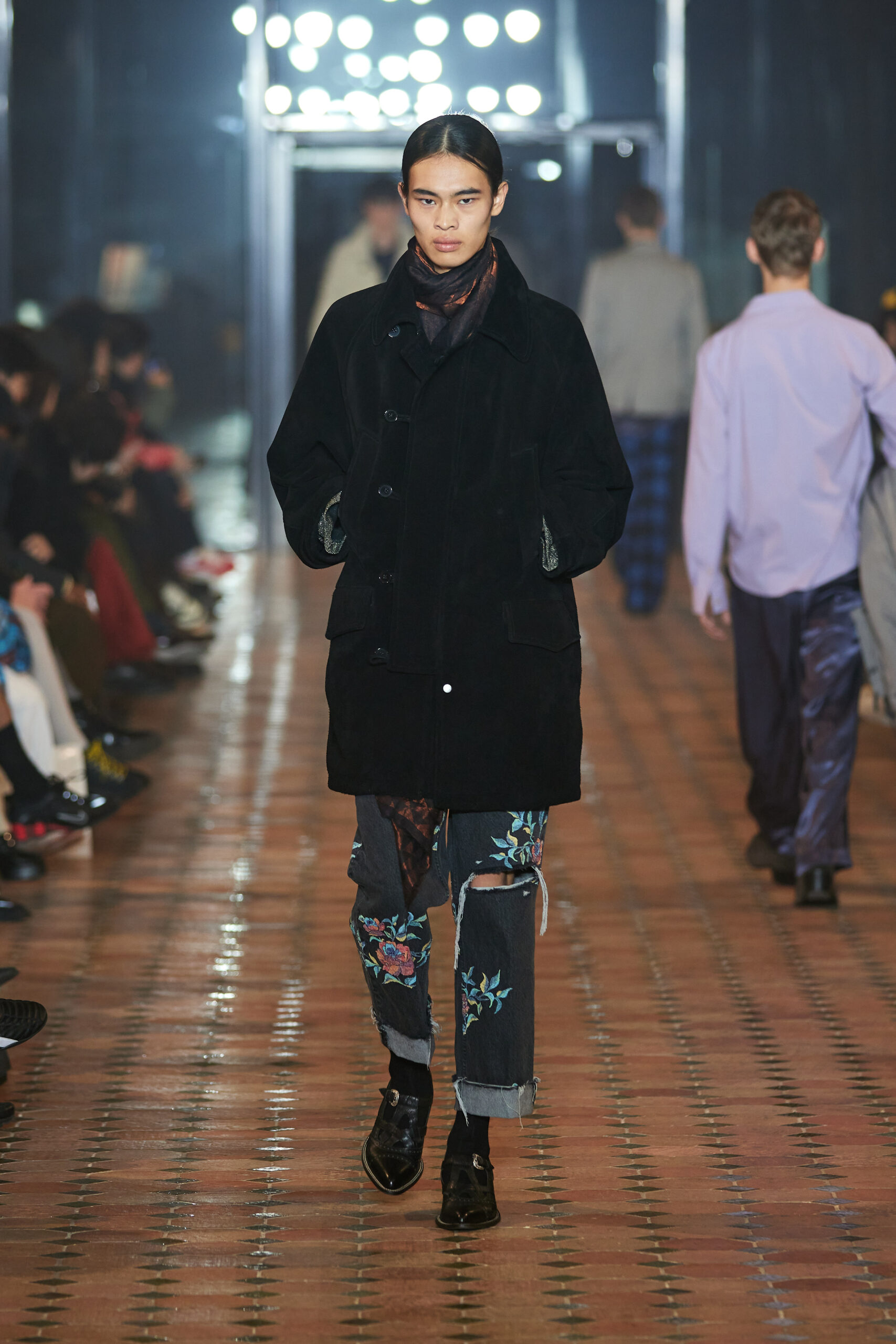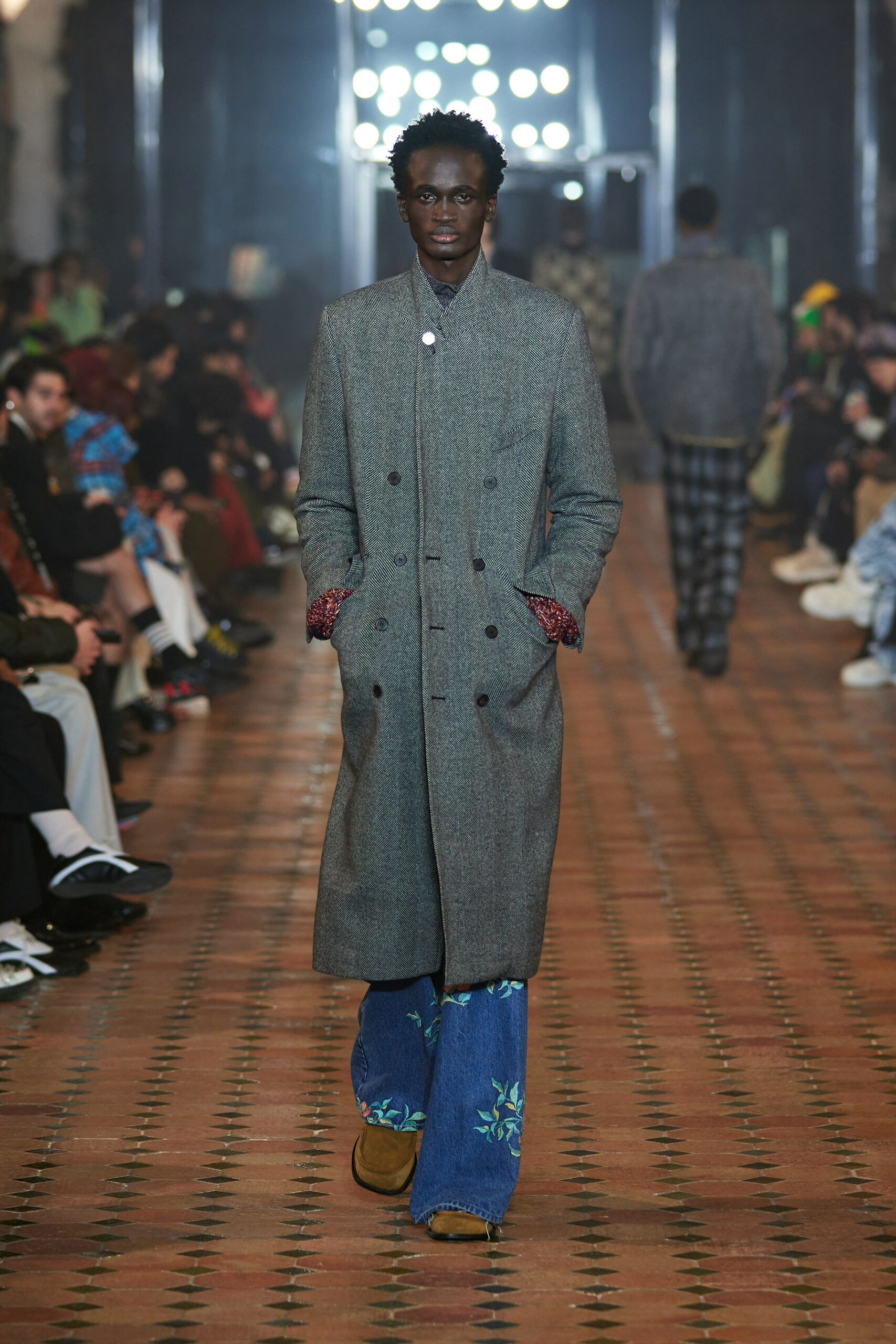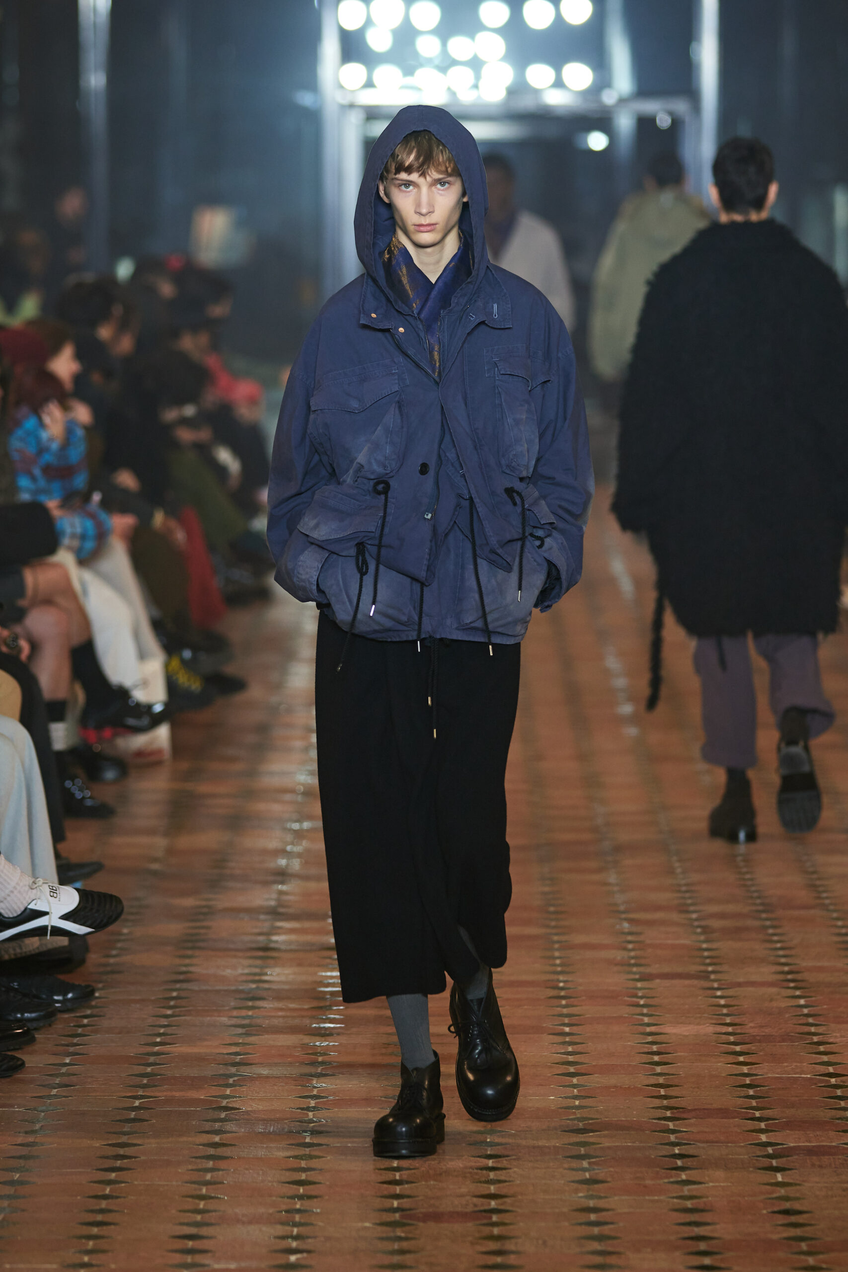 La collection s’ancre dans une introspection profonde où le designer confronte les archives, non pas comme un exercice de nostalgie, mais comme un processus de redécouverte et de réinterprétation des influences qui ont marqué son parcours. Ce voyage à travers le temps se traduit par une esthétique unique, où le passé rencontre le présent dans un dialogue parallèle, permettant à Yamagishi d’attacher métaphoriquement des « notes adhésives sur des étagères apparemment non reliées ».