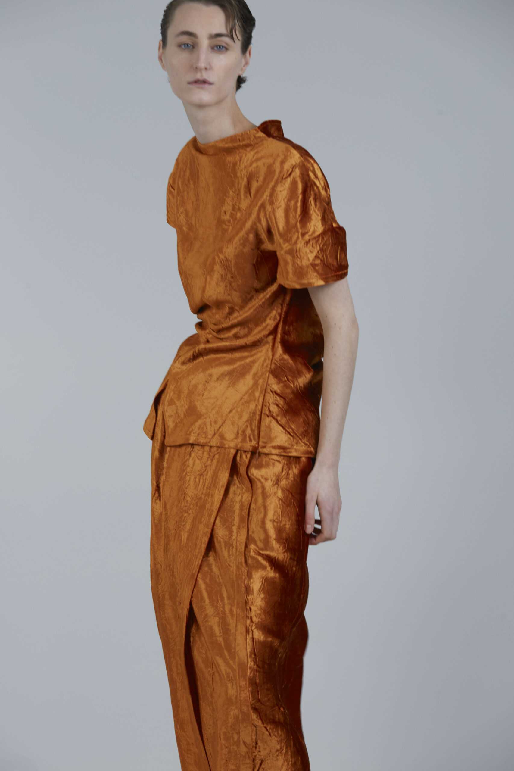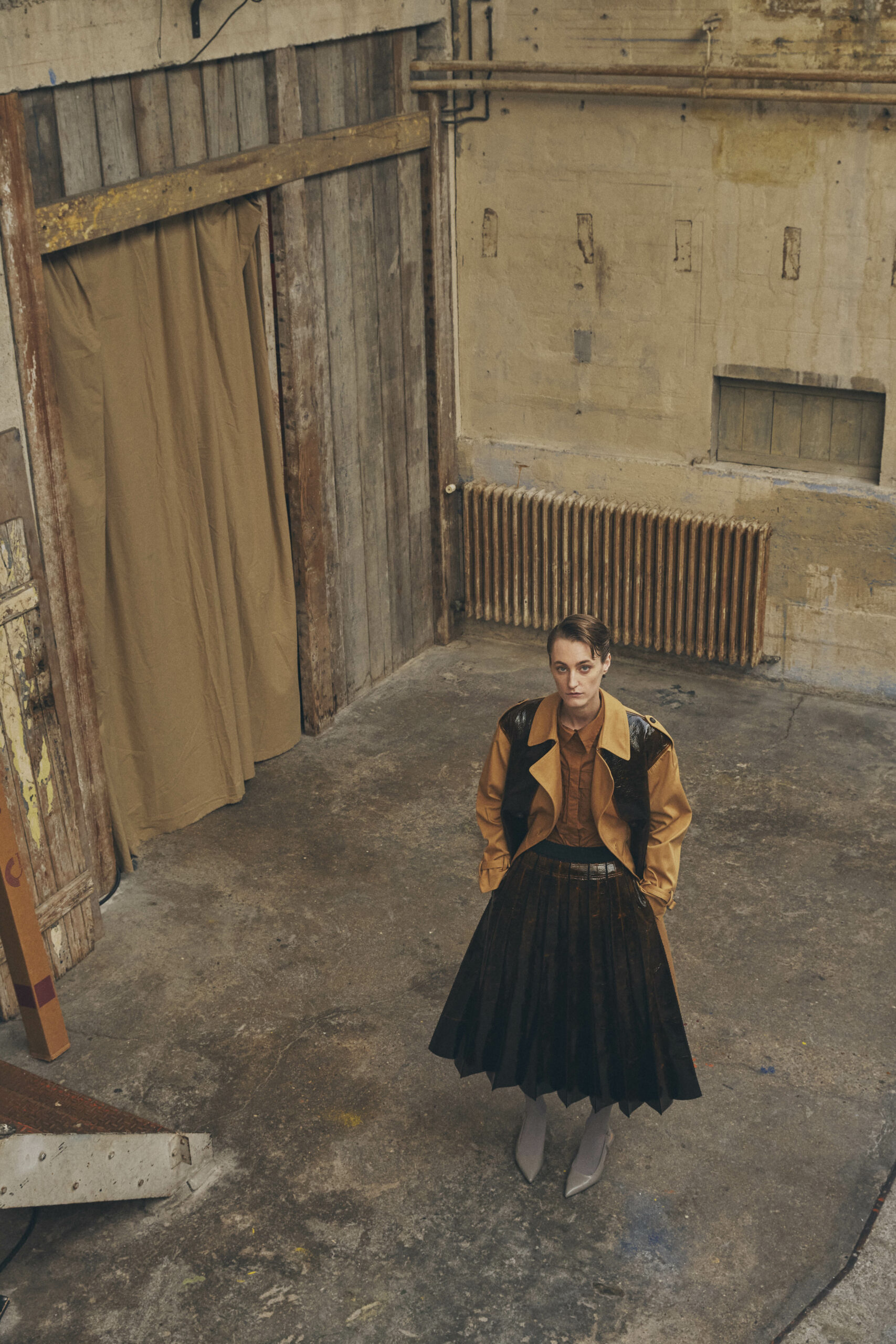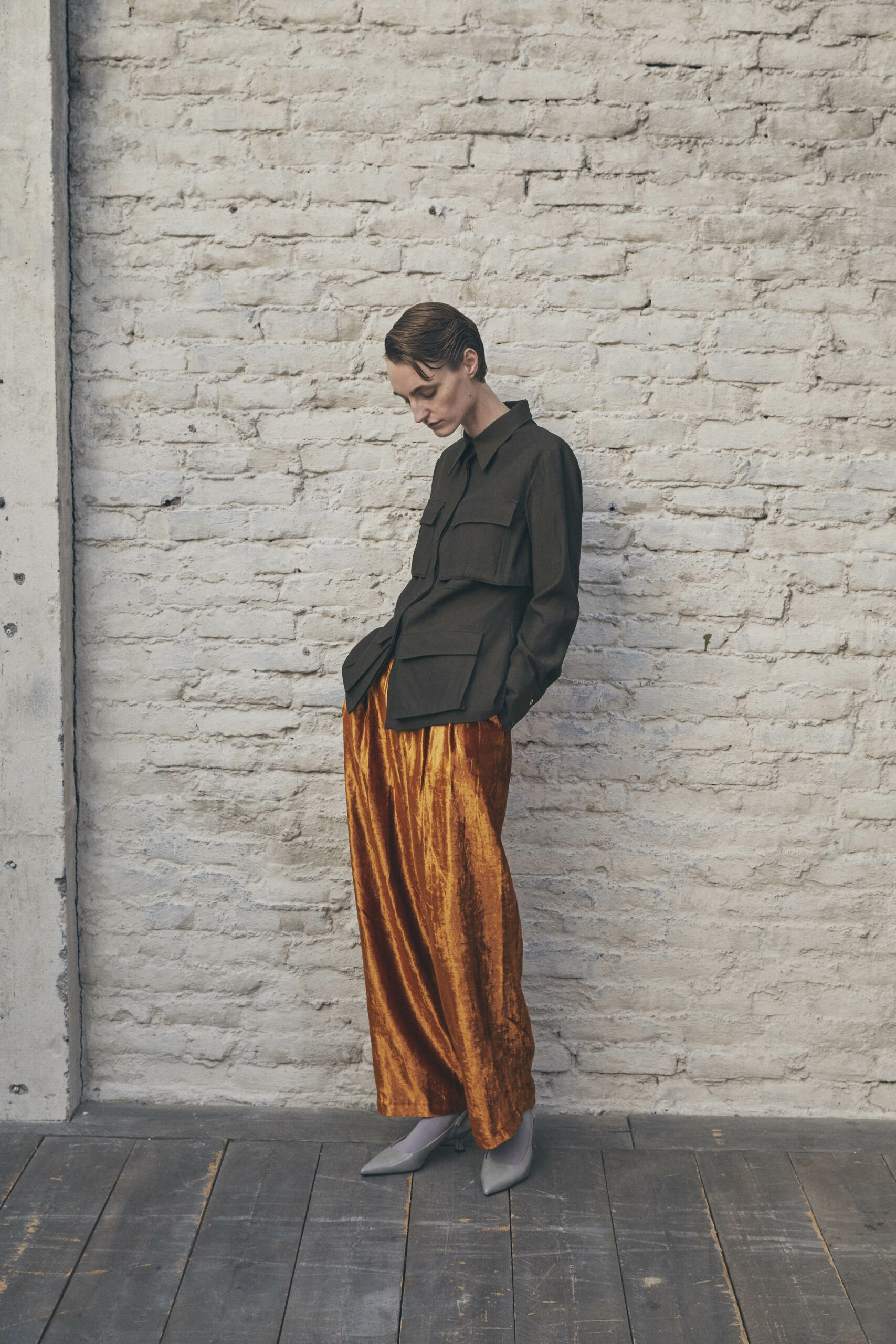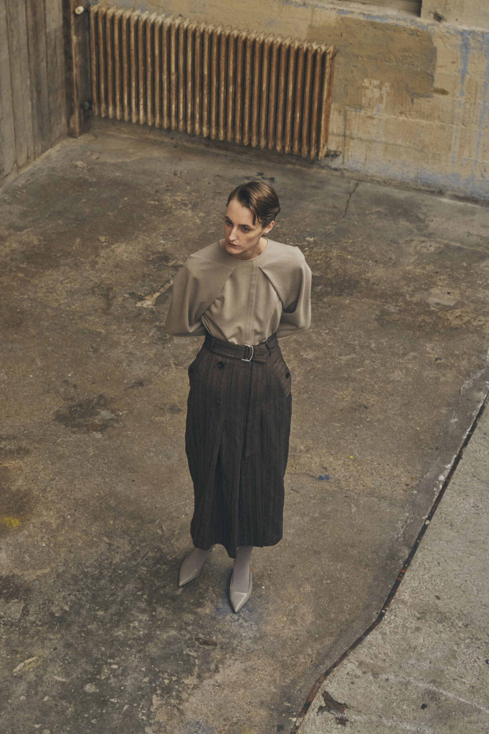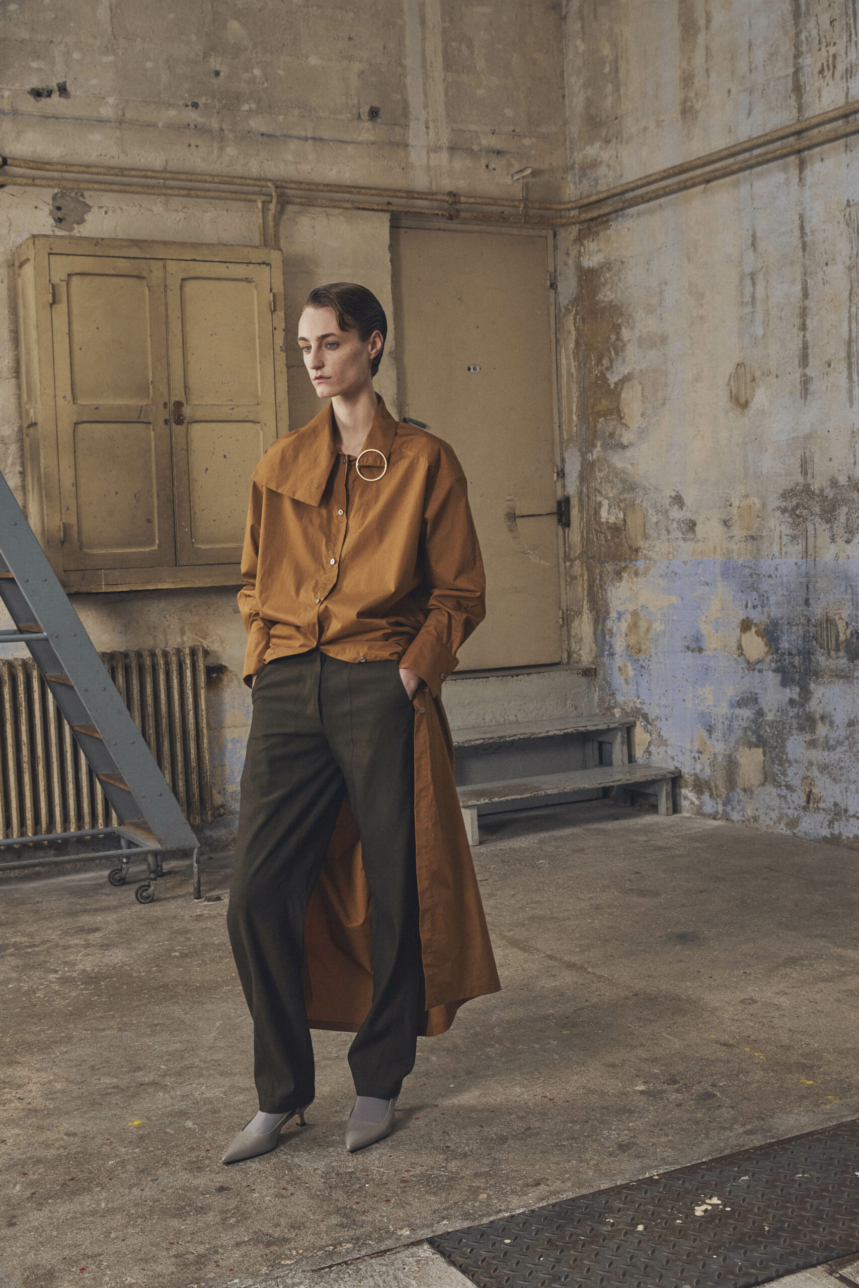 Les pièces maîtresses de la collection, telles que les robes près du corps avec des manches origami et les jupes portefeuille, fuselées ou plissées, rappellent l’élégance des années 50. Ces créations mettent en valeur la silhouette féminine tout en offrant un regard neuf sur la mode d’antan. Les manteaux et vestes, inspirés de la couture française du siècle dernier, se démarquent par leur élégance intemporelle et leur finesse de conception.