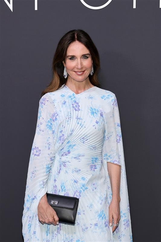 Salma Hayek-Pinault, actrice et philanthrope, a capté l’attention avec les pendants d’oreilles Serpent Bohème sertis d’aquaprase et pavés de diamants sur or blanc. Elle portait également un bracelet Art Déco en diamants et platine datant de 1930, ainsi qu’une bague Perspectives, sertie d’un béryl vert taille coussin de 11,50 carats, illustrant la riche histoire et l’innovation de la collection Privée Boucheron.