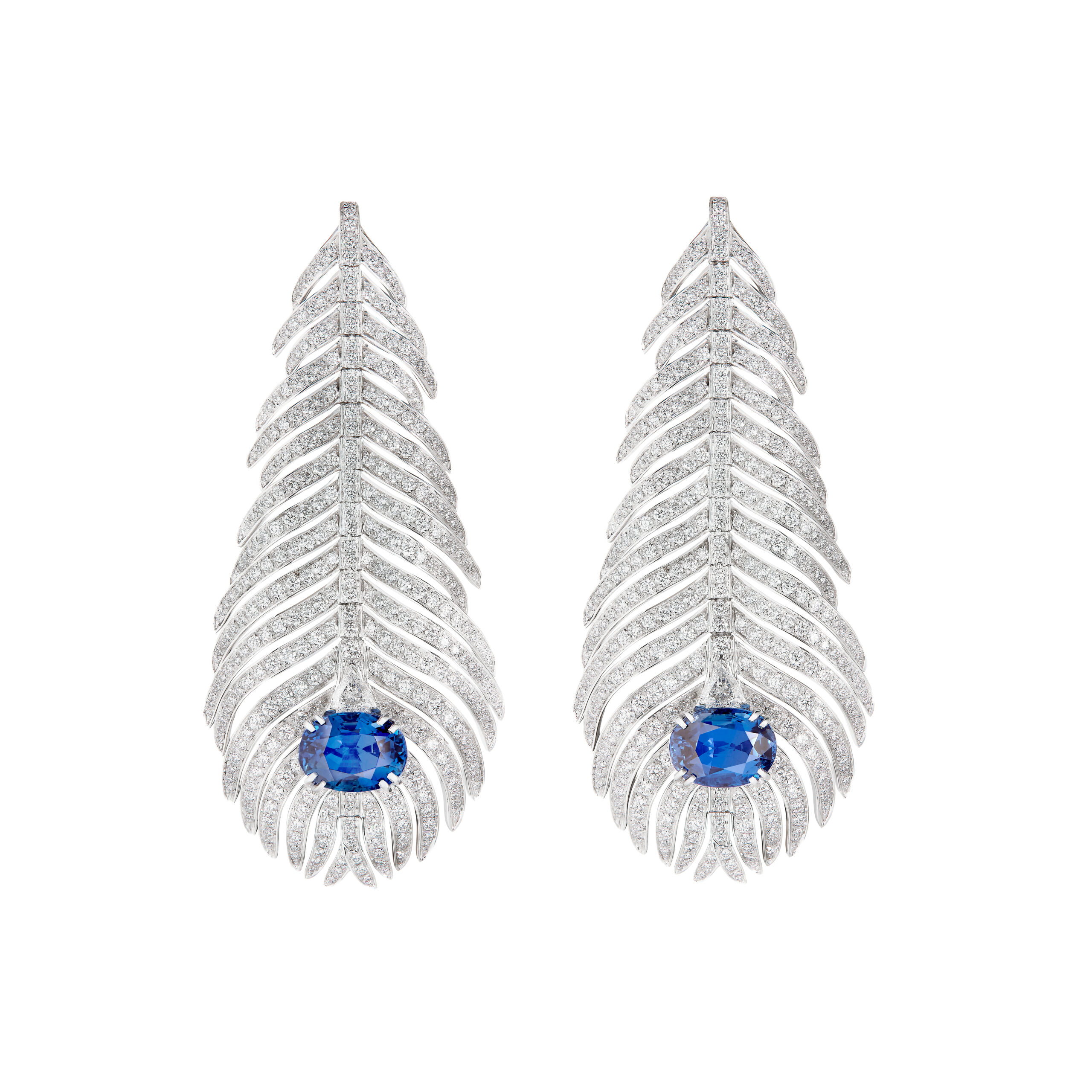Elsa Zylberstein a brillé avec les pendants d’oreilles Plume de Paon sertis de saphirs et pavés de diamants sur or blanc, accompagnés de la bague Plume de Paon petit modèle, soulignant la beauté naturelle et l’art délicat des créations Boucheron.