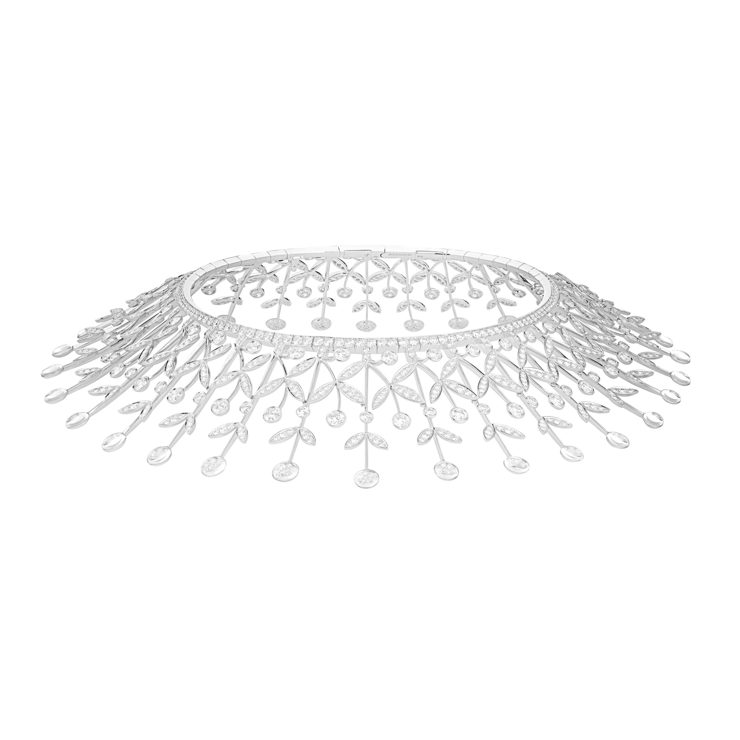 Mila Al Zahrani a également eu l’honneur de porter en avant-première un collier de la future collection Carte Blanche, mettant en avant le design avant-gardiste et l’expertise de Boucheron en matière de haute joaillerie.