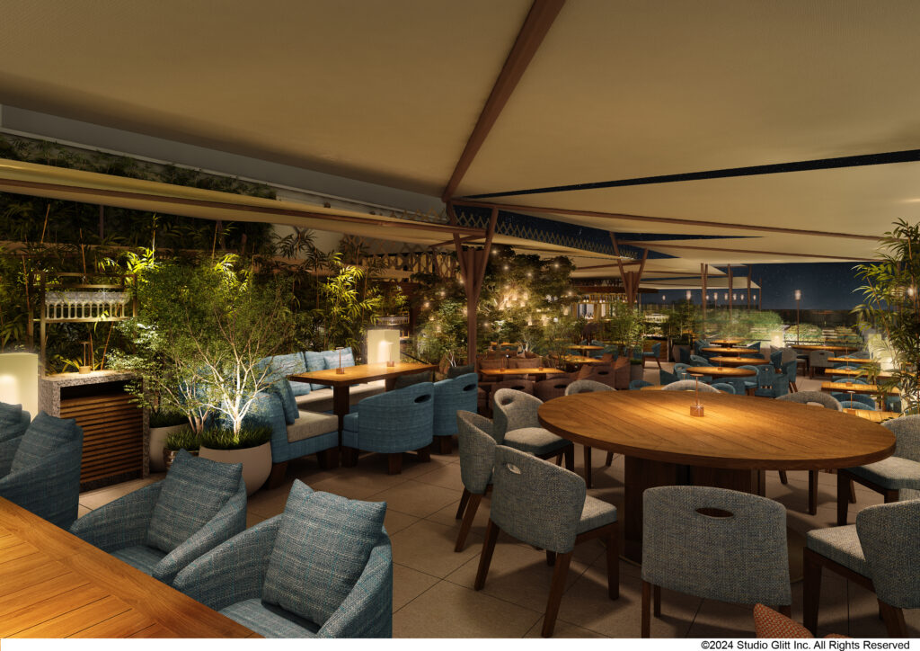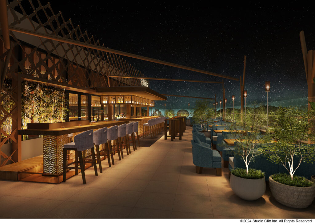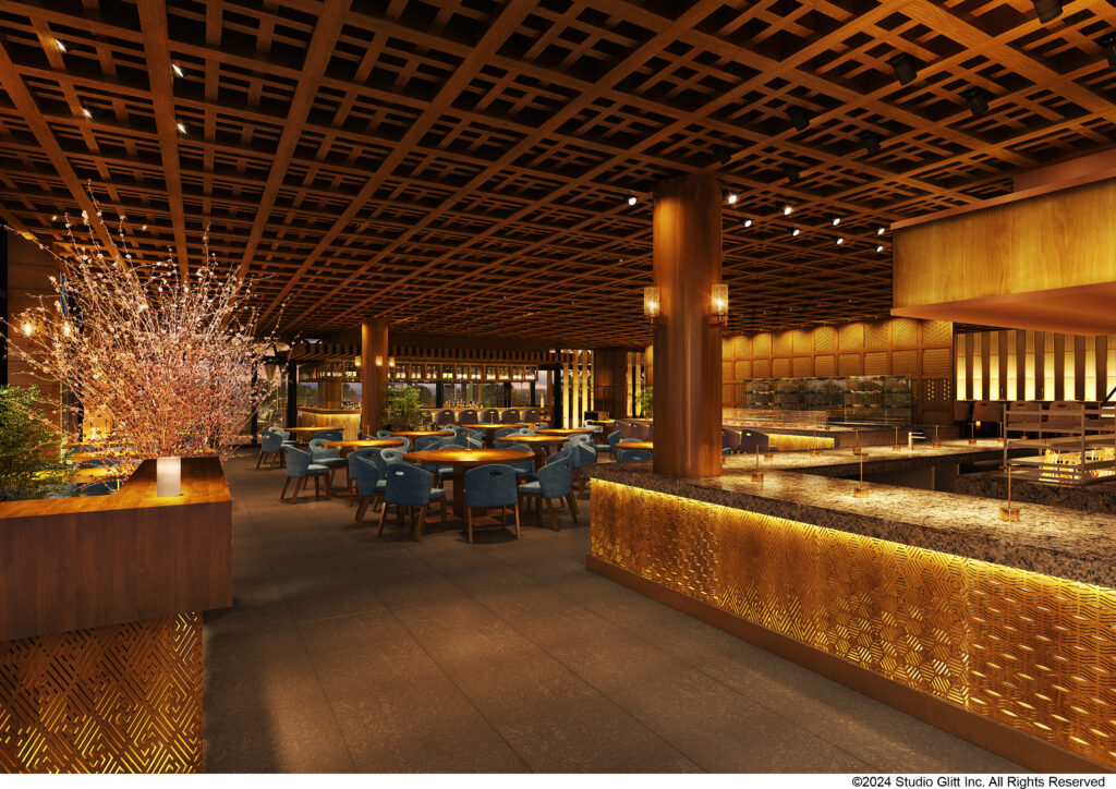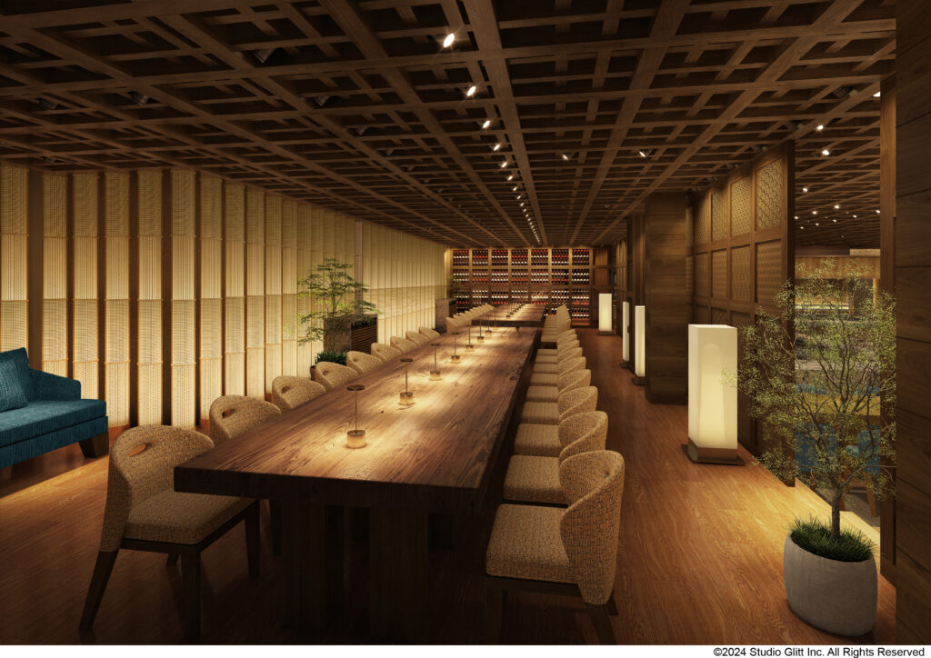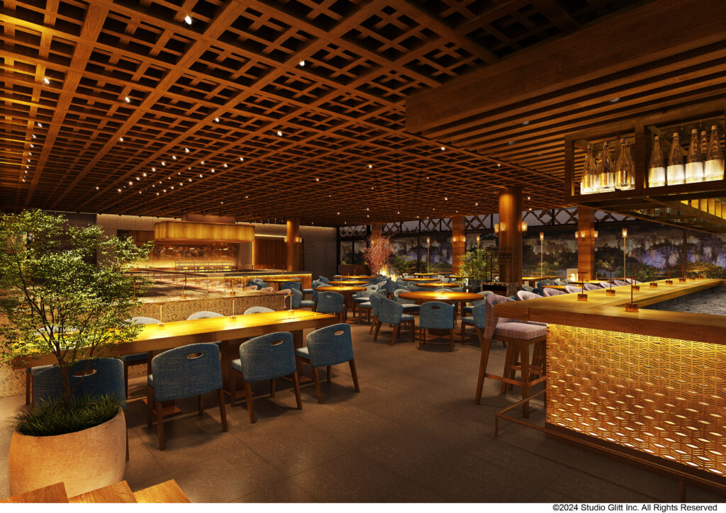 Le design de Zuma Cannes met en avant l’harmonie des éléments naturels, utilisant des tables de pierre et du bois pour créer un cadre classique, épuré et intemporel. La grande terrasse, aménagée selon la technique japonaise du “Shakkei” (ou “paysage emprunté”), offre une expérience immersive où les frontières entre l’intérieur et l’extérieur se confondent. L’entrée du restaurant, par un tunnel au plafond bas, permet aux invités de laisser derrière eux leur quotidien pour entrer dans un nouvel univers.