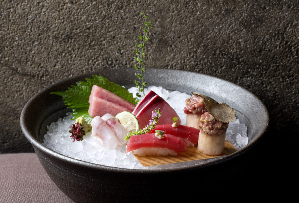Le menu de Zuma Cannes propose des plats emblématiques tels que l’Otoro tranché servi avec du dashi de tomate fumée et du caviar osciètre, le toro maki spécial et les croquettes de bar chiliennes avec une vinaigrette au gingembre et au piment. Le tartare de bœuf au poivre de Sansho, au myoga et à la truffe noire, préparé à la table des convives, figure parmi les plats signatures exclusifs à Zuma Cannes. Pour le dessert, la pavlova aux fruits exotiques, chantilly fleur de cerisier et sorbet à la mangue est un véritable délice.