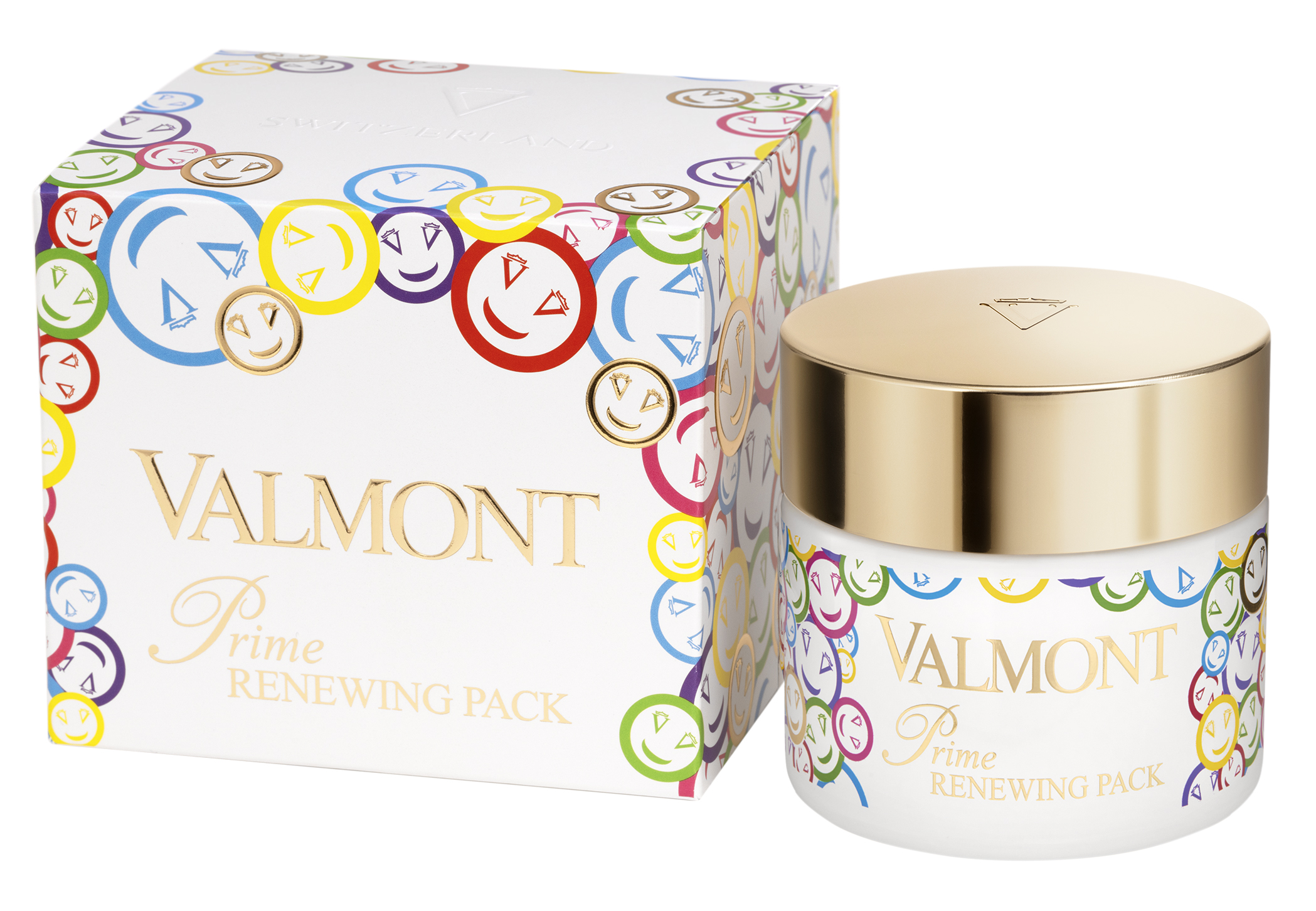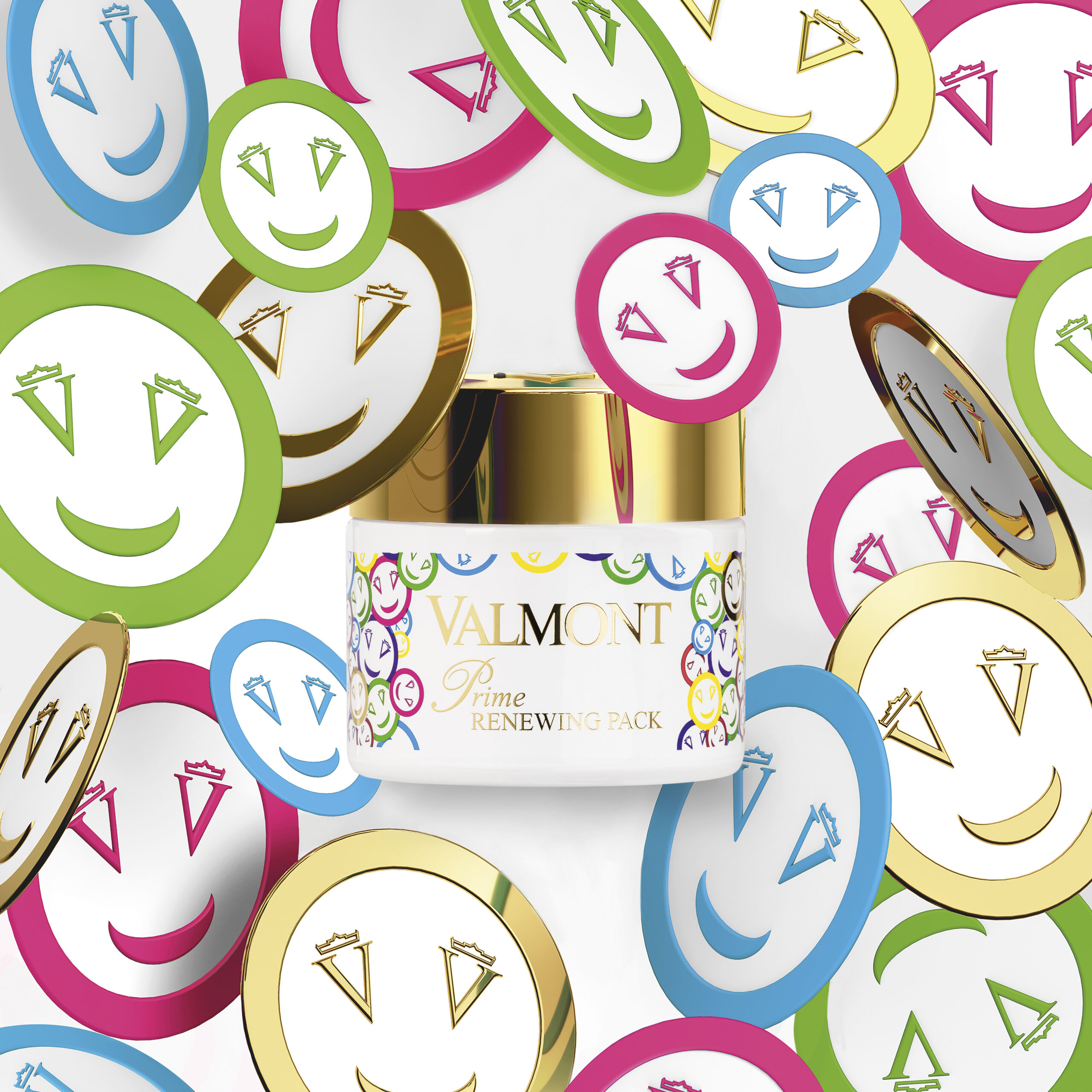 Cette année, Valmont célèbre les 40 ans de son soin signature, le Prime Renewing Pack, surnommé « Happy Mask » par ses clientes. Pour marquer cet anniversaire, Valmont lance une édition limitée du masque, avec un design artistique et coloré créé par Didier Guillon, interprétant le sourire.