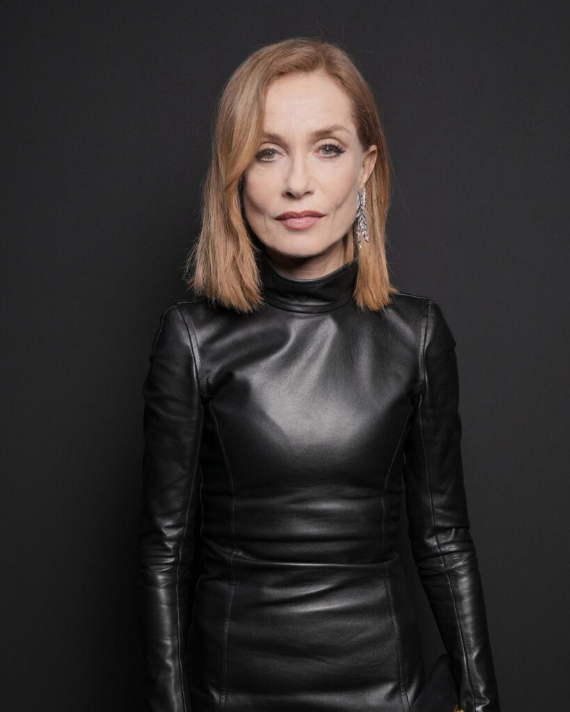 Isabelle Huppert portait les pendants d’oreilles Broderies de la collection Haute Joaillerie Histoire de Style, The Power of Couture, pavés de diamants sur or blanc, ainsi que la bague En Passant de la collection Haute Joaillerie Contemplation, pavée de diamants sur or blanc.
