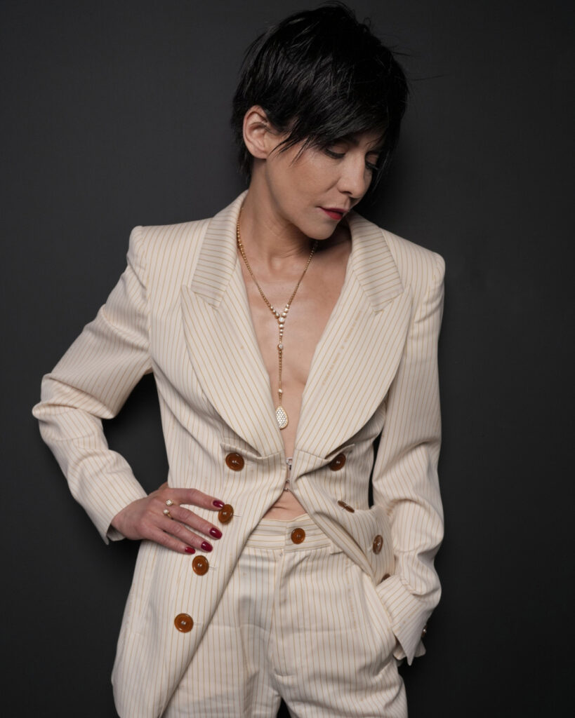 Judith Godrèche portait la boucle d’oreille asymétrique New Padma de la collection Haute Joaillerie New Maharajahs, pavée de diamants sur or blanc avec nacre, ainsi que la bague Serpent Bohème large motif, pavée de diamants sur or blanc.