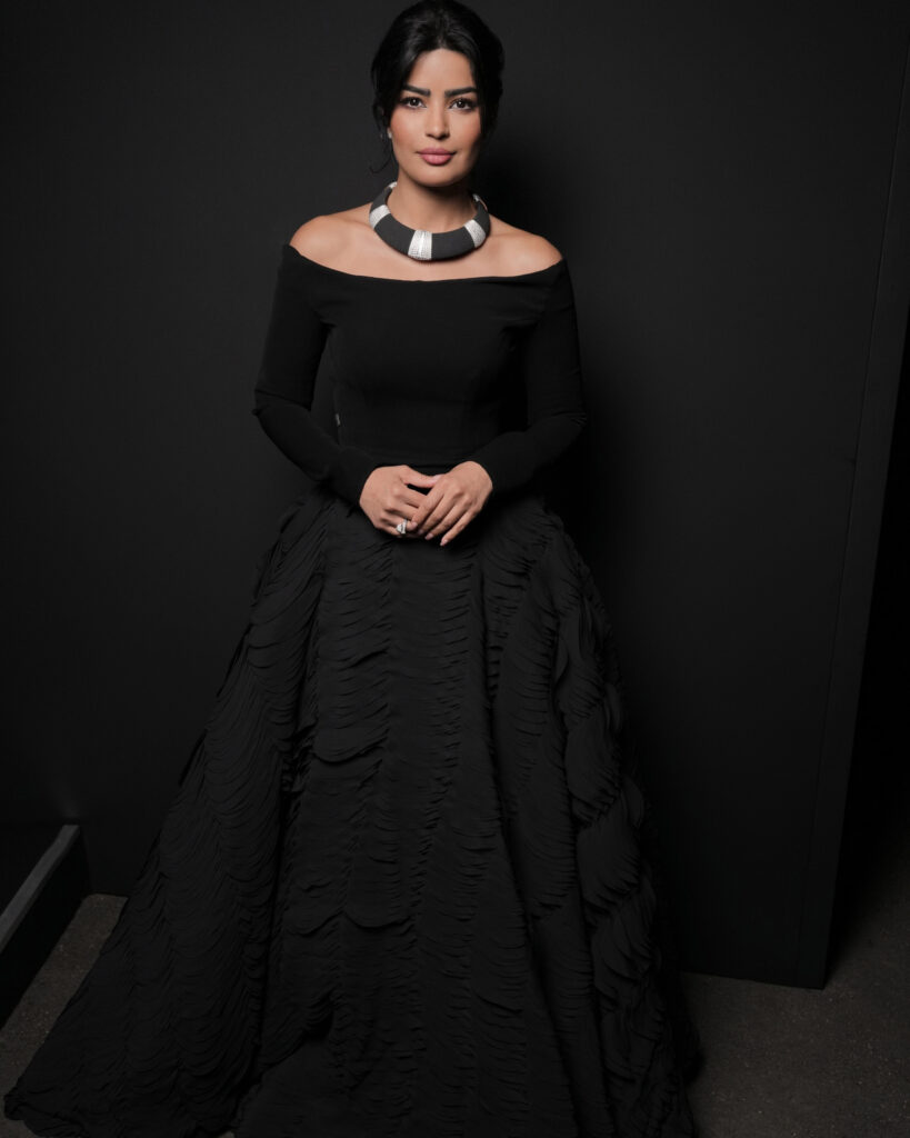 Mila Al Zahrani était parée d’un collier de la prochaine collection Carte Blanche, également en avant-première.