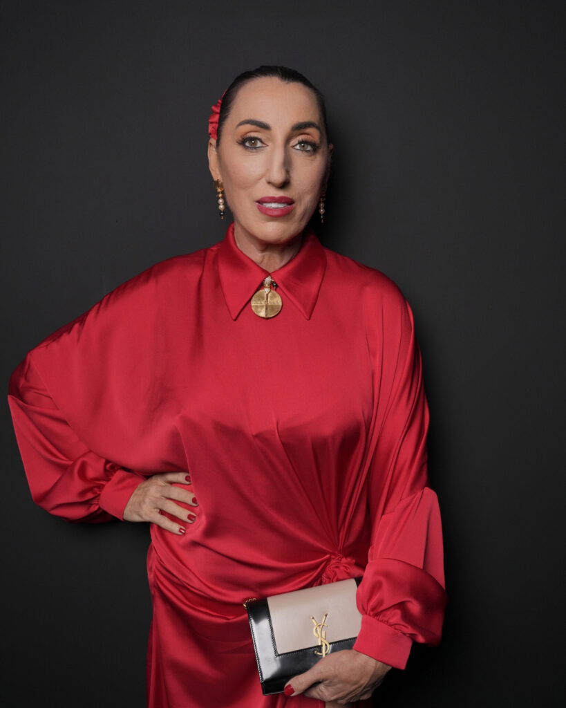 Rossy de Palma scintillait avec le collier et les boucles d’oreilles Exotic en or jaune, perles, hématite, rubis et diamant, datant de 1982 de la collection Privée Boucheron.