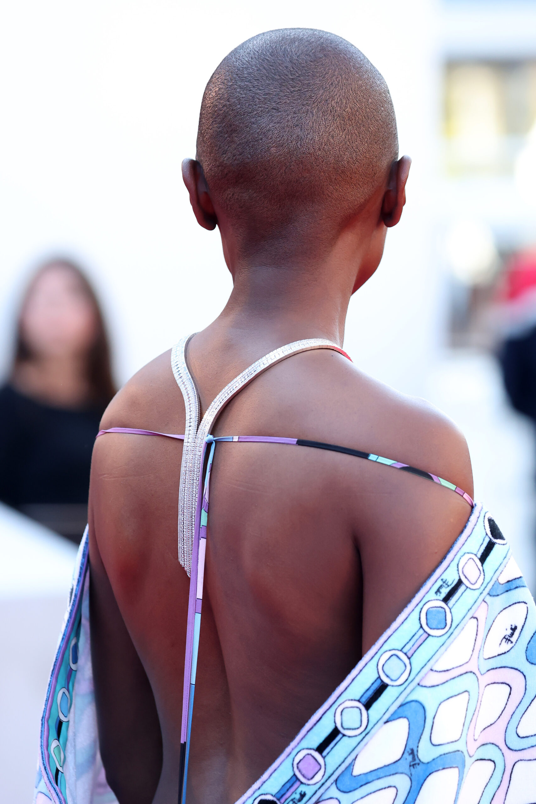 Zoé Saldana, toujours élégante, portait le collier Palmettes en or jaune de 1945 et le bangle Serpent en or jaune, corail et chrysoprase de 1972. Ces pièces historiques de la collection Privée Boucheron ajoutaient une note de glamour vintage à son apparence moderne.