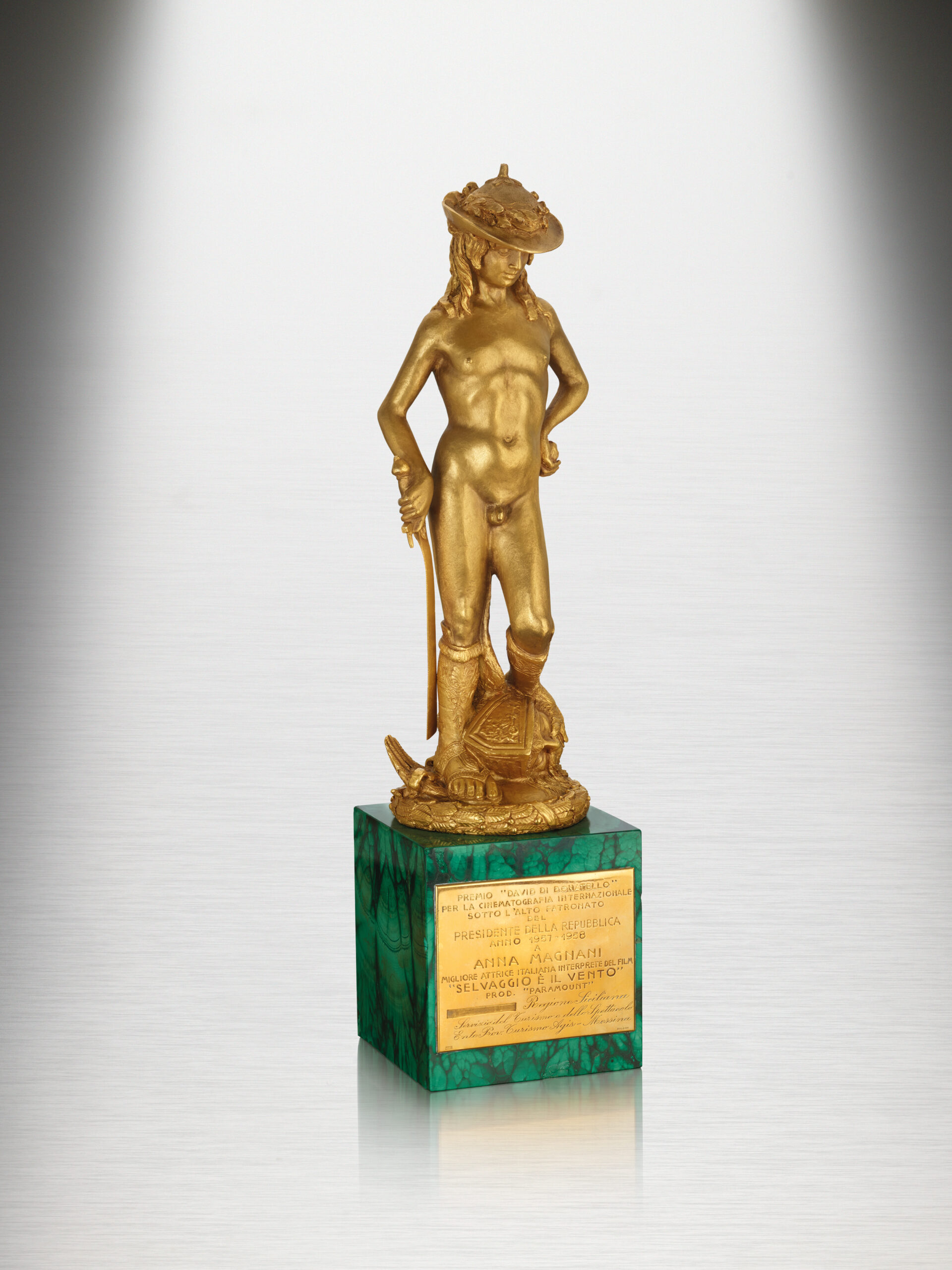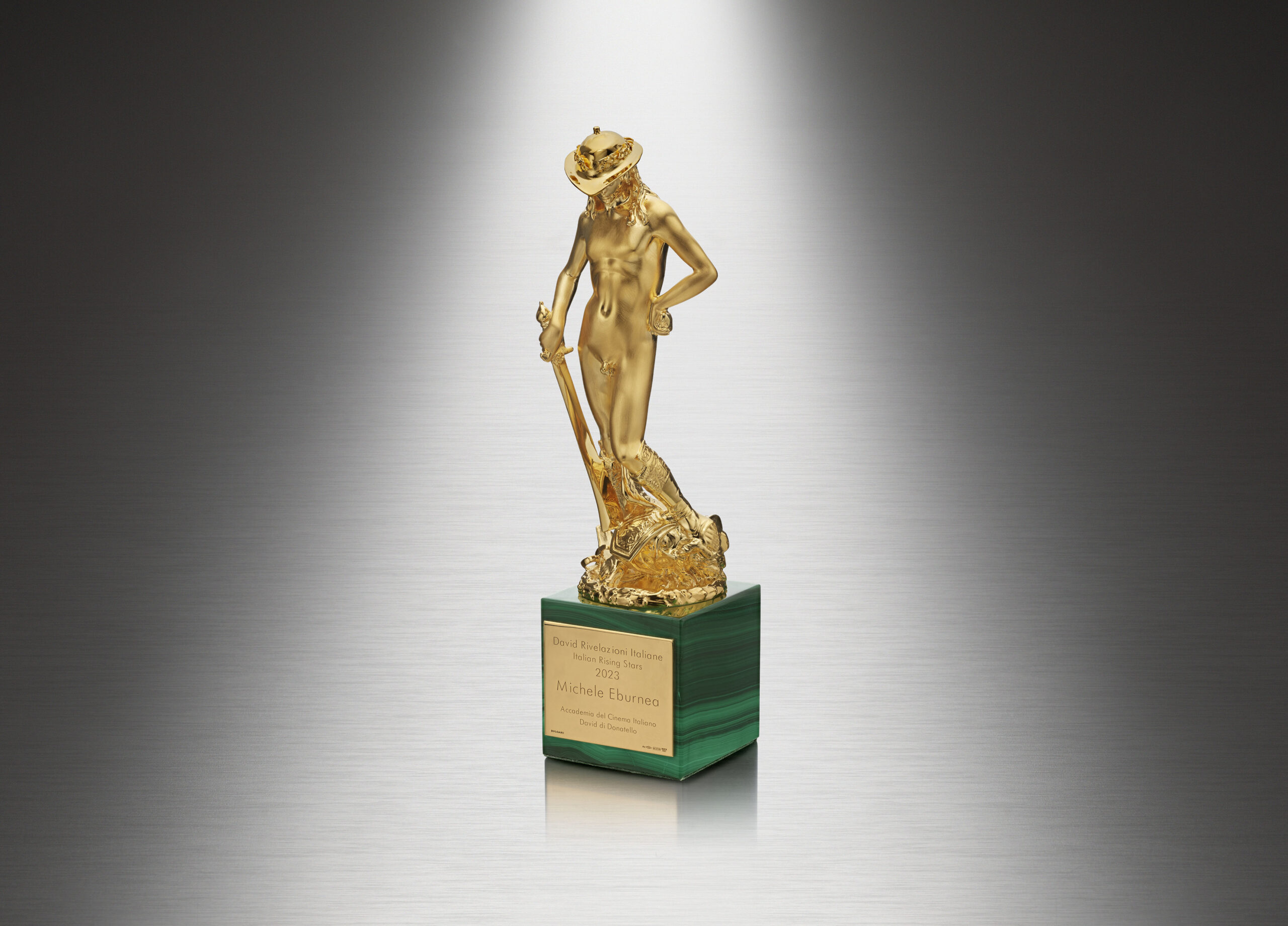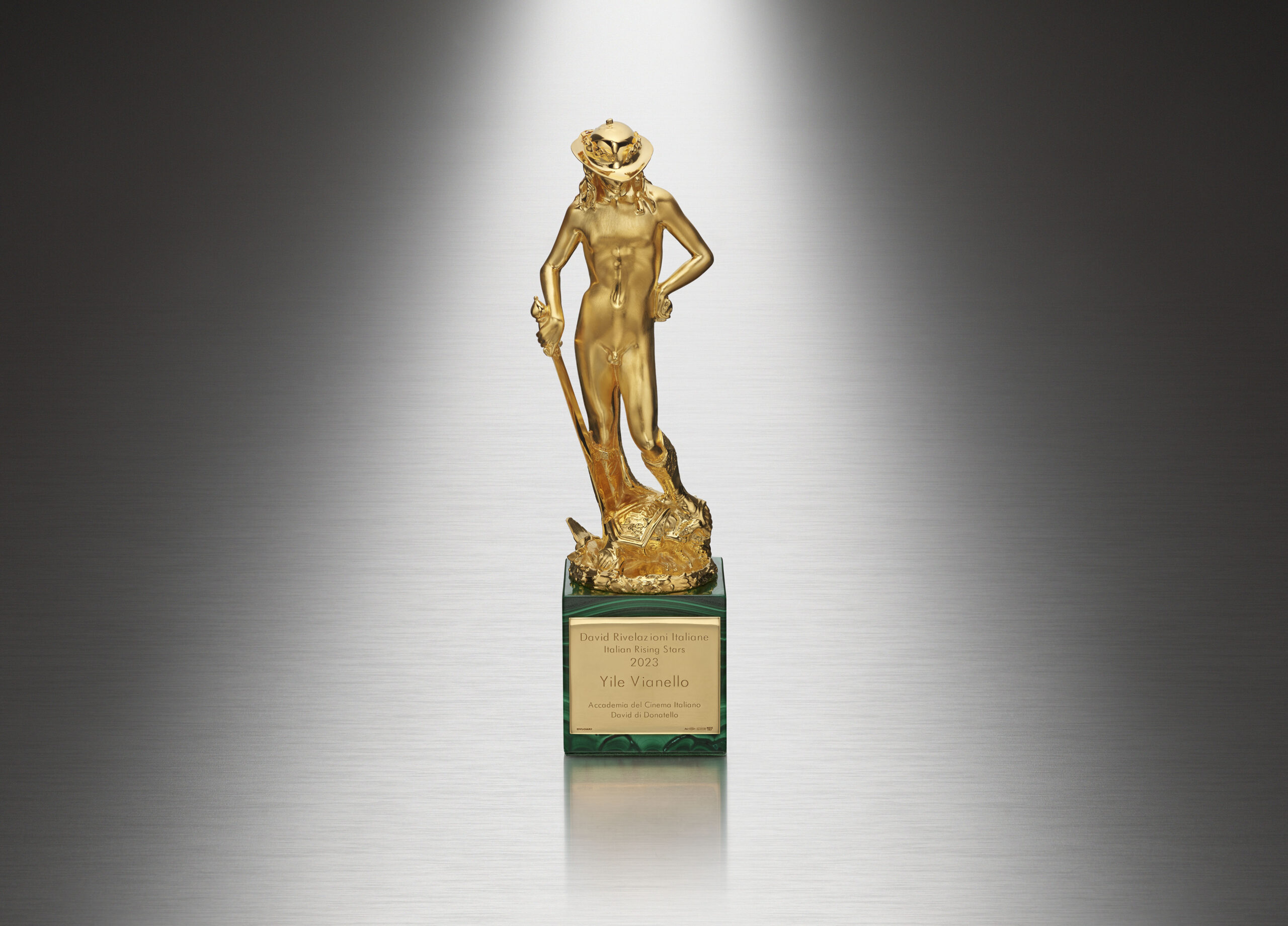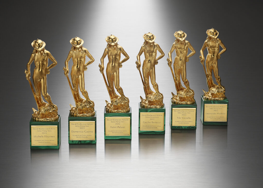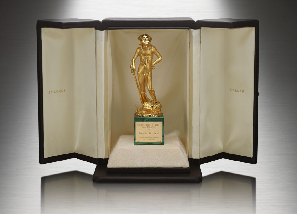 Pour la première édition de ces prix, Bulgari a conçu six statuettes en argent plaqué or, inspirées de la célèbre sculpture en bronze de Donatello, conservée au musée national du Bargello à Florence. Cette initiative souligne l’engagement de Bulgari à promouvoir les futures étoiles du cinéma italien.