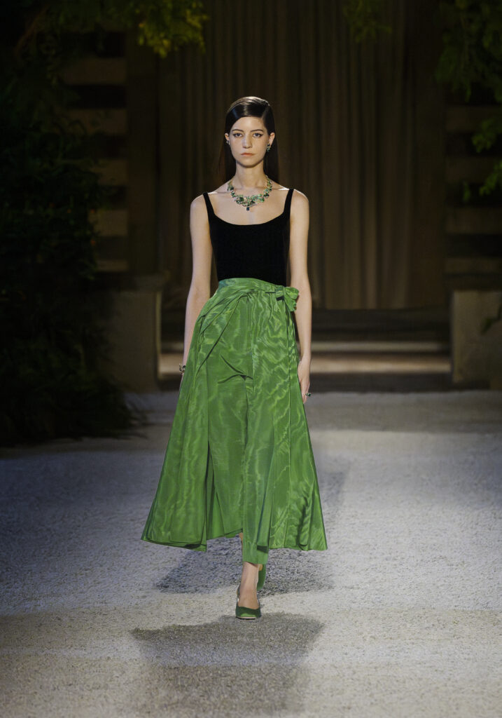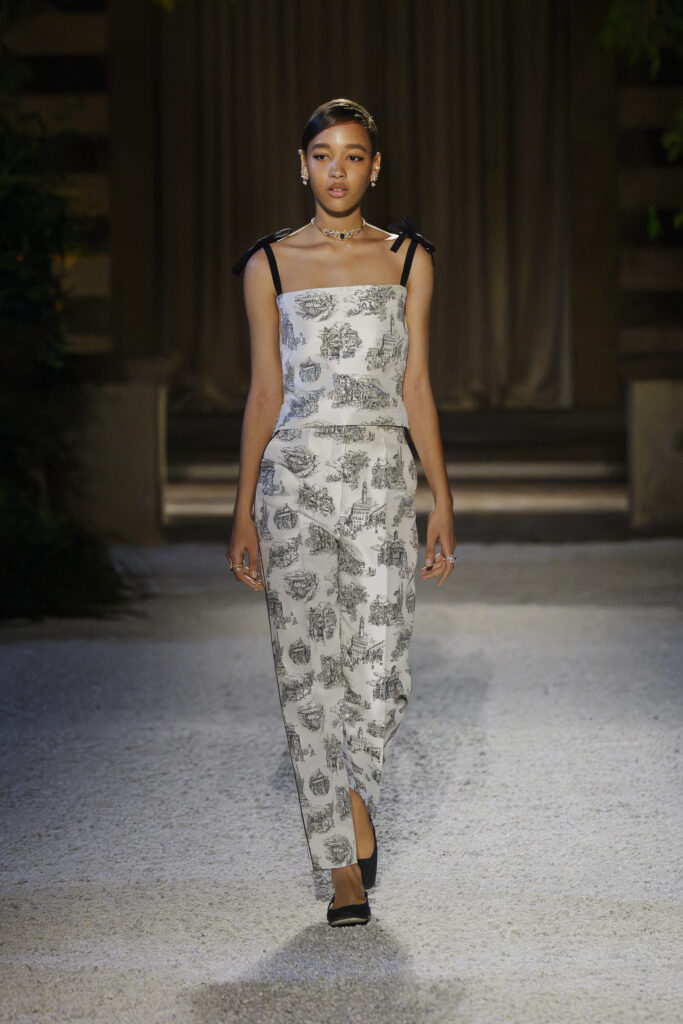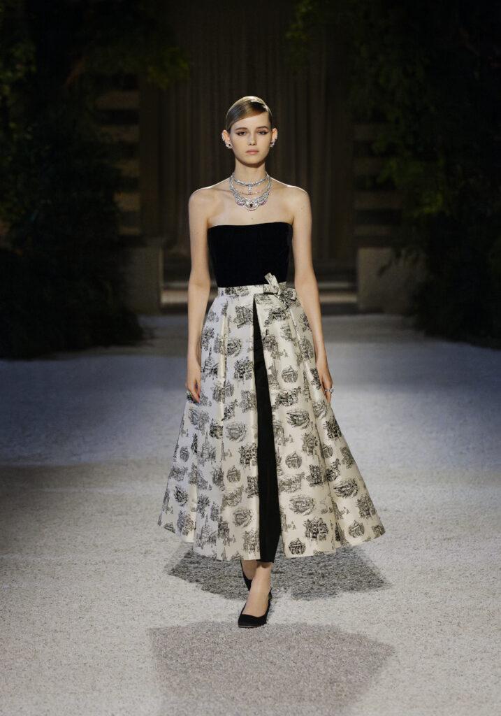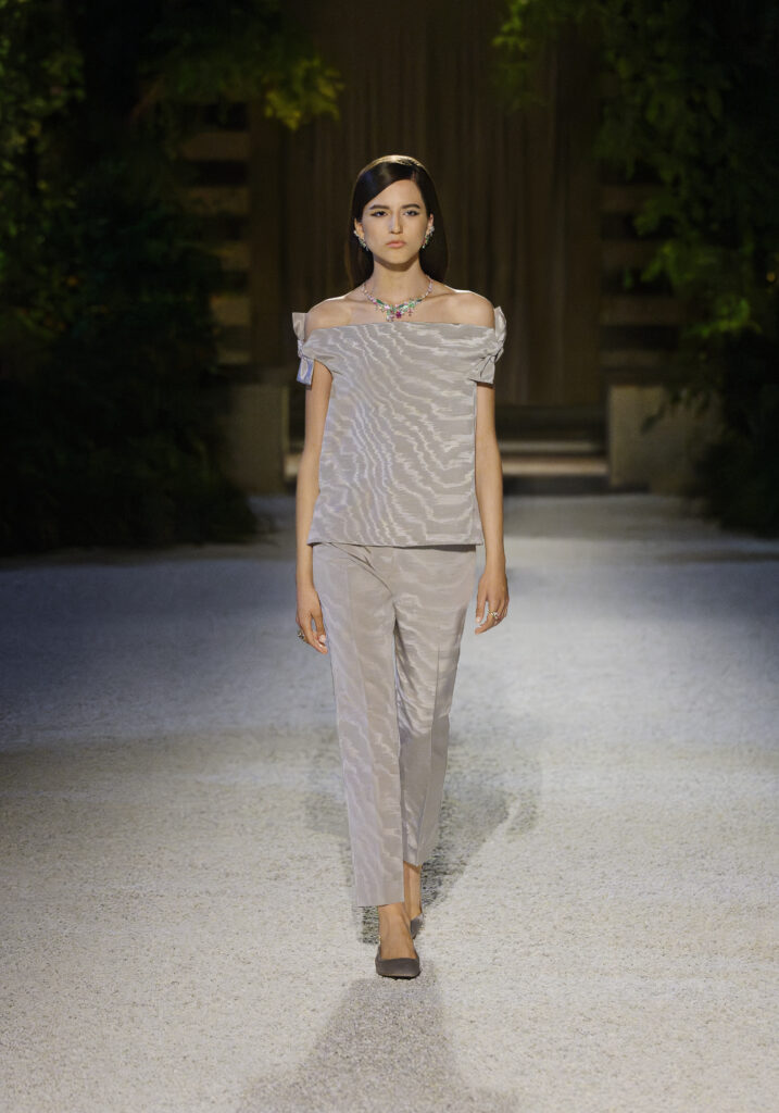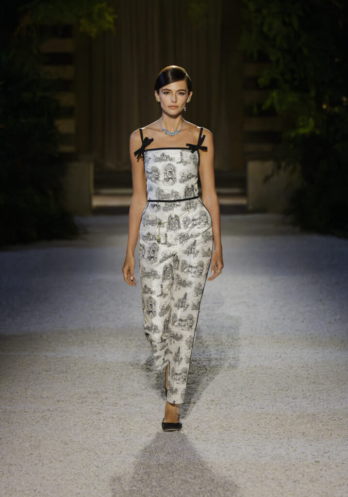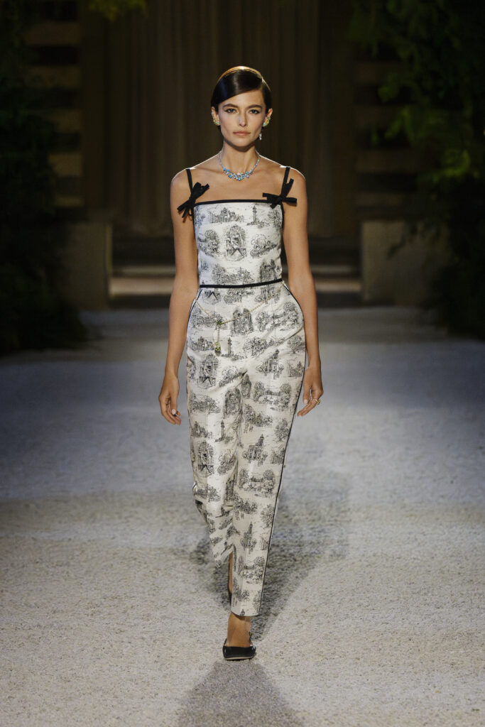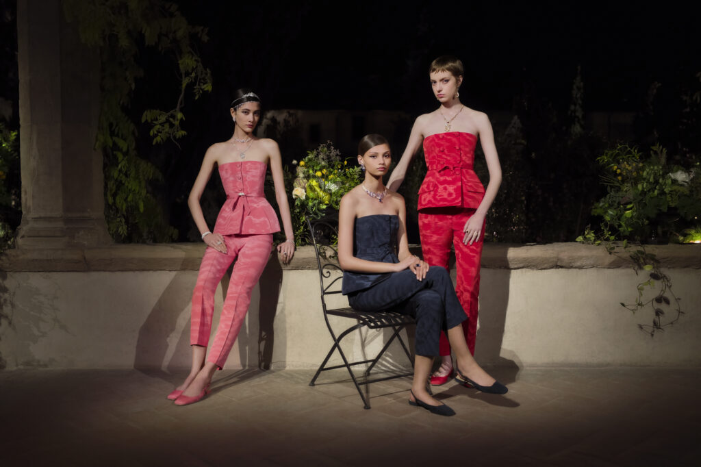 Les pièces de la collection Diorama sont un véritable florilège onirique, magnifiées par les silhouettes Dior de Maria Grazia Chiuri, odes couture à une pétillante Dolce Vita. Les créations incluent des pantalons Capri néo-sixties, des bustiers Bar irrésistibles, des somptueux jacquards tissés, des failles moirées, et des jupes aux nuances chatoyantes. Chaque pièce traduit ce voyage imaginaire de Paris à Florence, une symbiose virtuose des arts, du rêve et de l’excellence des savoir-faire Dior.