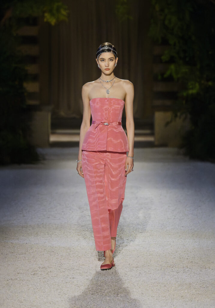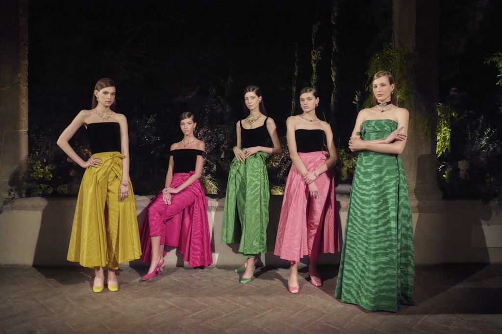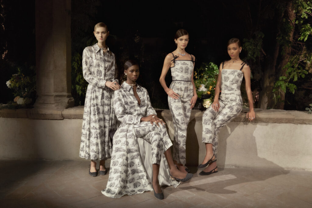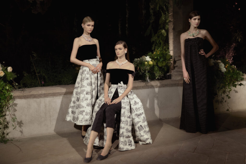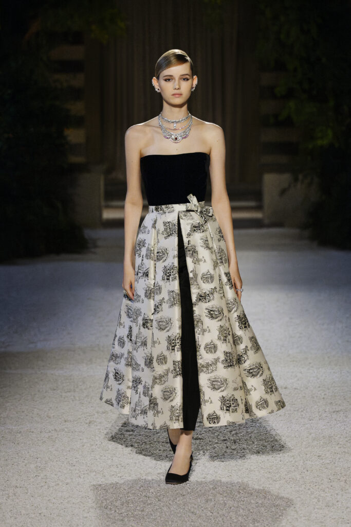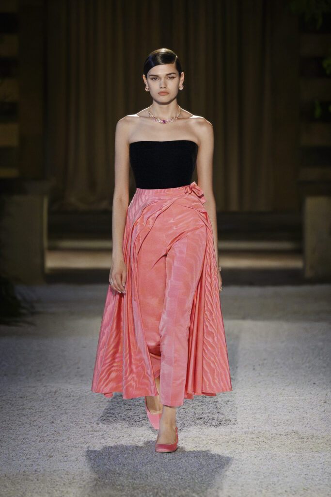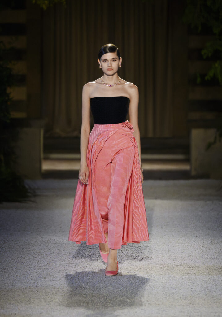 Les pièces de la collection Diorama sont un véritable florilège onirique, magnifiées par les silhouettes Dior de Maria Grazia Chiuri, odes couture à une pétillante Dolce Vita. Les créations incluent des pantalons Capri néo-sixties, des bustiers Bar irrésistibles, des somptueux jacquards tissés, des failles moirées, et des jupes aux nuances chatoyantes. Chaque pièce traduit ce voyage imaginaire de Paris à Florence, une symbiose virtuose des arts, du rêve et de l’excellence des savoir-faire Dior.