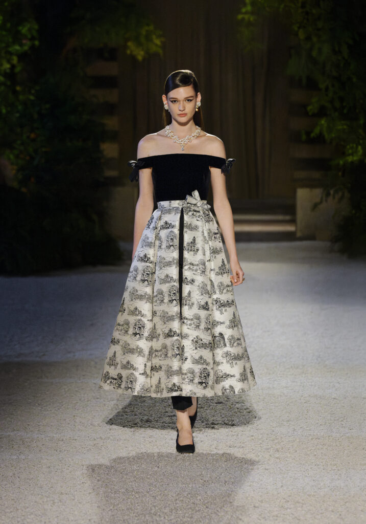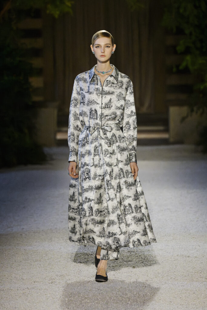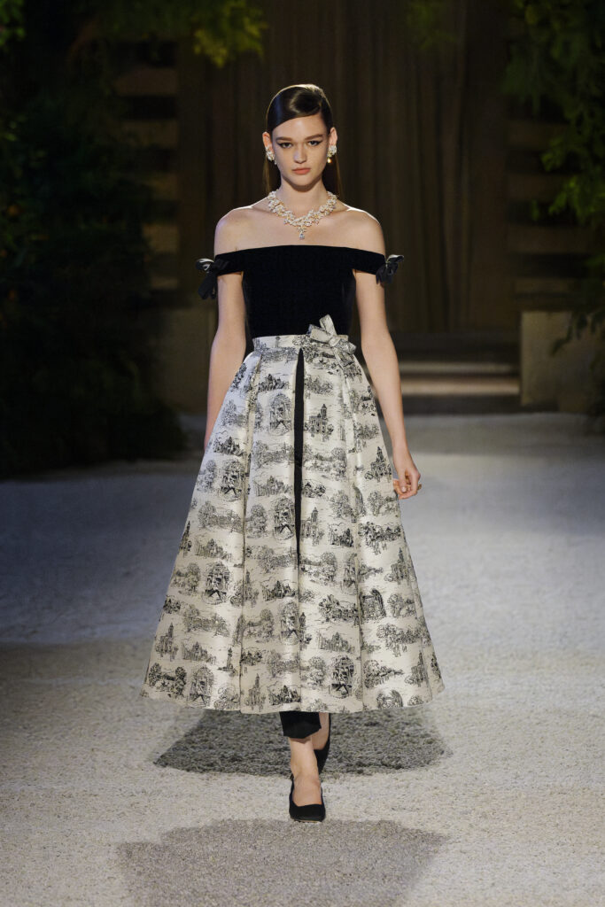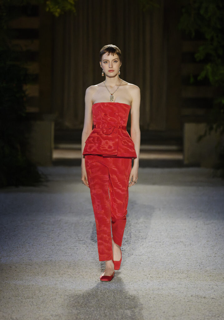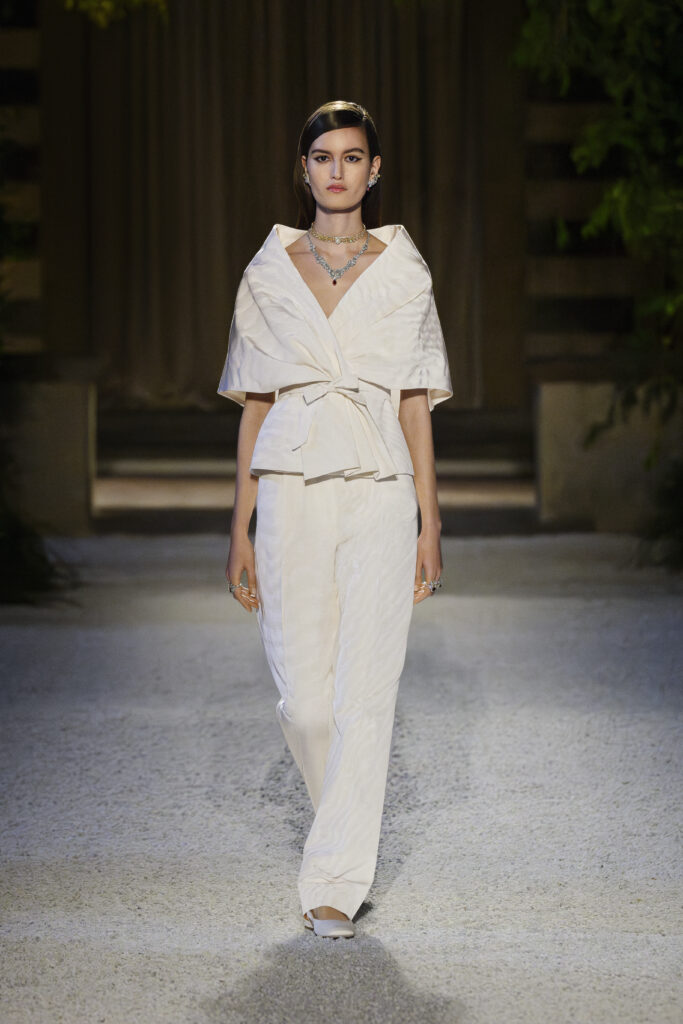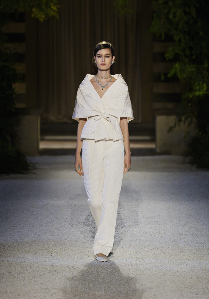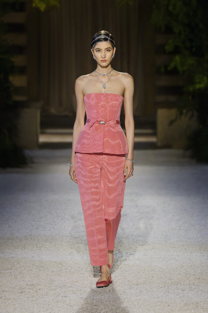 Les pièces de la collection Diorama sont un véritable florilège onirique, magnifiées par les silhouettes Dior de Maria Grazia Chiuri, odes couture à une pétillante Dolce Vita. Les créations incluent des pantalons Capri néo-sixties, des bustiers Bar irrésistibles, des somptueux jacquards tissés, des failles moirées, et des jupes aux nuances chatoyantes. Chaque pièce traduit ce voyage imaginaire de Paris à Florence, une symbiose virtuose des arts, du rêve et de l’excellence des savoir-faire Dior.