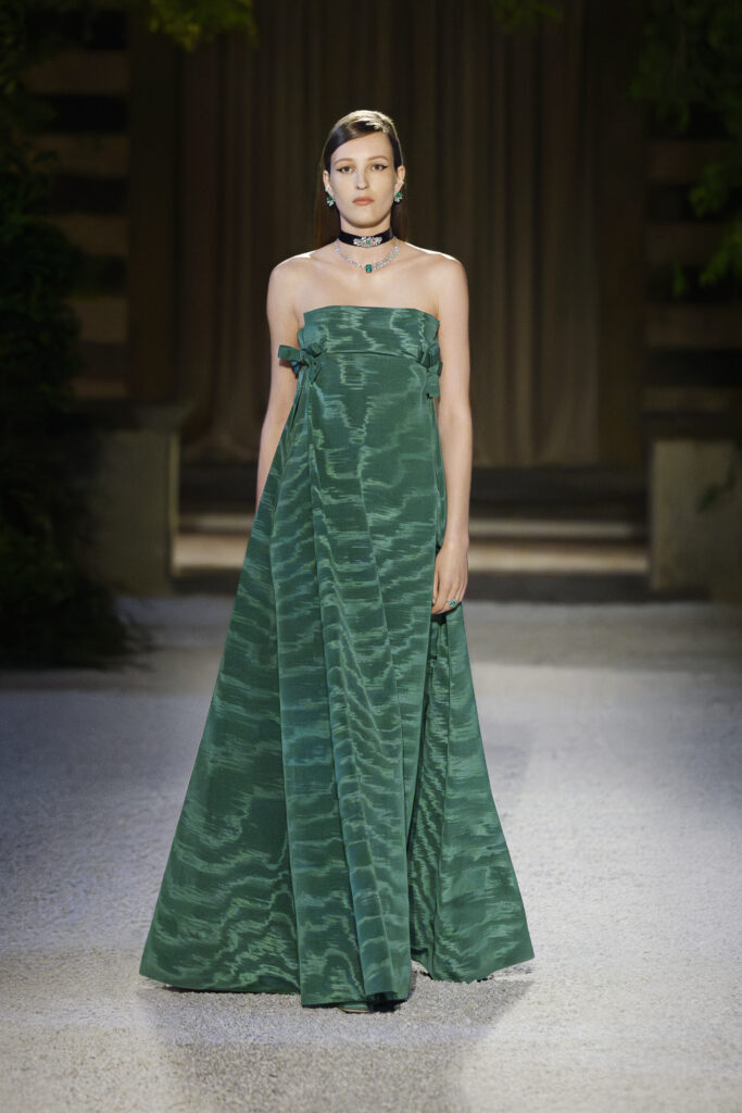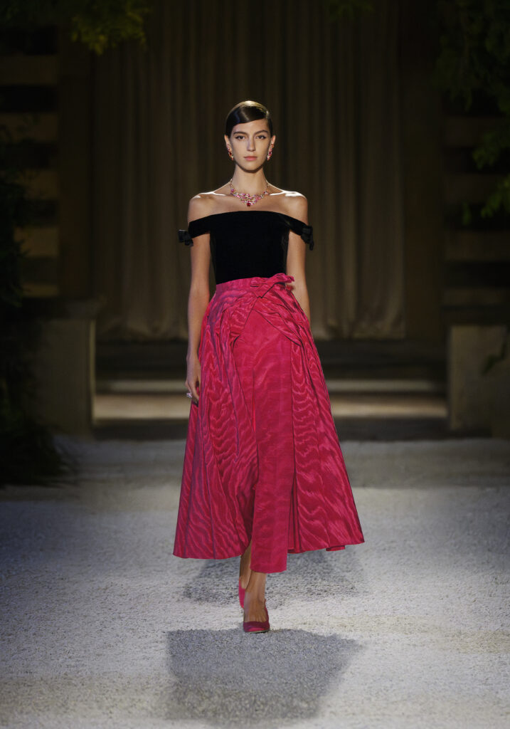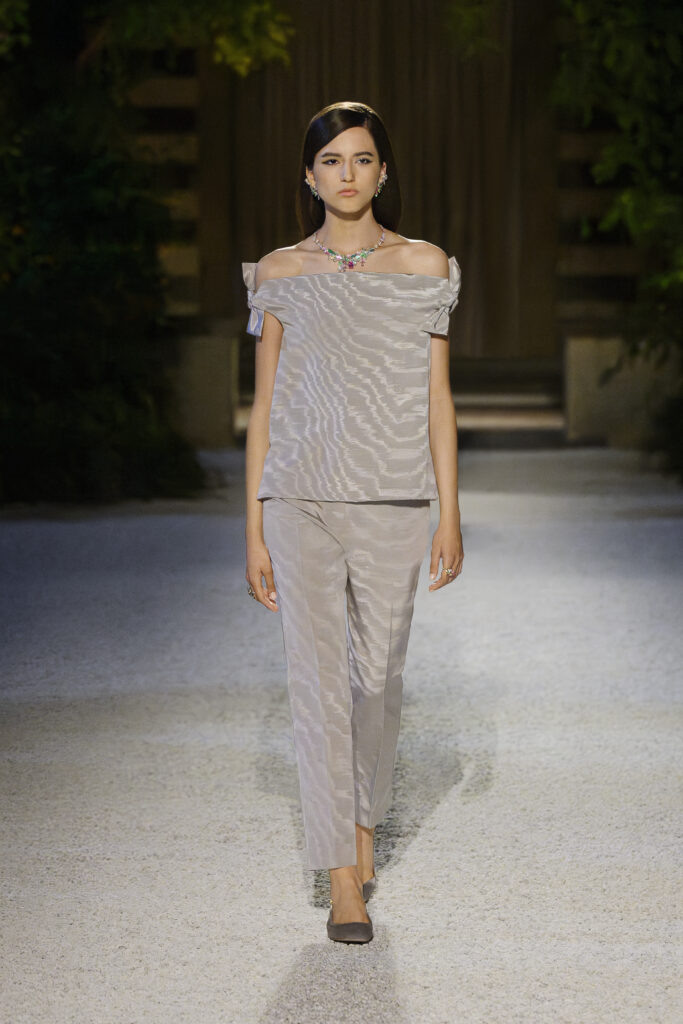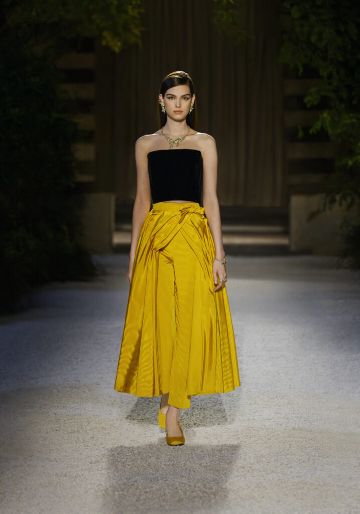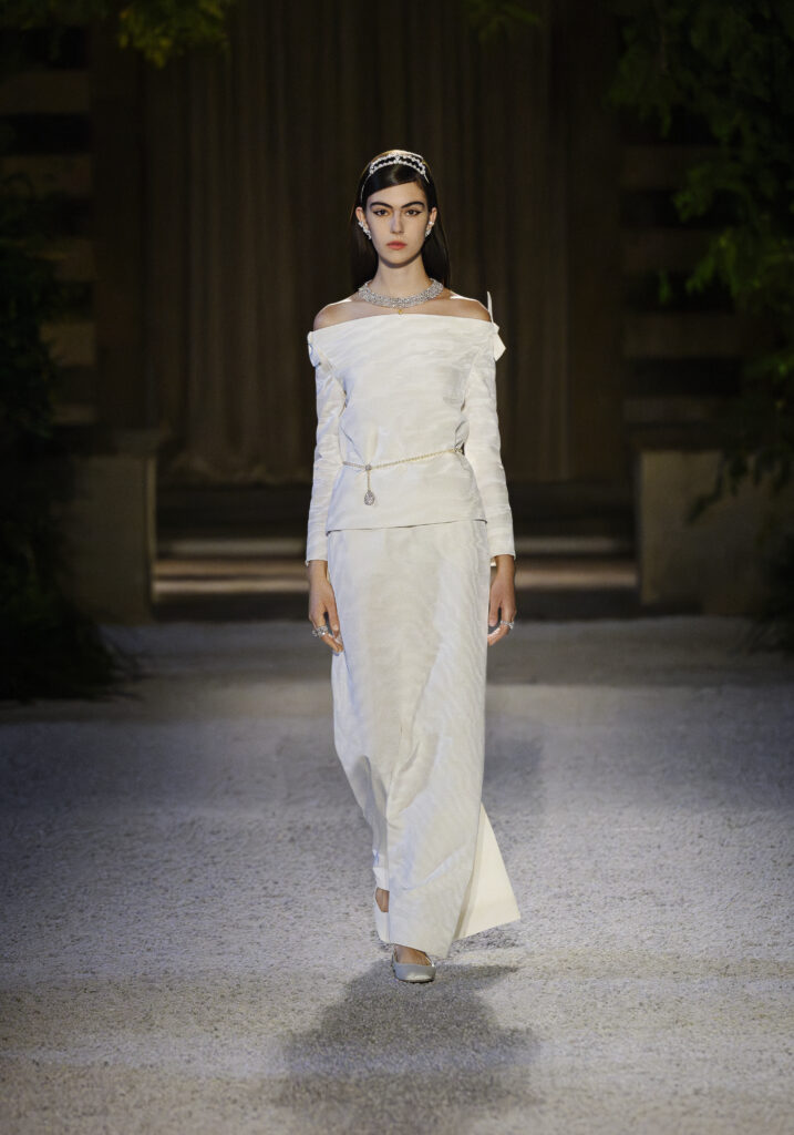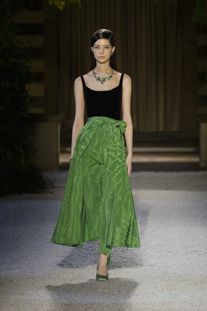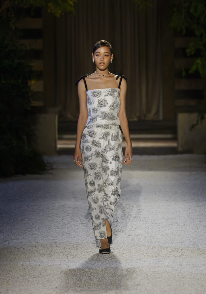 Les pièces de la collection Diorama sont un véritable florilège onirique, magnifiées par les silhouettes Dior de Maria Grazia Chiuri, odes couture à une pétillante Dolce Vita. Les créations incluent des pantalons Capri néo-sixties, des bustiers Bar irrésistibles, des somptueux jacquards tissés, des failles moirées, et des jupes aux nuances chatoyantes. Chaque pièce traduit ce voyage imaginaire de Paris à Florence, une symbiose virtuose des arts, du rêve et de l’excellence des savoir-faire Dior.