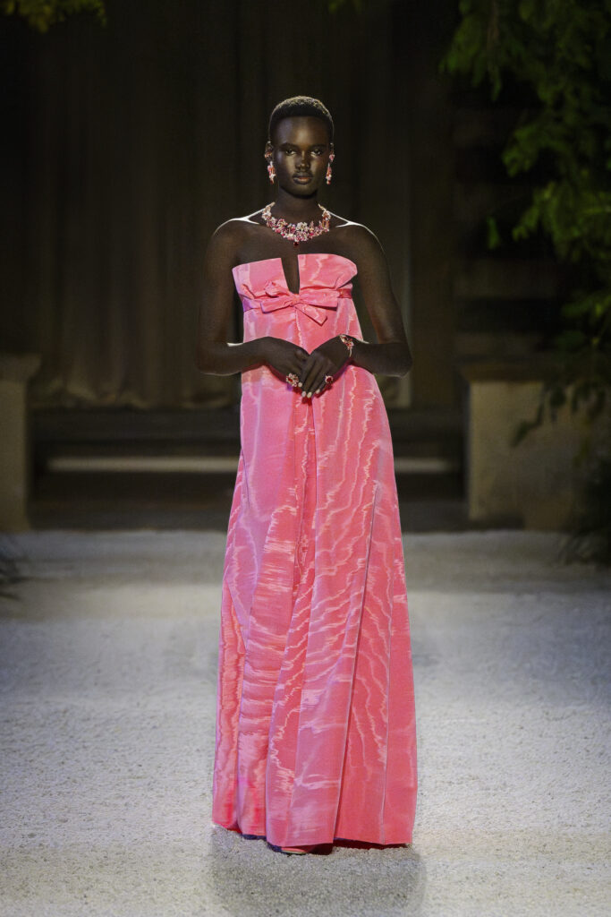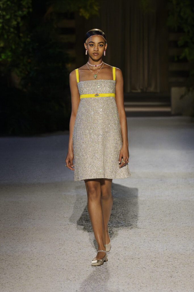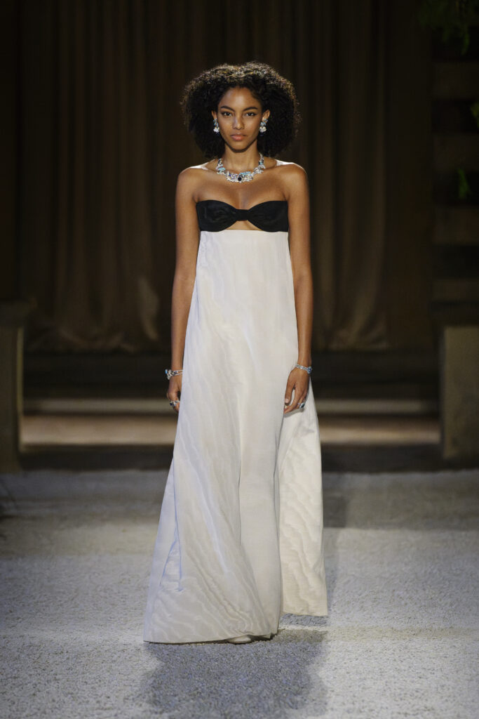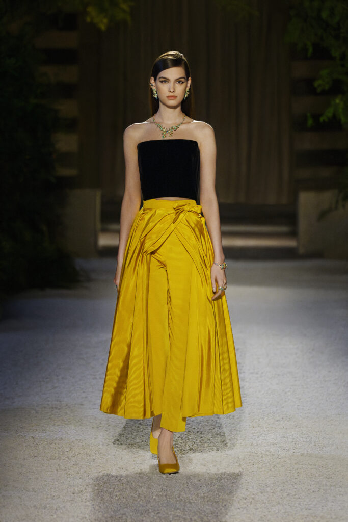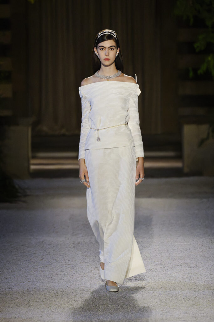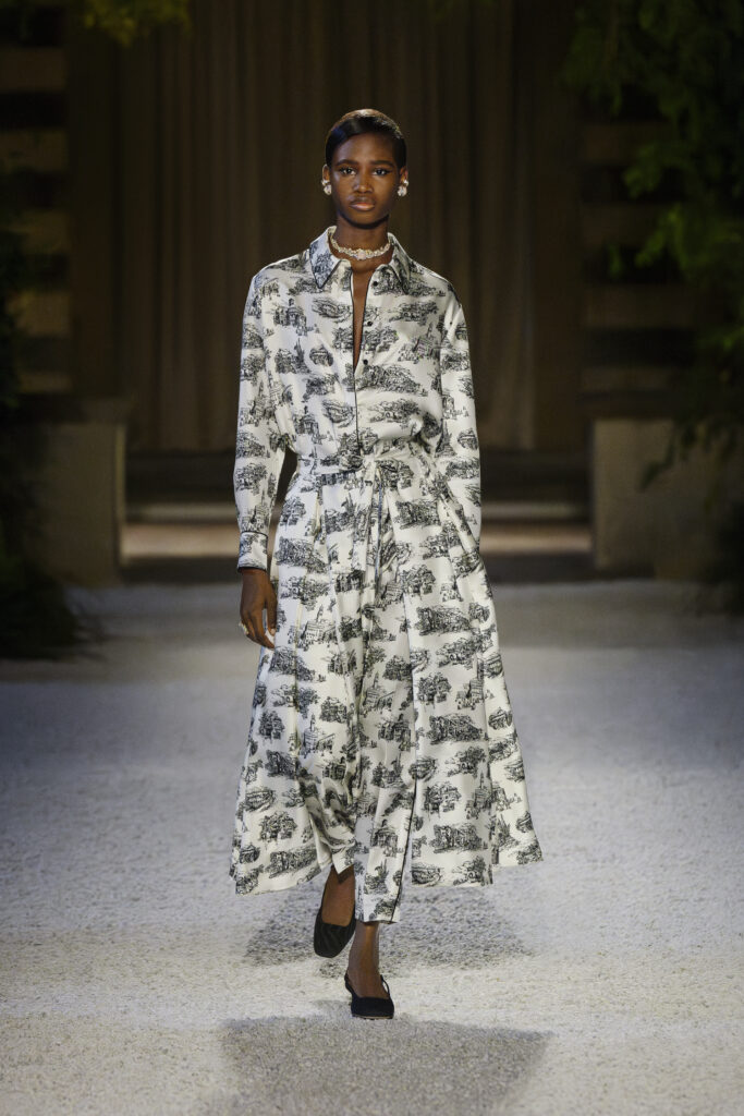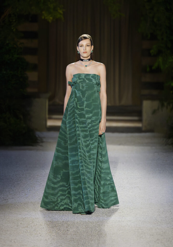 Les pièces de la collection Diorama sont un véritable florilège onirique, magnifiées par les silhouettes Dior de Maria Grazia Chiuri, odes couture à une pétillante Dolce Vita. Les créations incluent des pantalons Capri néo-sixties, des bustiers Bar irrésistibles, des somptueux jacquards tissés, des failles moirées, et des jupes aux nuances chatoyantes. Chaque pièce traduit ce voyage imaginaire de Paris à Florence, une symbiose virtuose des arts, du rêve et de l’excellence des savoir-faire Dior.