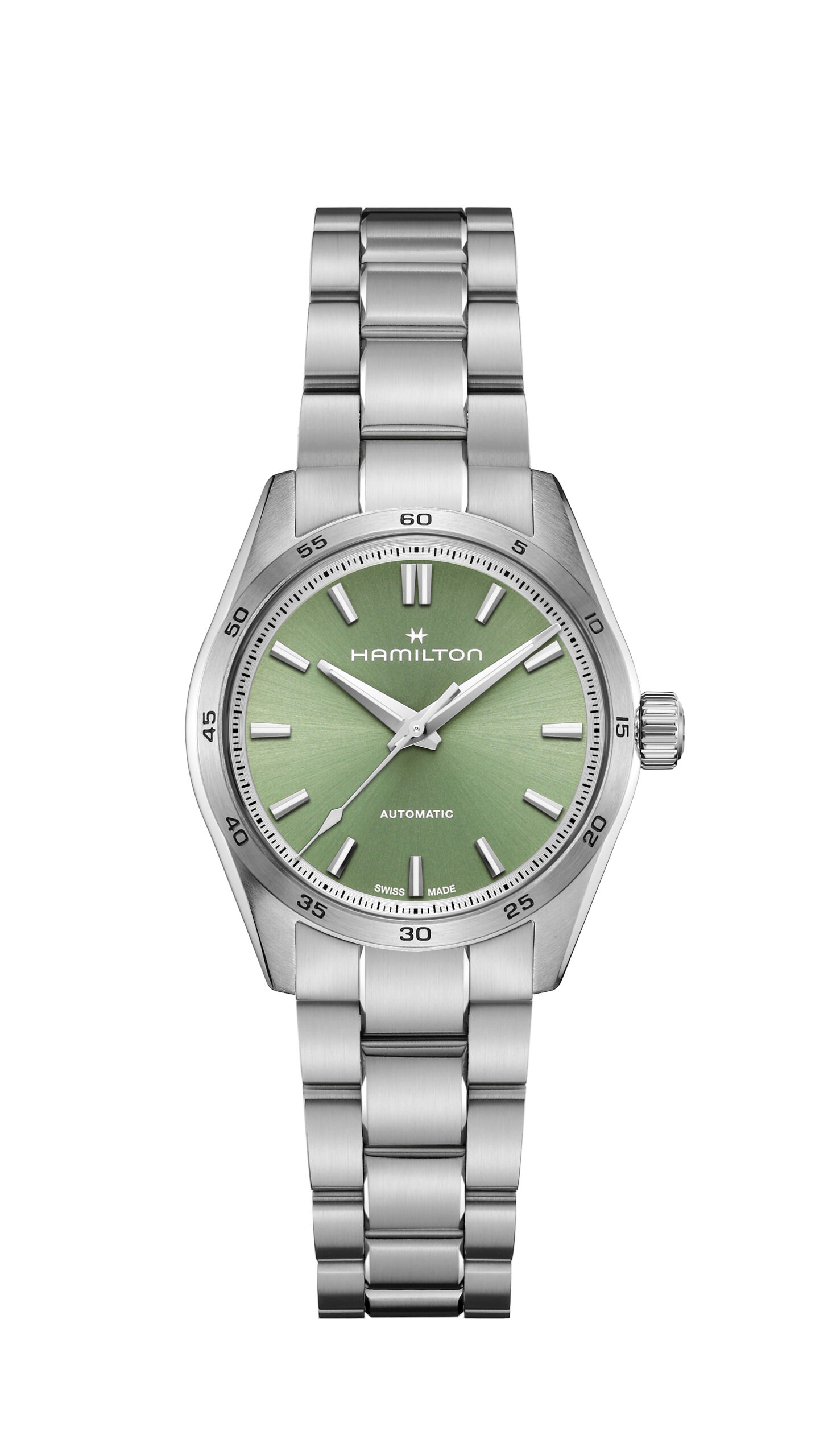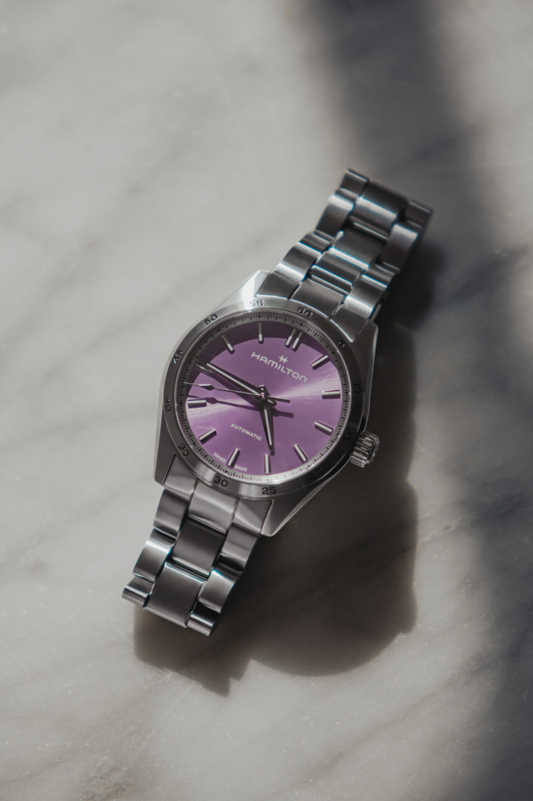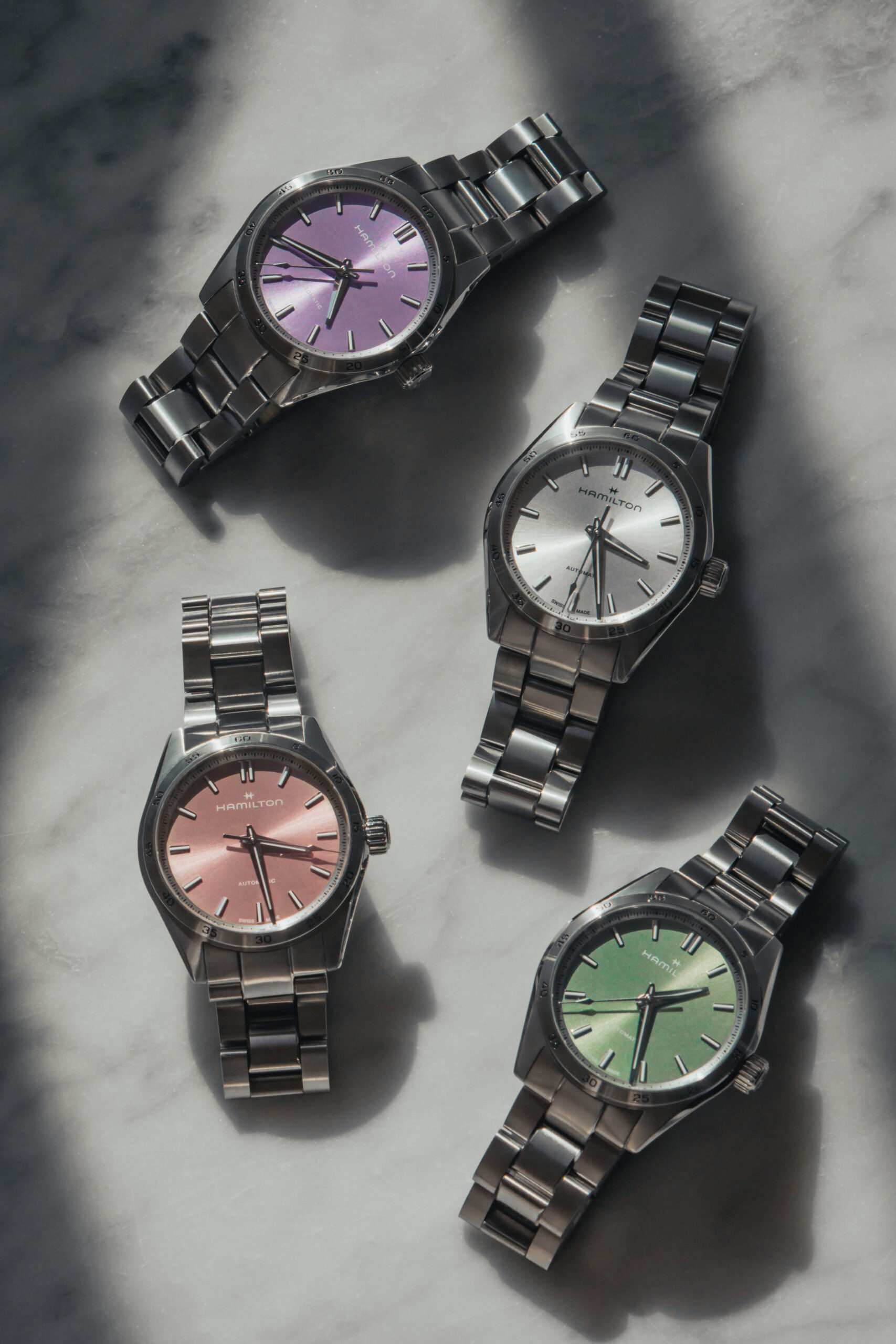 Des Coloris Captivants La Jazzmaster Performer de 34mm se distingue par quatre nouveaux coloris de cadran : argent pour un style versatile, rose poudré et violet pour un look audacieux, et un discret vert sauge. Ces ajouts renforcent l’identité visuelle de la collection, offrant des options pour chaque occasion et chaque personnalité.