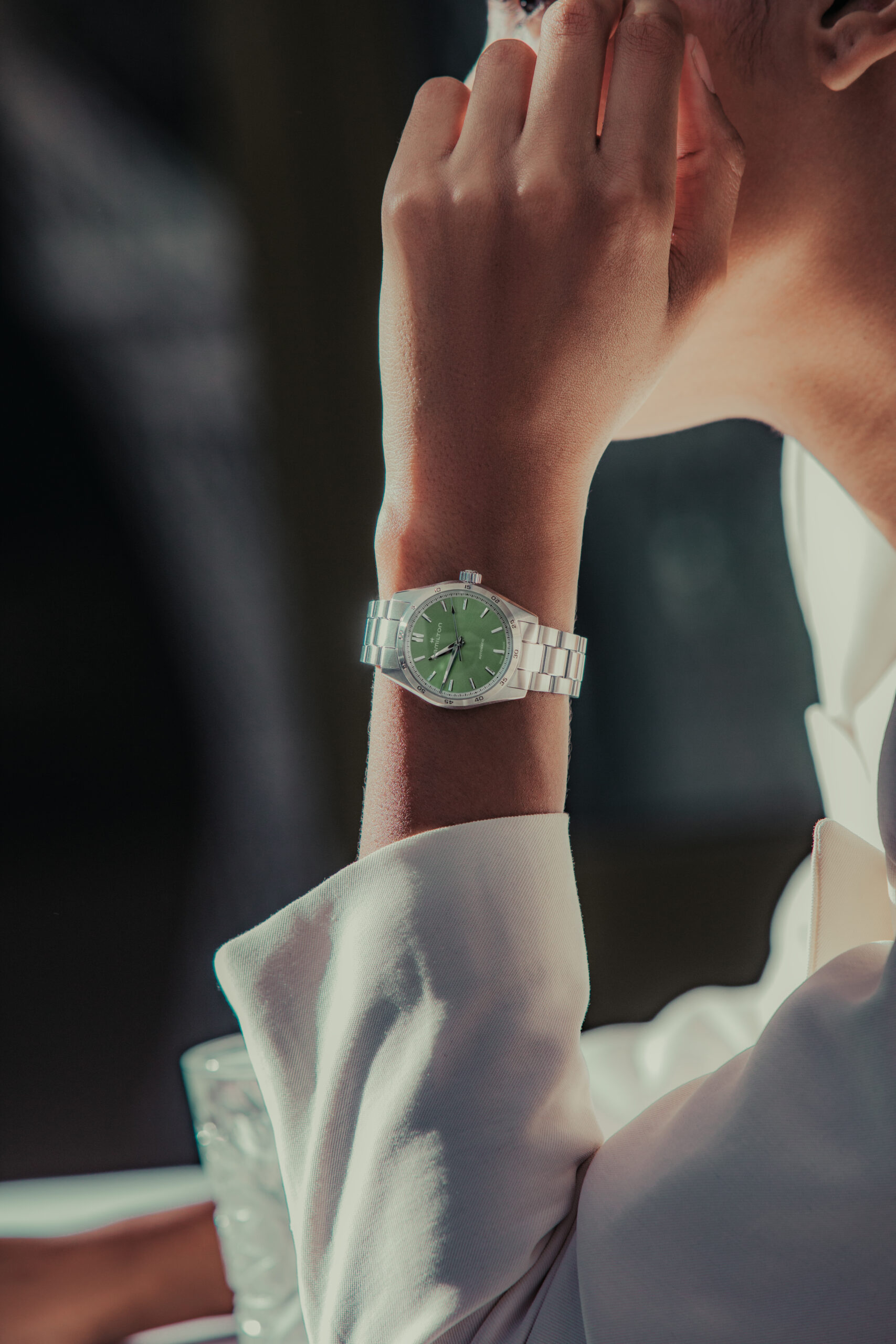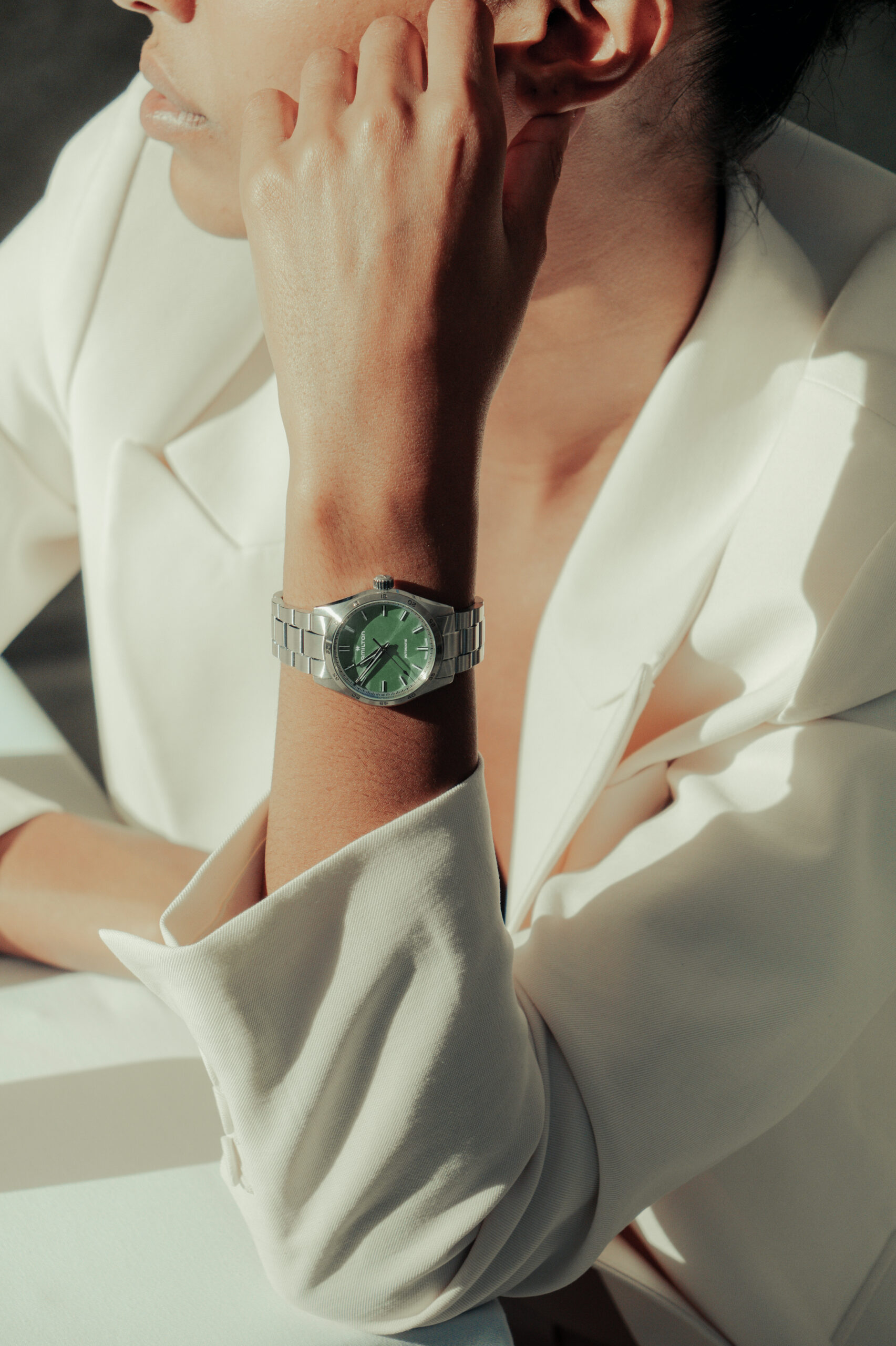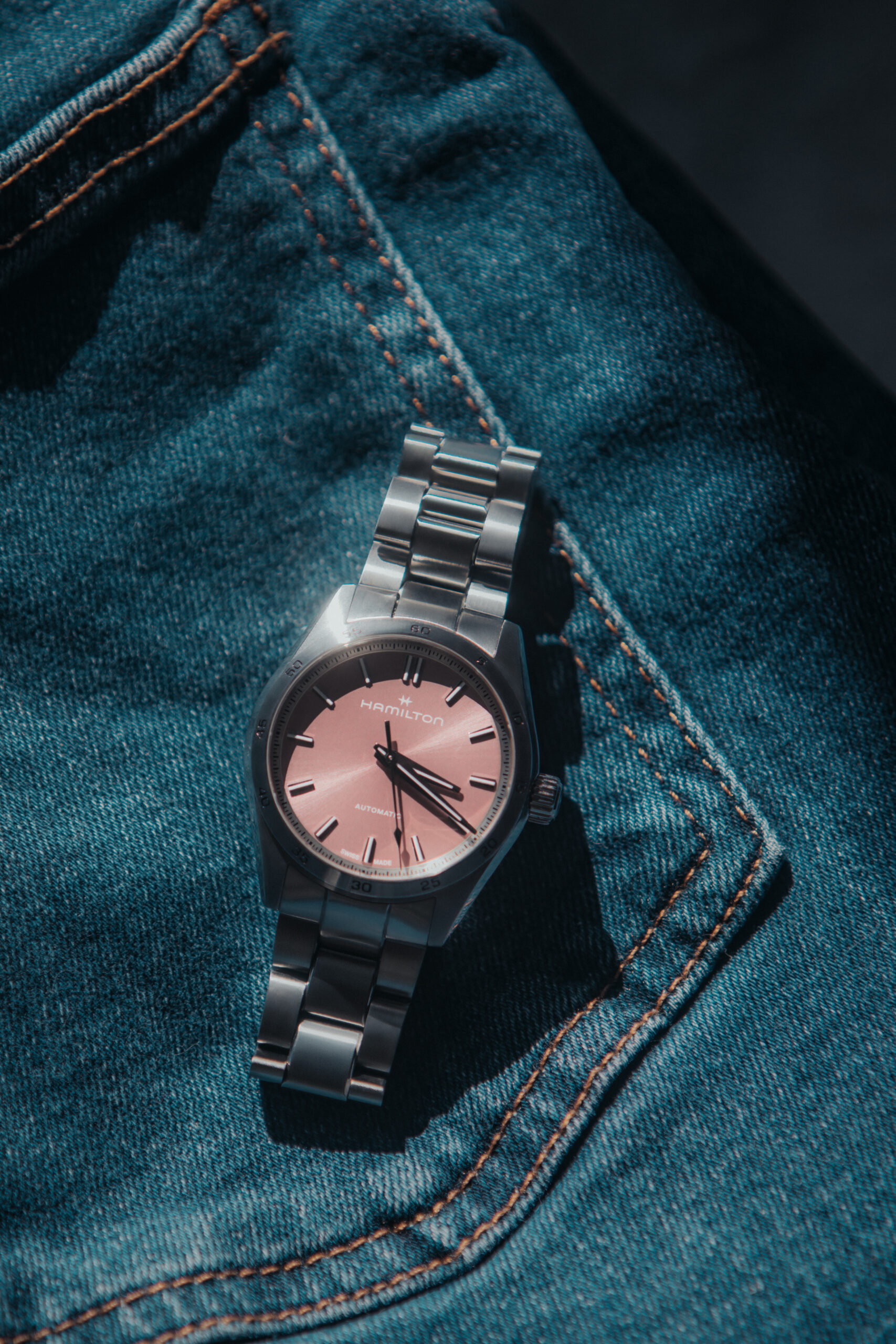 Des Coloris Captivants La Jazzmaster Performer de 34mm se distingue par quatre nouveaux coloris de cadran : argent pour un style versatile, rose poudré et violet pour un look audacieux, et un discret vert sauge. Ces ajouts renforcent l’identité visuelle de la collection, offrant des options pour chaque occasion et chaque personnalité.