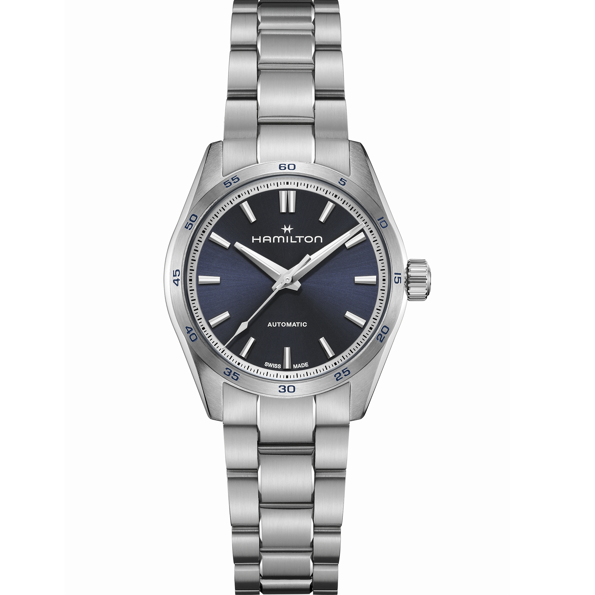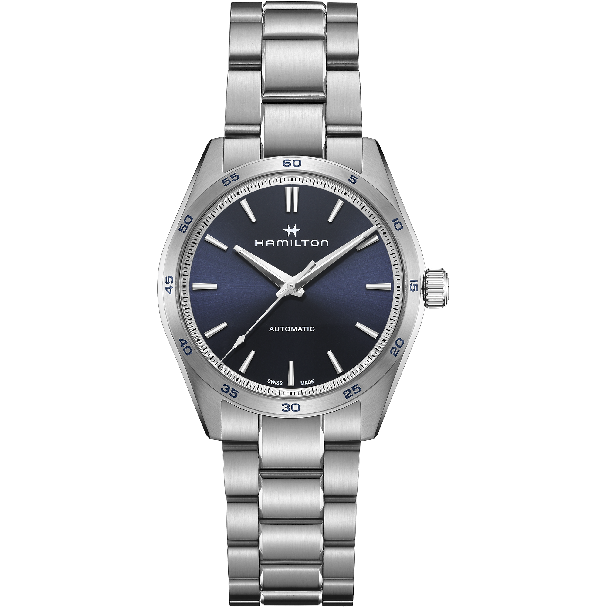 Performance et Charisme Urbain Le Jazzmaster Performer Automatic Chronograph 42mm, avec ses trois compteurs chronographe, est une ode à l’action et à la performance technique. Son cadran bleu glacier s’inspire du modèle trois aiguilles de 34mm, logé dans un boîtier raffiné en acier inoxydable. La collection renouvelle également son esthétique avec le modèle 38mm, présentant un cadran blanc élégant, contrasté par une lunette noire.
