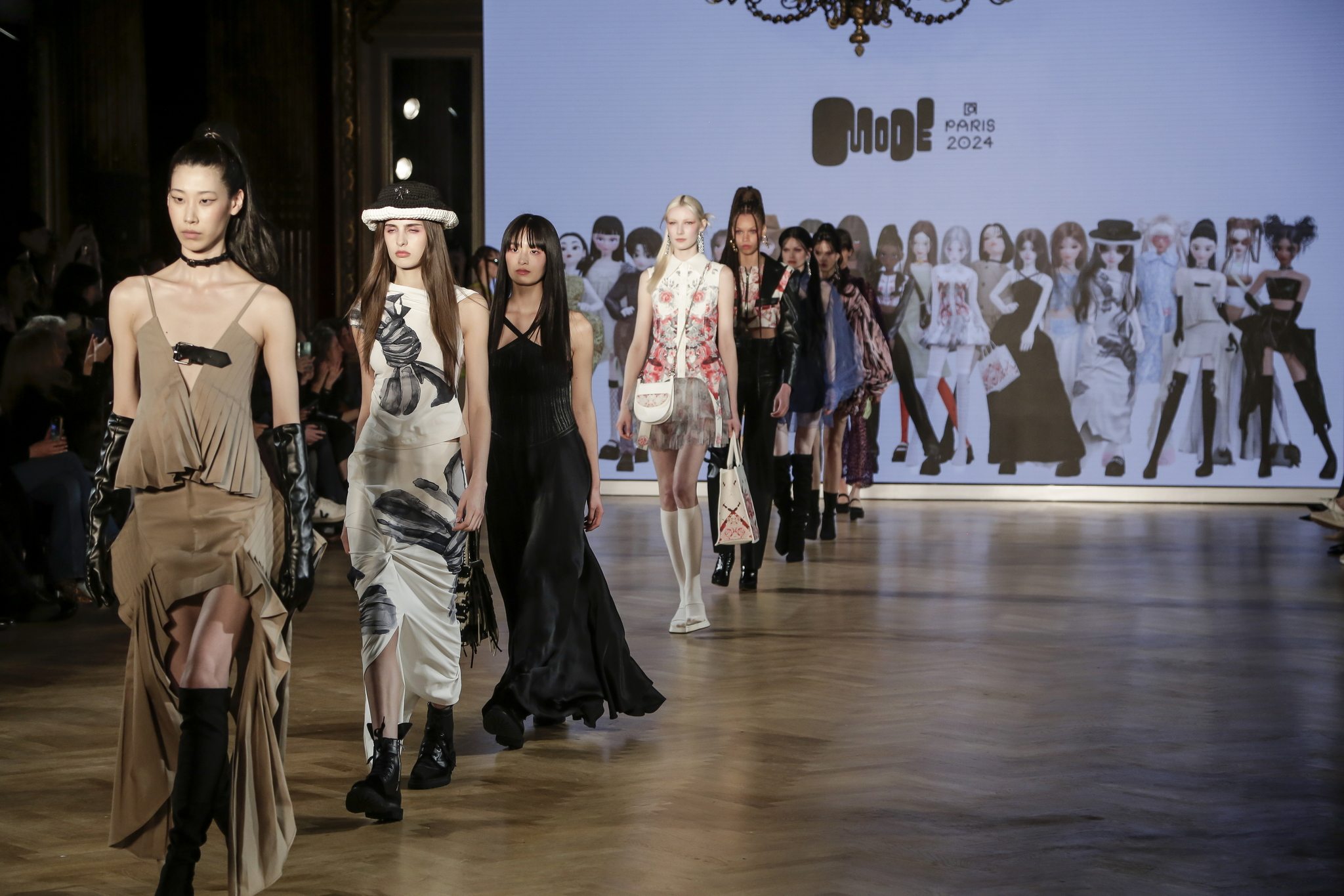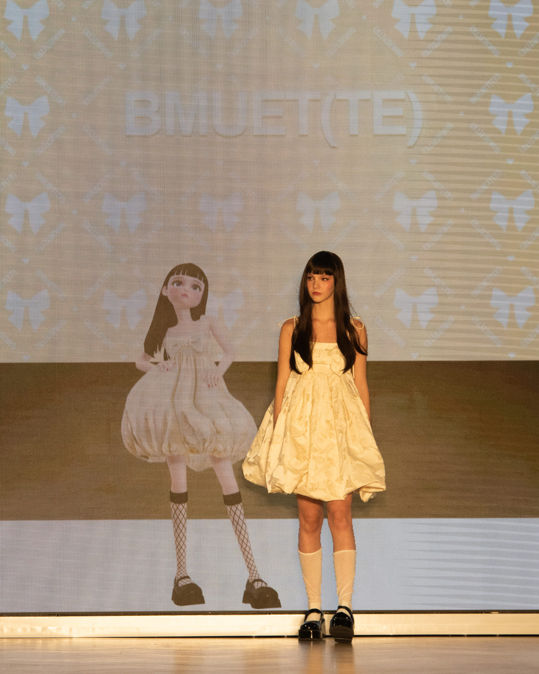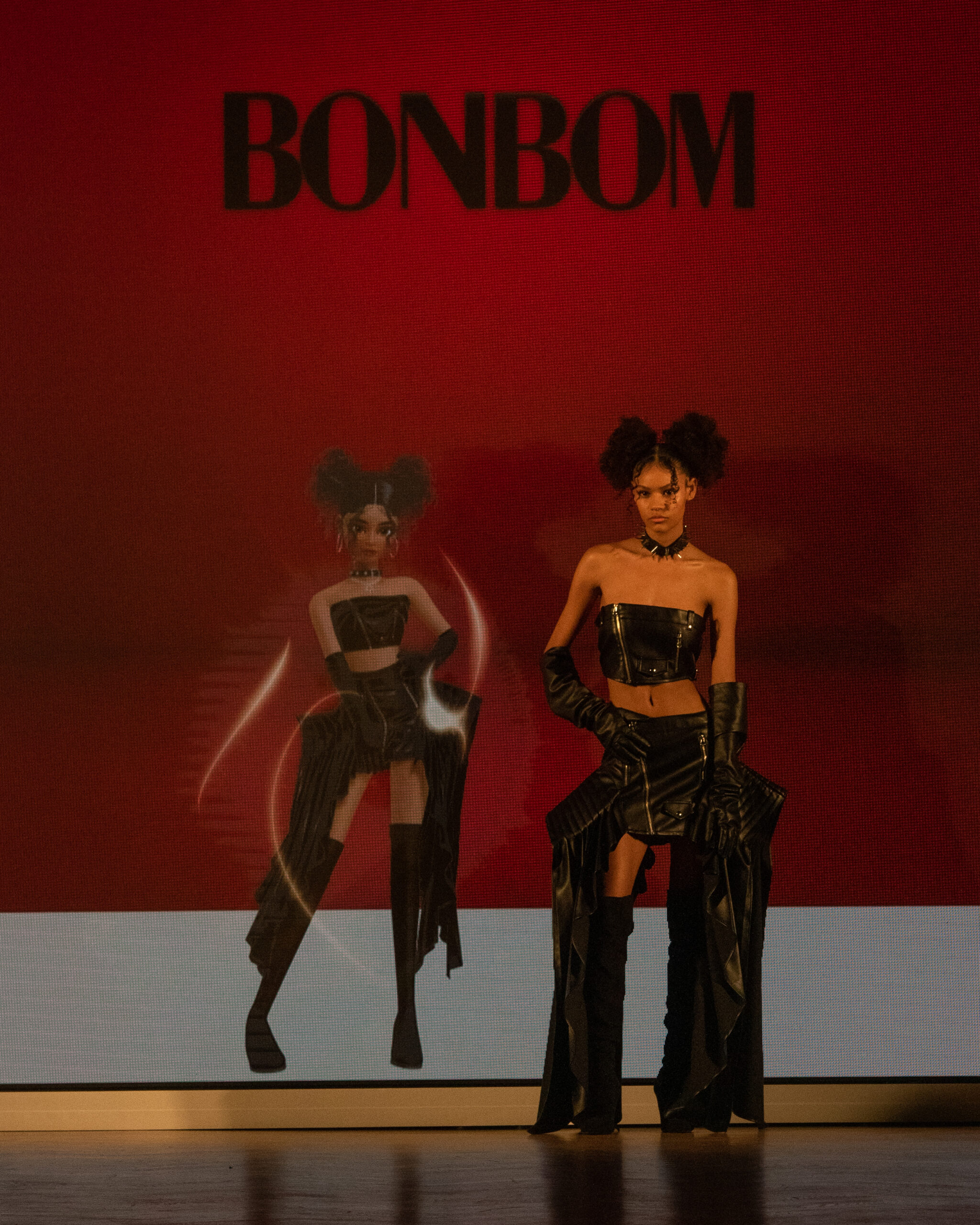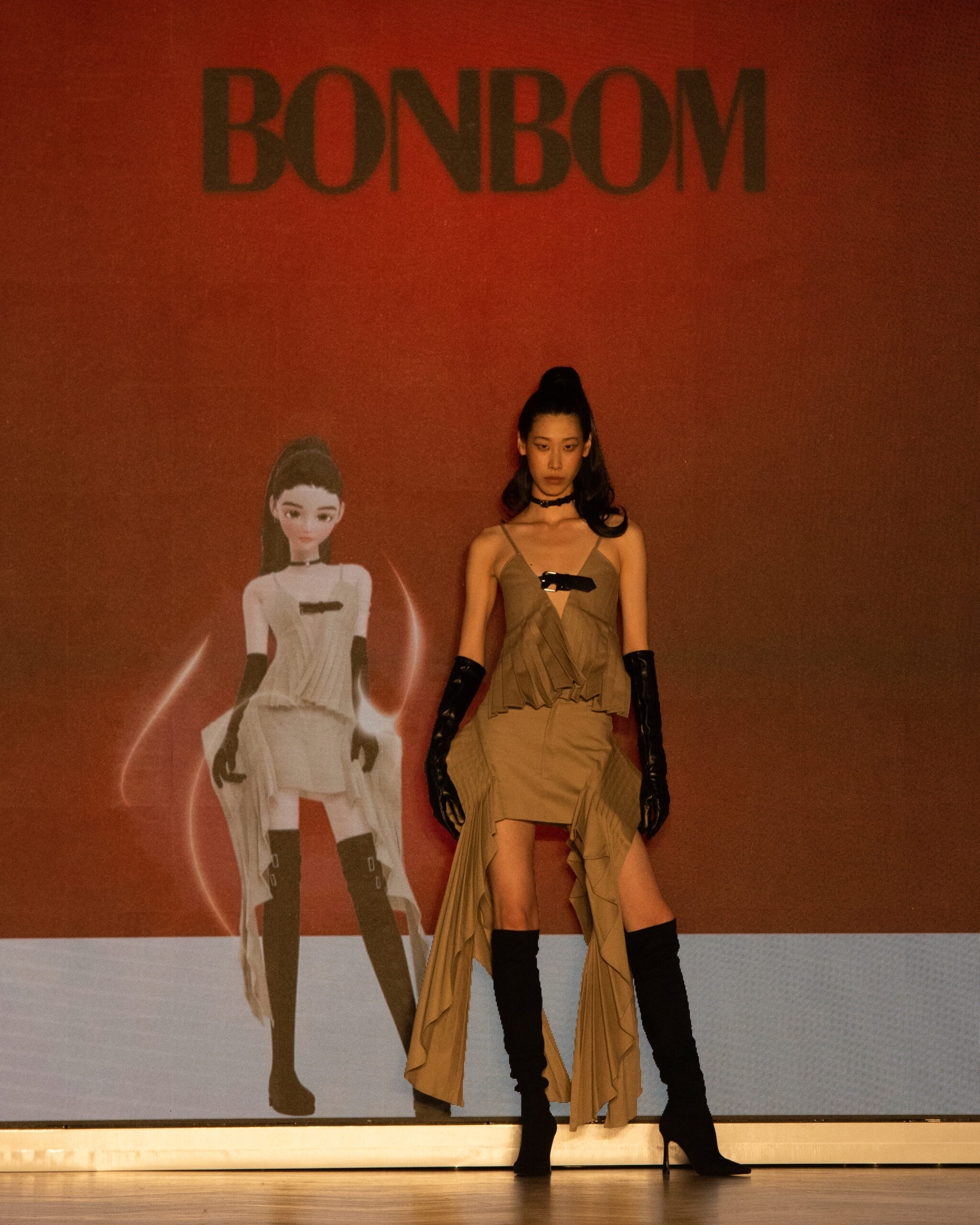 Les mannequins, parés des pièces les plus avant-gardistes des marques participantes – Bonbom, Julycolumn, Doucan, Hannah Shin, Maison Nica, Vegan Tiger, Mmam, Wnderkammer, Eyeye, et Bmuet(te) – ont été accompagnés sur scène par leurs avatars ZEPETO. Cette dualité a apporté une dimension supplémentaire au défilé, fusionnant avec élégance les mondes réel et virtuel.