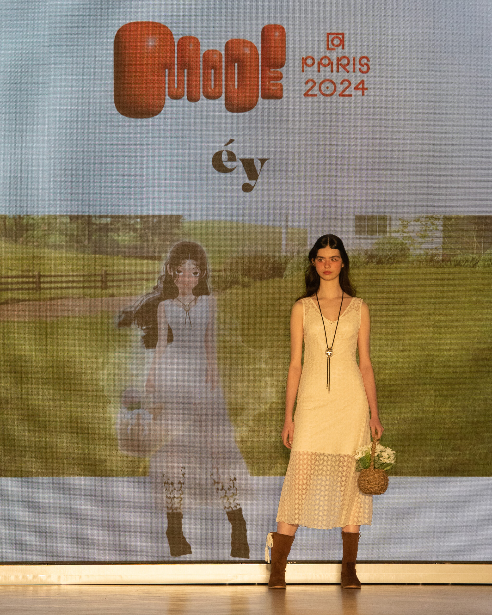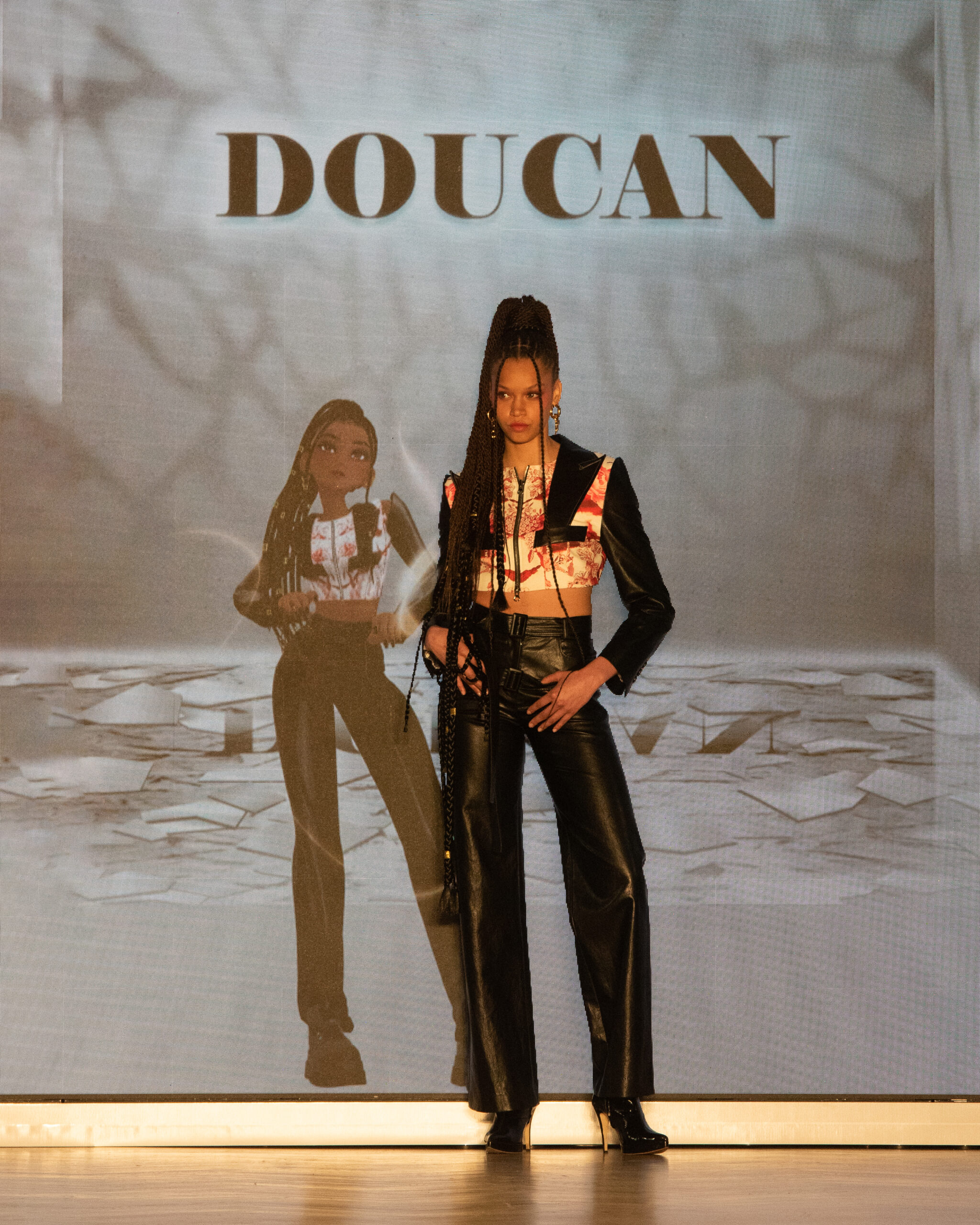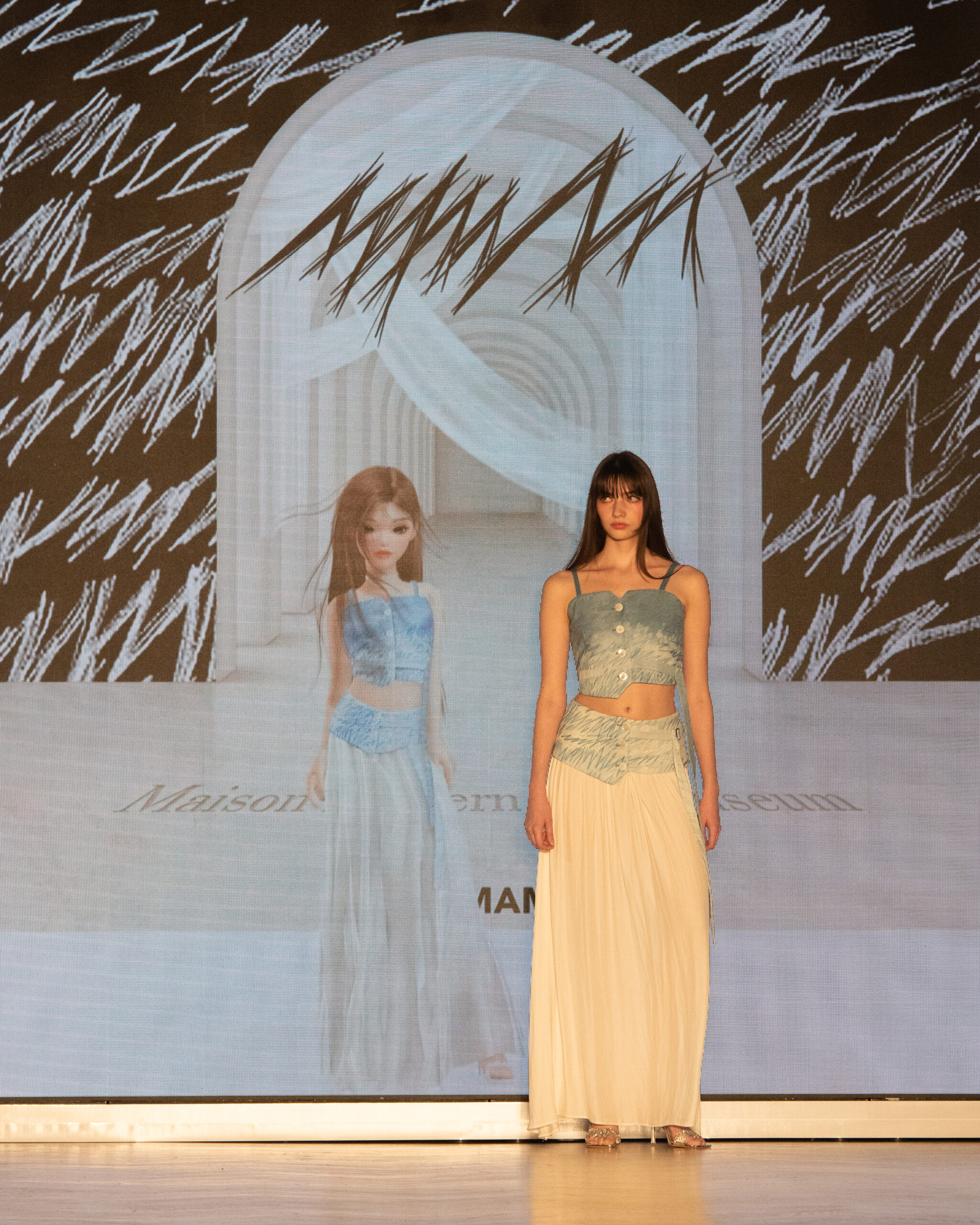 Les mannequins, parés des pièces les plus avant-gardistes des marques participantes – Bonbom, Julycolumn, Doucan, Hannah Shin, Maison Nica, Vegan Tiger, Mmam, Wnderkammer, Eyeye, et Bmuet(te) – ont été accompagnés sur scène par leurs avatars ZEPETO. Cette dualité a apporté une dimension supplémentaire au défilé, fusionnant avec élégance les mondes réel et virtuel.