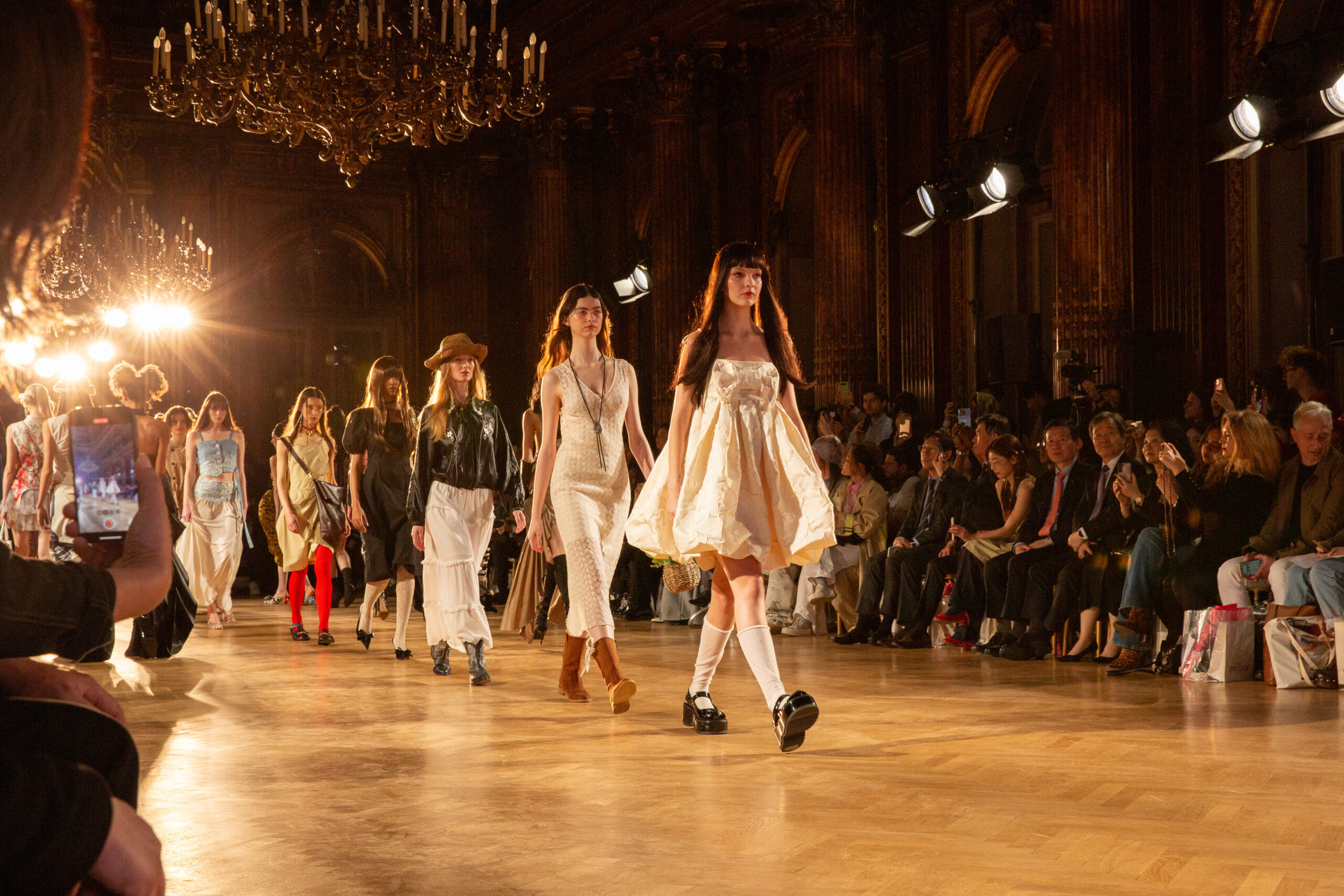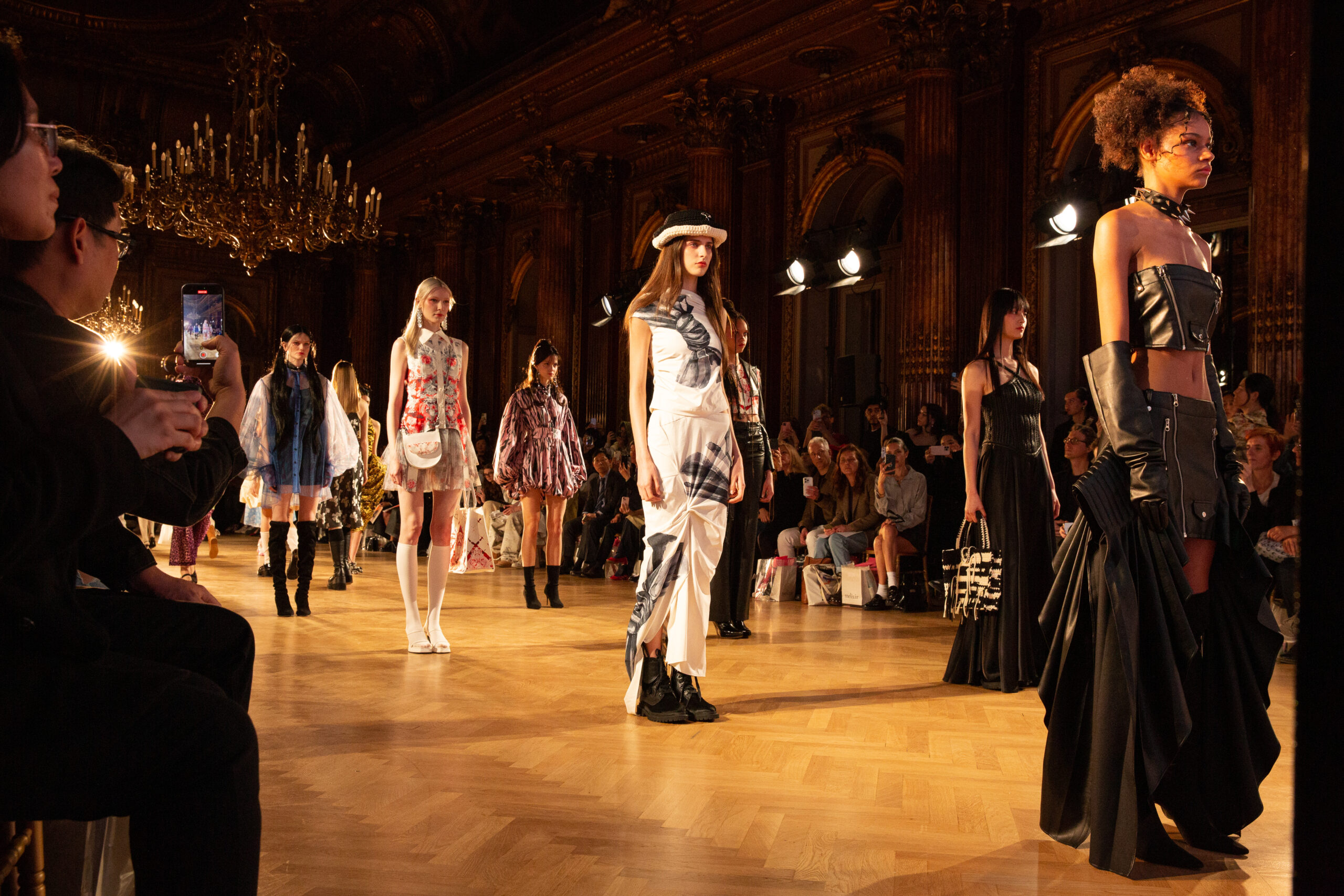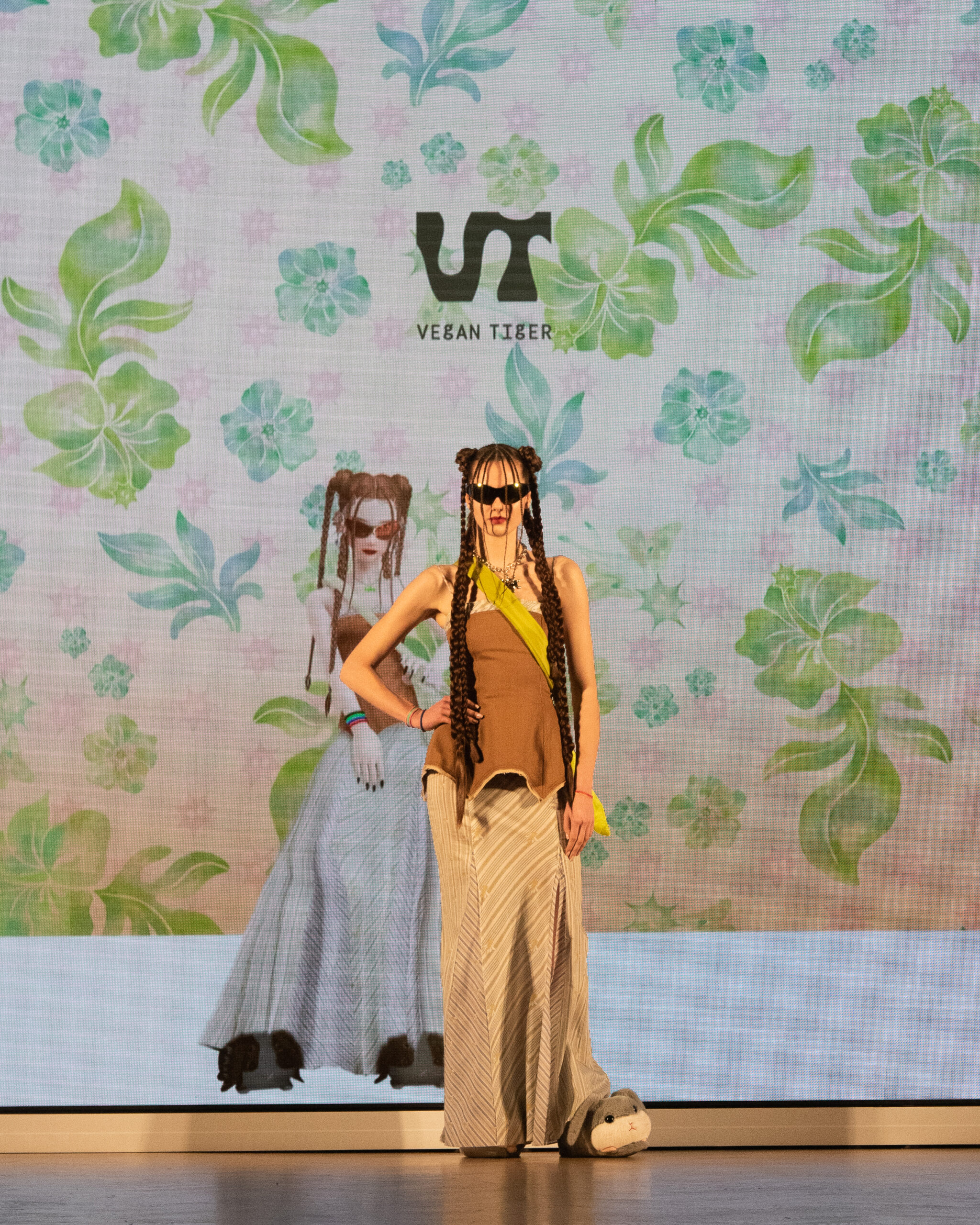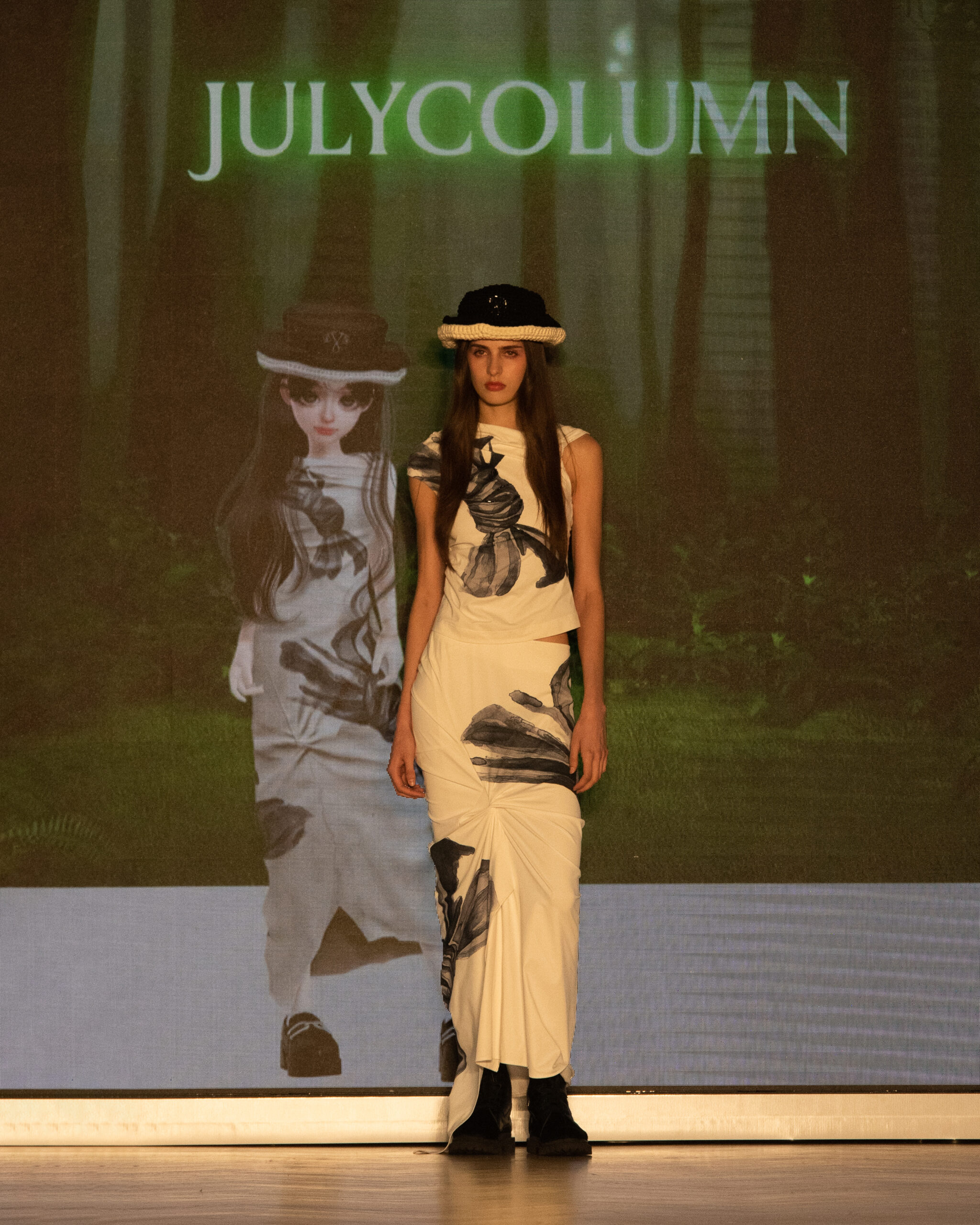 Les mannequins, parés des pièces les plus avant-gardistes des marques participantes – Bonbom, Julycolumn, Doucan, Hannah Shin, Maison Nica, Vegan Tiger, Mmam, Wnderkammer, Eyeye, et Bmuet(te) – ont été accompagnés sur scène par leurs avatars ZEPETO. Cette dualité a apporté une dimension supplémentaire au défilé, fusionnant avec élégance les mondes réel et virtuel.