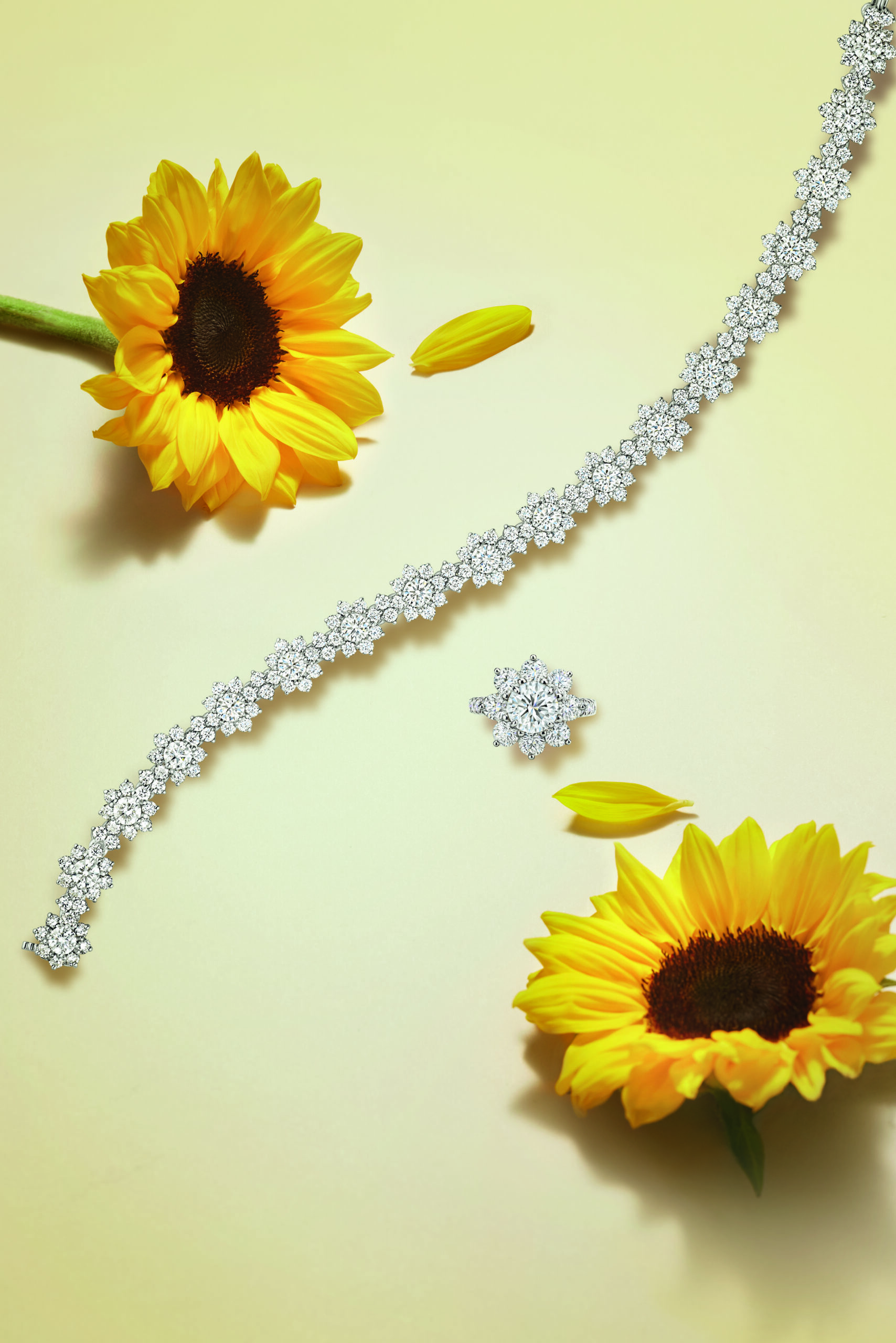 Cette année, la collection s’enrichit de parures de Haute Joaillerie en édition limitée. Les nouvelles pièces présentent des diamants jaunes centraux éclatants, rappelant la teinte du soleil, entourés de pétales iconiques en diamant. Cette évolution apporte une touche de fraîcheur tout en restant fidèle à l’esthétique intemporelle de Harry Winston.