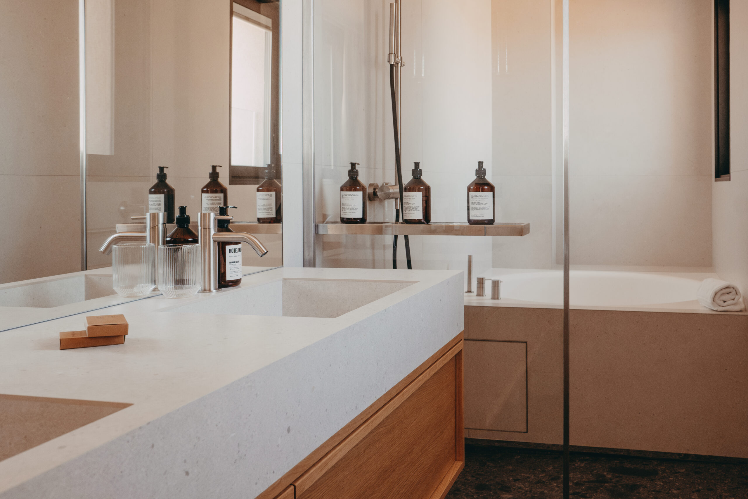 L’Hôtel Moderne propose maintenant quinze chambres, dont une suite, toutes décorées dans un style épuré et minimaliste, reflétant un esthétisme japonisant qui privilégie les matériaux bruts et organiques. Les chambres sont conçues pour maximiser l’espace et la lumière, offrant une expérience à la fois luxueuse et confortable pour les visiteurs.