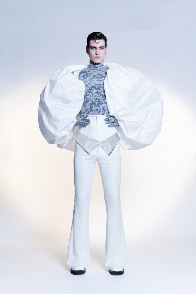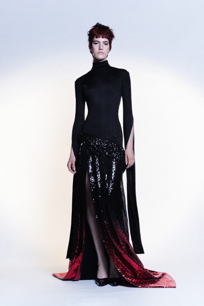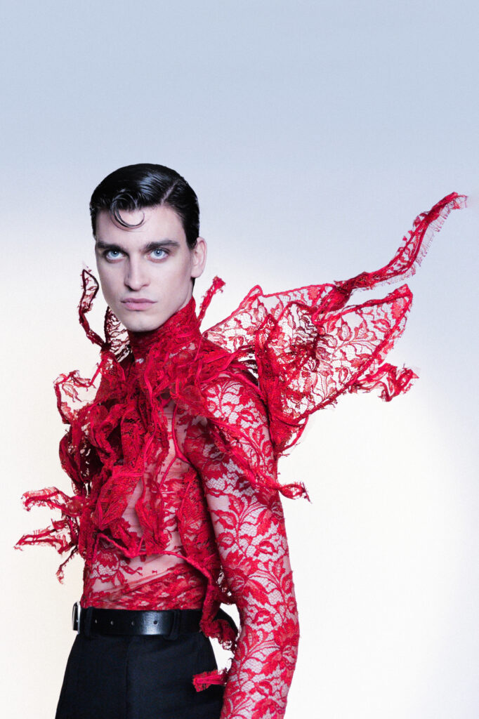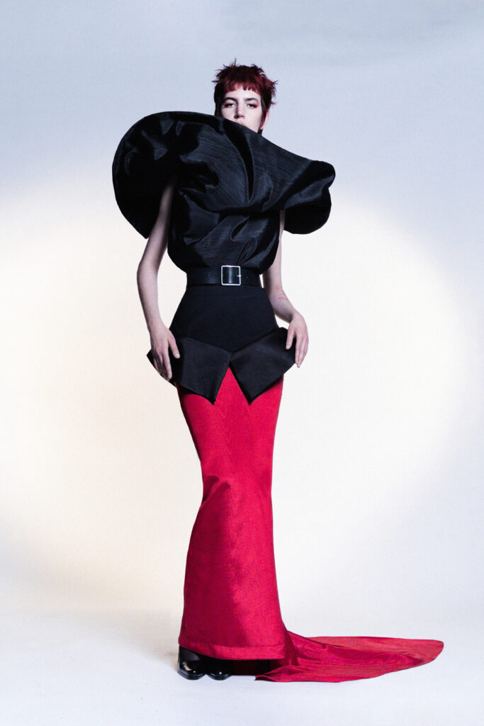 La collection El Amor Brujo d’Arturo Obegero est une ode vibrante à l’art et à la culture espagnole, inspirée par le ballet révolutionnaire de 1924 du compositeur Manuel de Falla. Cette collection est un hommage aux héros créatifs d’Obegero, notamment Cristóbal Balenciaga, Yves Saint Laurent, Carlos Saura, et Antonio Gades. Avec cette dixième collection, entièrement réalisée sur iPad, Obegero continue de développer sa vision minimaliste et dramatique.
