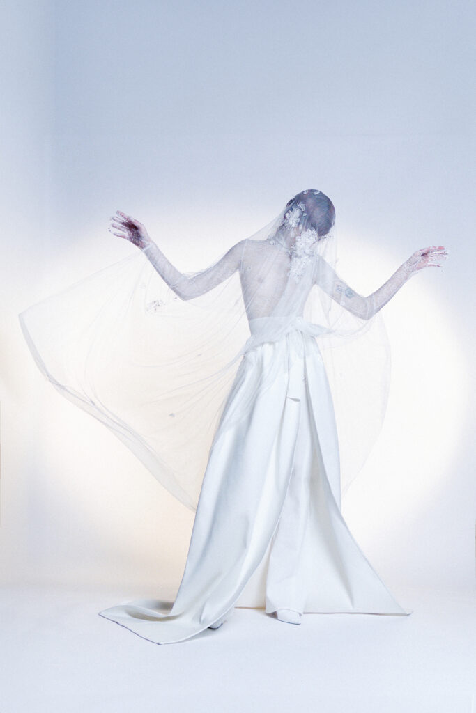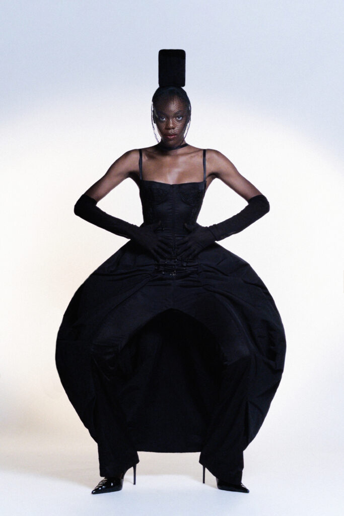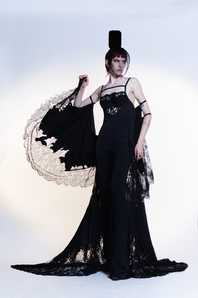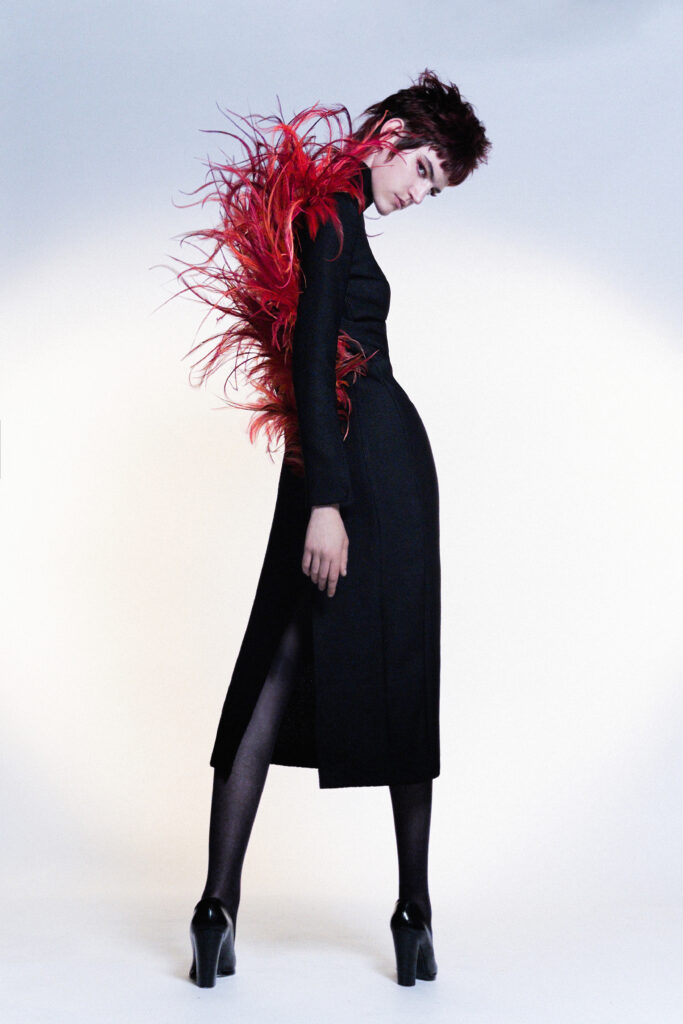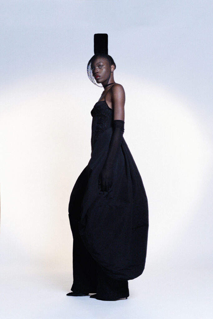 La collection El Amor Brujo d’Arturo Obegero est une ode vibrante à l’art et à la culture espagnole, inspirée par le ballet révolutionnaire de 1924 du compositeur Manuel de Falla. Cette collection est un hommage aux héros créatifs d’Obegero, notamment Cristóbal Balenciaga, Yves Saint Laurent, Carlos Saura, et Antonio Gades. Avec cette dixième collection, entièrement réalisée sur iPad, Obegero continue de développer sa vision minimaliste et dramatique.